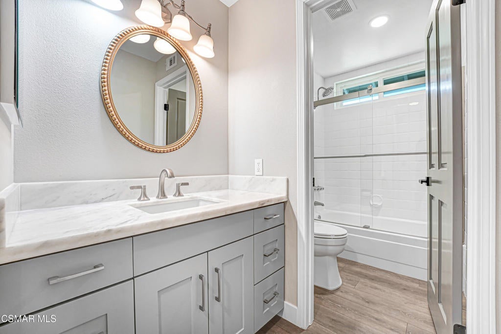 Welcome to this beautifully reimagined 4-bedroom, 3.5 bath home in the heart of Agoura Hills, where modern luxury meets everyday comfort. Completely remodeled with high-end finishes throughout, this exceptional property offers a seamless blend of style, function, and sophistication.The heart of the home is the chef'skitchen, featuring premium stainless steel appliances, sleek quartzite countertops, and an expansive island with generous seating--perfect for entertaining, casual dining, or gathering with family and friends. The open-concept design flows effortlessly into the main living spaces, creating a bright and inviting atmosphere.Retreat to the spacious primary suite, a true sanctuary with a spa-like ensuite bathroom designed for relaxation. Thoughtfully designed additional bedrooms and four full bathrooms provide comfort and flexibility for family and guests.Step outside through the oversized bifold doors to beautifully manicured front and backyards, offering serene outdoor spaces ideal for entertaining, relaxing, or enjoying the Southern California lifestyle.With its complete high-end remodel, stylish finishes, and prime Agoura Hills location, this home is truly move-in ready and an exceptional opportunity.