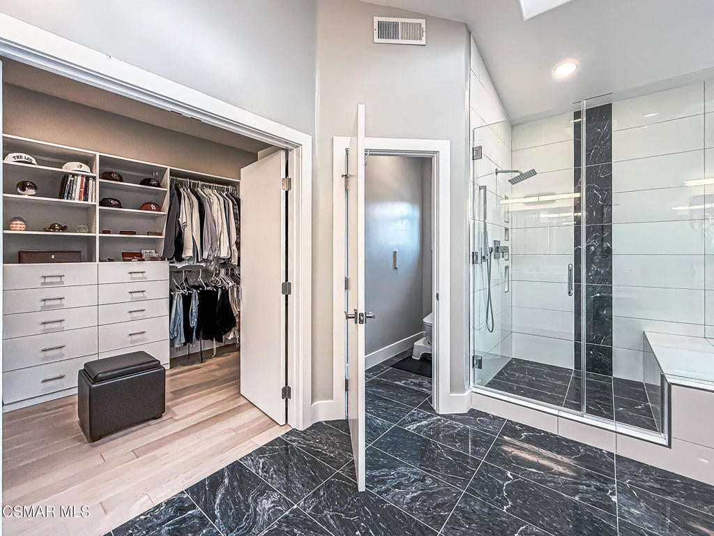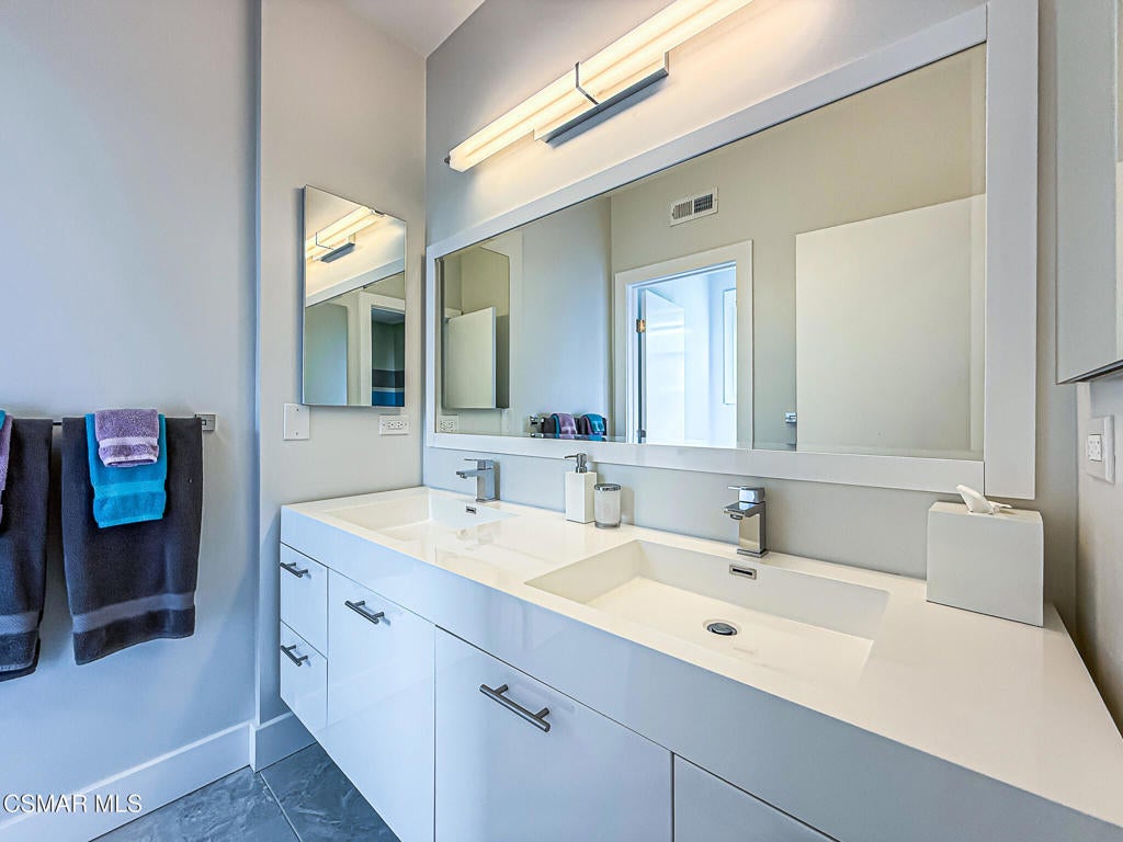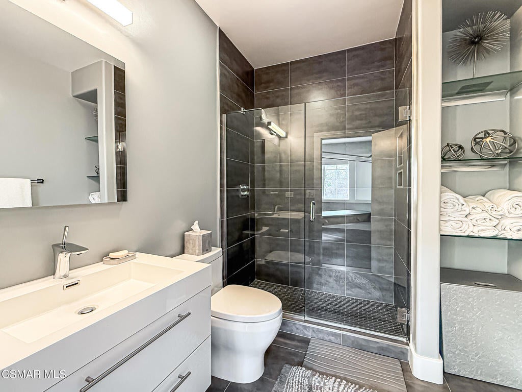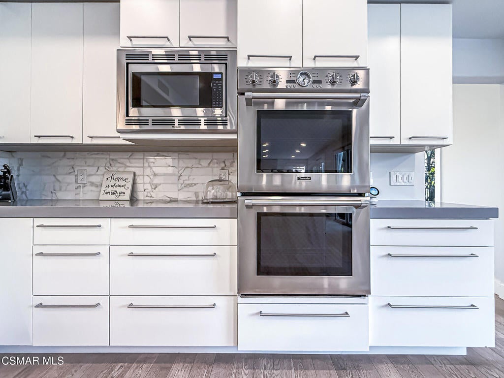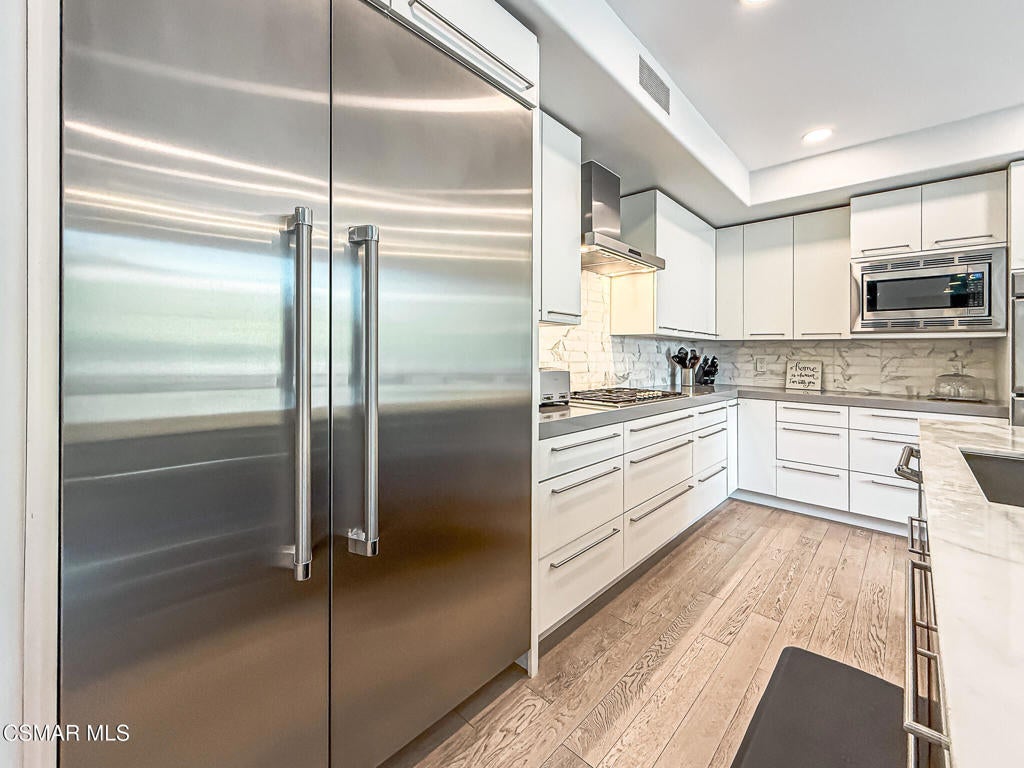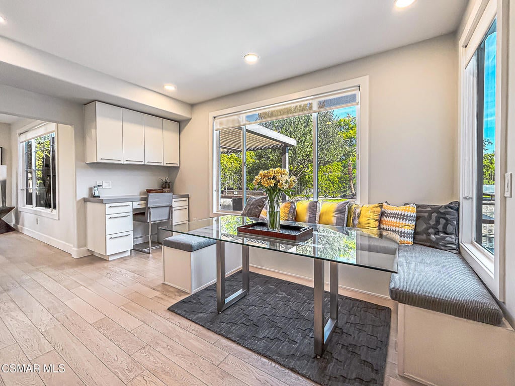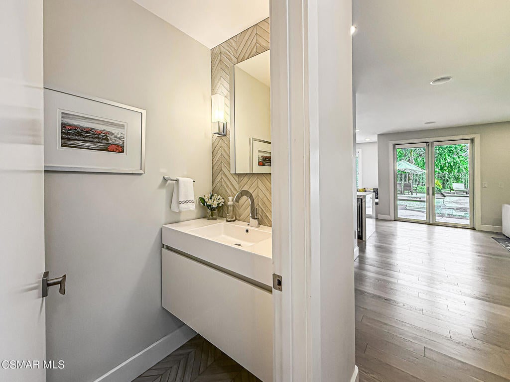 A rare opportunity to own a truly exceptional home. Nestled in the hills of Calabasas within the sought-after gated community of Calabasas View, this beautifully reimagined residence sits on an isolated lot on a quiet cul-de-sac and perfectly captures the essence of refined California living. Blending sophisticated interiors with effortless indoor-outdoor flow, the home spans 3,602 square feet on an expansive 10,141 square foot lot with incredible views of the Santa Monica Mountains. Designed for both grand entertaining and comfortable everyday living, the open-concept floor plan features four bedrooms, five bathrooms, and an open office area. A dramatic 20-foot two-story foyer creates a striking first impression, welcoming you into light-filled living spaces with a sense of openness and elegance. At the heart of the home, the gourmet kitchen is appointed with a stunning marble island and backsplash, professional-grade appliances, and a Chanson under-counter water ionizer. The kitchen flows seamlessly into the inviting family room, creating a warm yet sophisticated gathering space. Formal living and dining rooms offer elegant settings for hosting, while two fireplaces, located in the living room and family room, add warmth and timeless charm. A convenient downstairs en-suite bedroom provides an ideal retreat for guests or multigenerational living. Upstairs, the luxurious primary suite serves as a private sanctuary, offering beautiful views from every window, a spa-inspired bathroom, and a spacious walk-in closet. Enjoy peaceful mornings or spectacular sunsets from the private primary balcony. Two additional upstairs en-suite bedrooms are generously sized and versatile. Originally designed as a five-bedroom home, two upstairs bedrooms have been combined into a Pilates studio/gym and can easily be converted back if desired. The private backyard is a true entertainer's oasis, designed for resort-style living. Enjoy the updated sparkling pool and spa, a cozy firepit, outdoor kitchenette, multiple lounging areas, and a four-hole putting green, creating the perfect setting for relaxation and gatherings with family and friends. An attached three-car garage provides added convenience and security. Additional highlights include white oak flooring, Sonos sound system, ADT security system, Lorex security cameras, a fully owned Sunrun solar system, and a Chanson whole-house filtration and water softening system. Ideally situated within the desired Las Virgenes Unified School District, this home offers exceptional convenience with easy access to the 101 Freeway. Enjoy being just fifteen minutes from iconic Malibu beaches, a short distance to Erewhon Market, and only minutes from premier shopping and dining at The Commons at Calabasas, Westlake Village Promenade, and the Valley destinations.