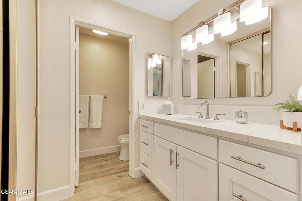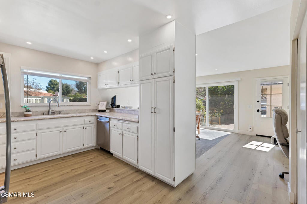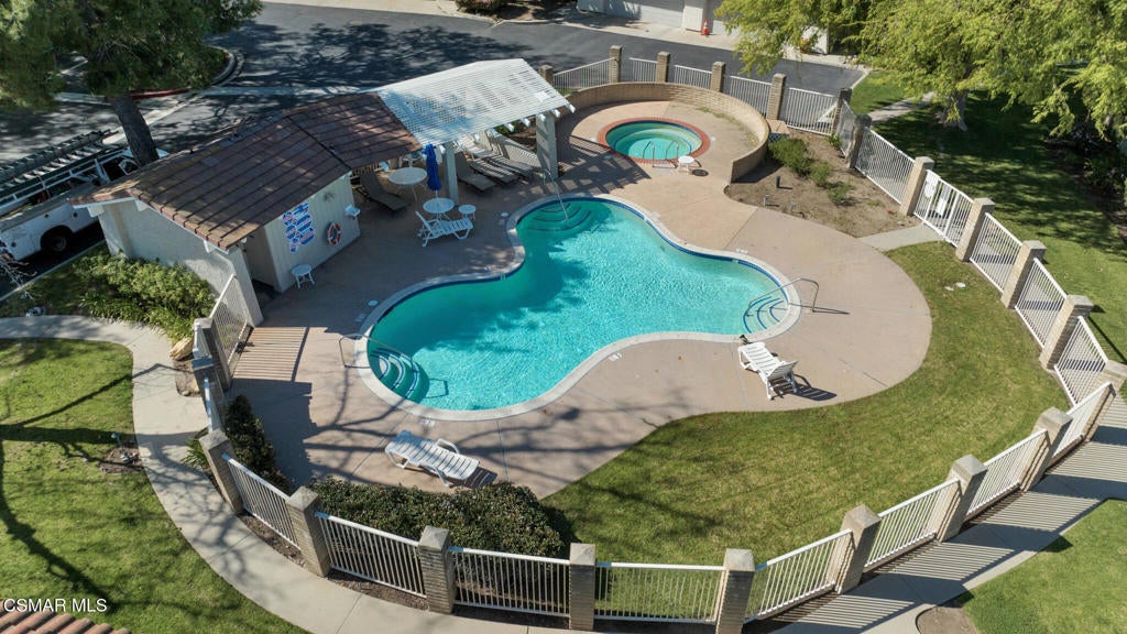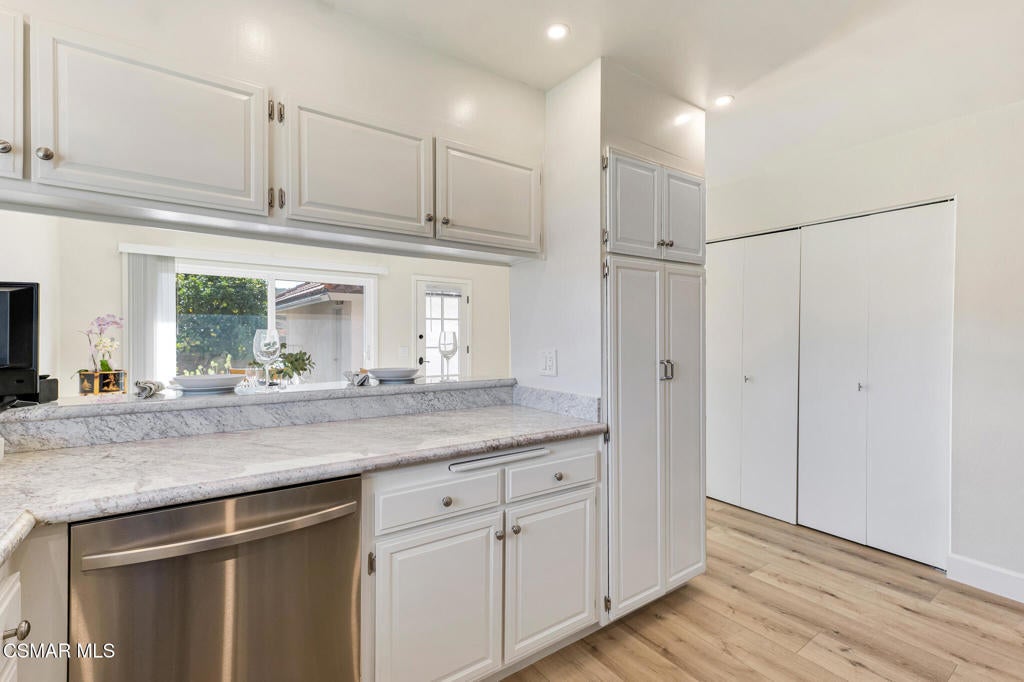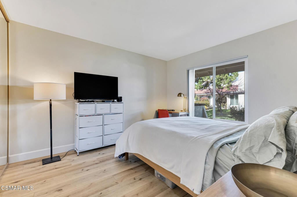 Welcome to this wonderful single-story, 2-bedroom, 2-bath end-unit condo in the desirable Triunfo West community. Enter from the peaceful greenbelt setting into a bright and inviting home designed for comfortable everyday living.As you step inside, you're welcomed into the light-filled living room featuring multiple windows and a cozy gas fireplace. Just beyond, the kitchen offers granite countertops, white cabinetry, a breakfast bar with counter seating, and convenient indoor laundry nearby. Continuing through the home, the dining area sits just off the kitchen and opens directly to the backyard, creating a natural transition to outdoor living.The spacious primary suite offers a relaxing retreat with an ensuite bathroom featuring quartz countertops, generous counter space, two closets, a walk-in shower and separate water closet. The guest bedroom is well-sized with mirrored closet doors, and the guest bathroom also features a quartz countertop. Ample hallway storage provides excellent space for organization.The dining area leads directly to the private back patio, complete with pavers and a mature lemon tree. This easy, low-maintenance outdoor space is perfect for relaxing and also provides direct access to the attached two-car garage.Recent upgrades include luxury vinyl flooring with a wood-like finish, newer windows, fresh interior paint, and recessed lighting in the living room.Triunfo West residents enjoy two community pools and a fantastic location near the lake, restaurants, shopping, and everyday conveniences. The home is also conveniently located near the community pool and guest parking, making it easy for both residents and visitors to enjoy the neighborhood.