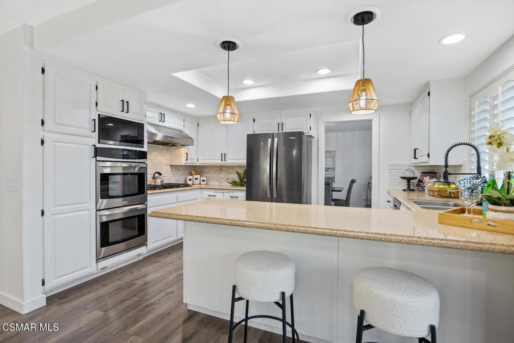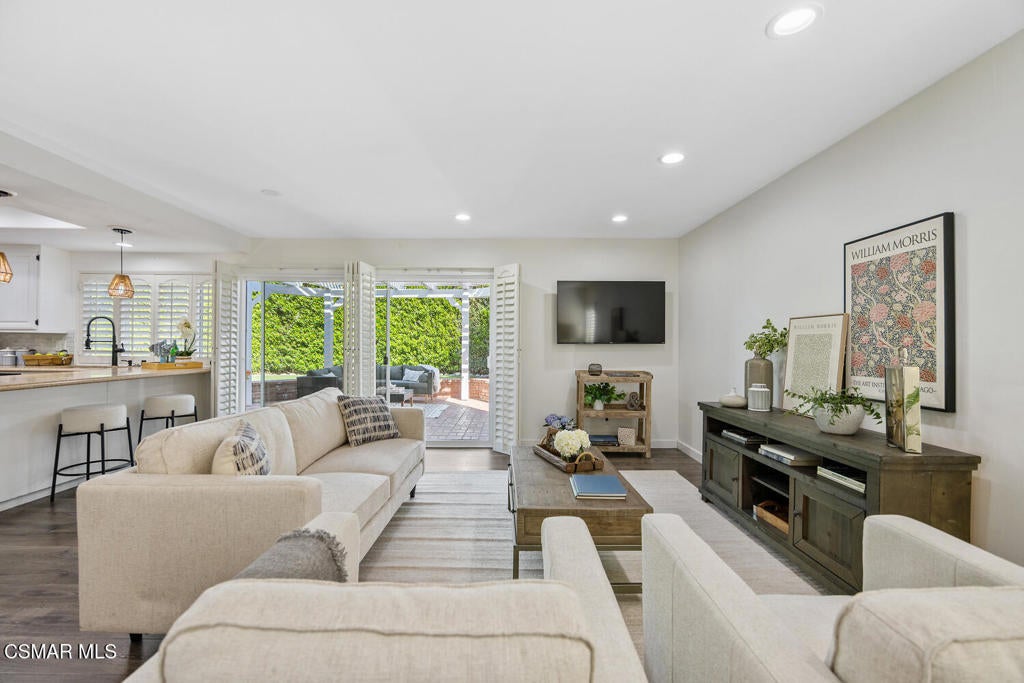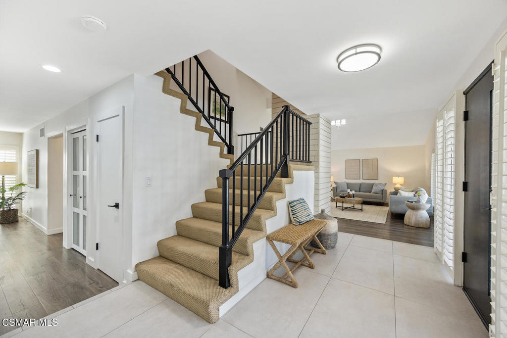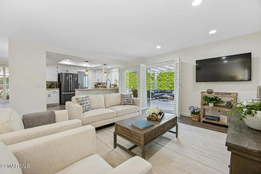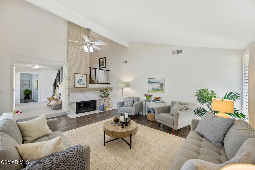 Presenting a beautifully updated 4 bedroom home located on a cul-de-sac street in one of the most desirable neighborhoods in all of Westlake Village, the highly sought after Foxmoor community. With fantastic curb appeal, the home welcomes you with a tranquil courtyard featuring newly poured, beautifully finished concrete, lush landscaping, and a charming cascading fountain. Inside, the home offers modern high ceilings, modern laminate flooring and abundant natural light throughout. The open concept floor plan is both functional and inviting. The spacious living room features a cozy fireplace and ample room for entertaining, while the formal dining room enjoys views of both the backyard and courtyard. The gourmet kitchen is equipped with stainless steel appliances, counter seating, and new designer lighting, and opens seamlessly to a large family room that is perfect for everyday living and gatherings.Thoughtful upgrades throughout include a newer roof, a new dual zone HVAC and ducting system for improved efficiency and year-round comfort, and a fully remodeled downstairs bathroom. The expansive backyard offers plenty of space for play and relaxation, complete with a brick patio, jacuzzi spa, and firepit, ideal for enjoying warm Southern California evenings or hosting guests. Additional highlights include a spacious three car garage with ample storage and an electric vehicle charging setup. Residents of Foxmoor enjoy access to a beautifully maintained community pool and expansive greenbelts, all with a low HOA. The neighborhood is known for its welcoming atmosphere and convenient access to award-winning schools, scenic hiking trails, shopping, dining, golf, and tennis. A wonderful opportunity to own in one of Westlake Village's most sought-after neighborhoods.