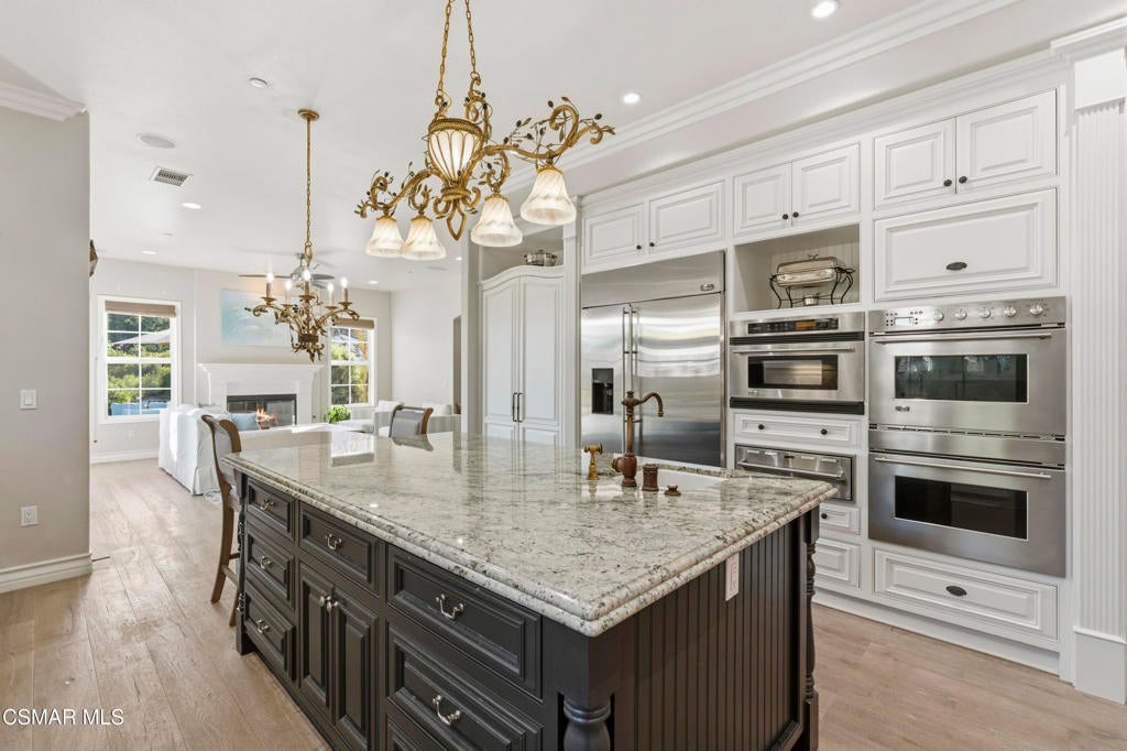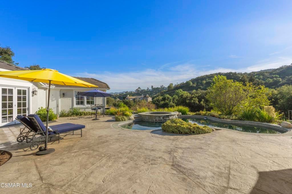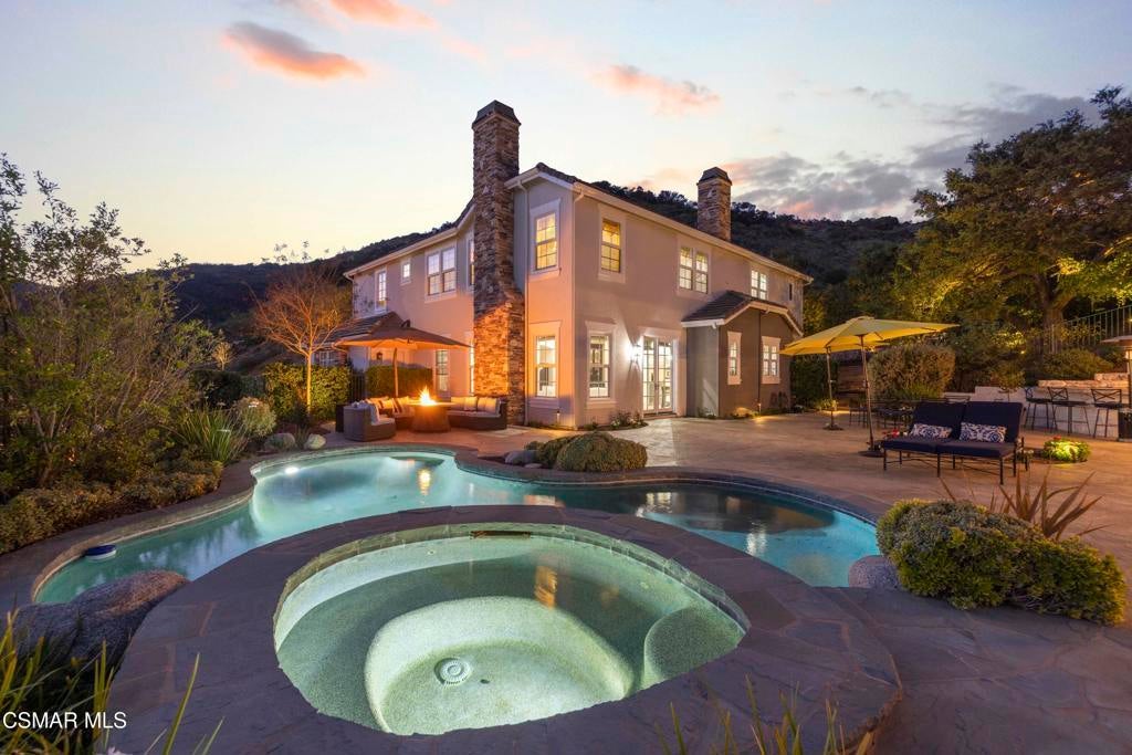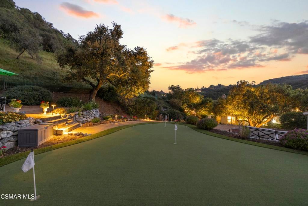 Set behind the gates of Majestic Oaks, one of Westlake Village's most exclusive enclaves, this elegant estate offers the privacy, scale, and lifestyle that define luxury living in the hills. Surrounded by natural beauty and positioned in one of the area's most sought after communities, the home blends timeless design with an exceptional indoor outdoor flow.The backyard delivers a true resort experience with a pool, spa, and stunning mountain views that create a sense of escape. A detached guest house adds valuable flexibility for visitors, a private studio, or poolside entertaining, while the private golf putting green offers a rare and desirable feature. With expansive outdoor space and a setting that feels both peaceful and impressive, this is a home designed to be enjoyed year round.Inside, the layout is both spacious and versatile, with expansive living areas, generously sized bedrooms, and a flexible office that can easily serve as an additional bedroom. The primary suite feels like a true retreat, complete with a spa inspired bath featuring dual vanities, a soaking tub, and a walk in shower designed for everyday comfort and relaxation.At the center of the home, the kitchen is beautifully designed with ample counter space and an inviting atmosphere that opens seamlessly to the main living areas, making it ideal for both everyday living and elevated entertaining.Located in the heart of Westlake Village, moments from upscale dining, shopping, scenic trails, and top rated local schools, this Majestic Oaks residence offers a rare opportunity to enjoy a gated estate lifestyle in one of the Conejo Valley's most desirable settings.