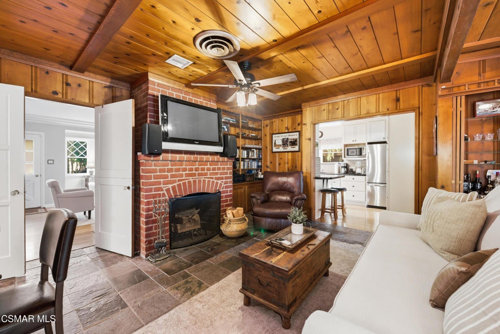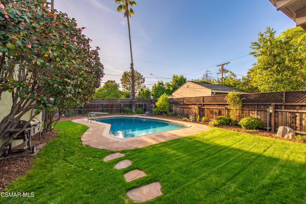 Welcome to The Cottage at Valley Village--a charming home filled with character that is rarely found in homes today. Featuring 2 bedrooms and 2 bathrooms, plus a versatile den that can easily function as a third bedroom. As you step inside, you're immediately drawn to the inviting living room, complete with a cozy wood-burning fireplace. Just beyond is a well-appointed dining room with direct access to the upgraded kitchen. The kitchen offers a warm, welcoming feel with newer stainless-steel appliances, a classic subway tile backsplash, and a large butcher block countertop space that adds both charm and personality.The den is the highlight of the home, offering incredible flexibility. Complete with a full wet bar, its own wood-burning fireplace, and room to add a closet, it can easily serve as a third bedroom, home office, or entertainment area. Sliding doors open to the spacious backyard, creating a seamless indoor-outdoor flow.Step outside to your private retreat, where lush landscaping surrounds a newly resurfaced heated pool and a covered flagstone patio--perfect for relaxing or entertaining. There's even a large vegetable and herb garden for those who enjoy cooking. Recent upgrades include brand-new carpet in the bedrooms, fresh interior and exterior paint, a new sewer line, new gas line, and refreshed landscaping with a new irrigation system.An added bonus is the detached two-car garage with ample space for an ADU. This is a rare opportunity to own a home that beautifully blends charm and THE ideal outdoor living space in one of the most thriving neighborhoods.