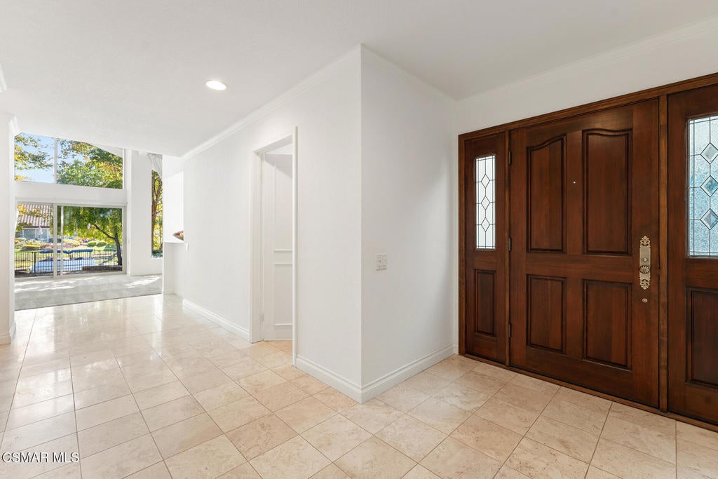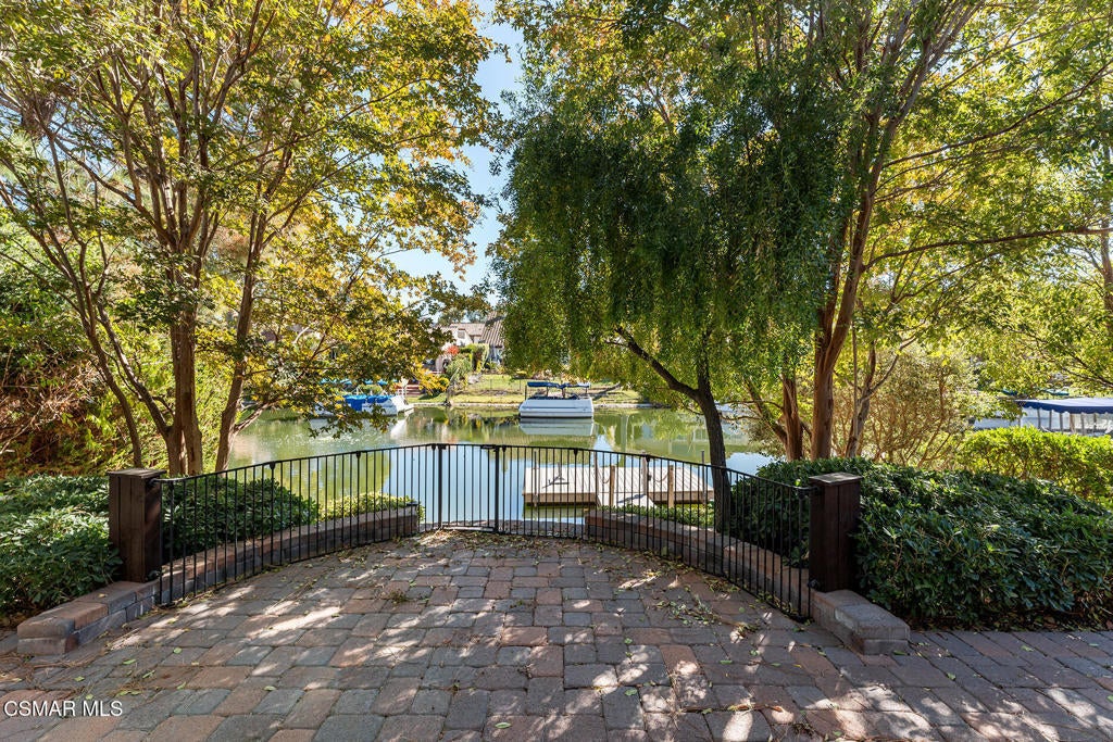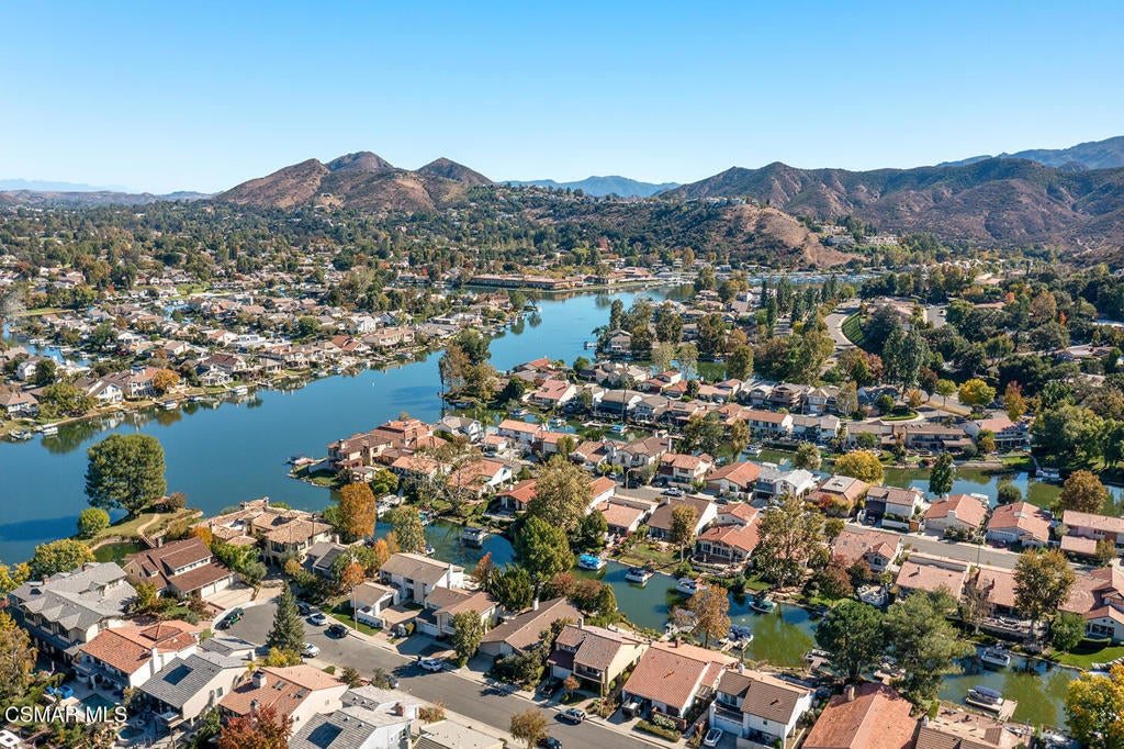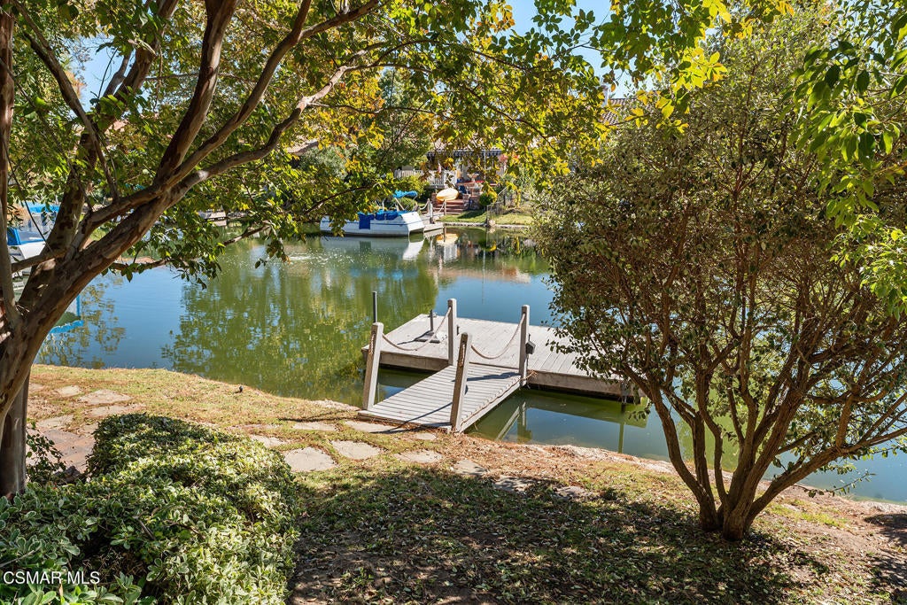 Westlake Village lakeside living at it's best...RARELY AVAILABLE SINGLE STORY on a serene cul-de-sac in a prime location 4 homes from the main channel. Surrounded by million dollar homes, this light and bright home features a very open and inviting 2 bedroom/2 bath floorplan. Designer touches are everywhere with its neutral colors, stone and hardwood flooring, crown molding and built in bookcases. The spacious main living room has a fireplace and wall of windows with spectacular views of the lake. In the kitchen you will find custom cabinetry with Corian countertops, built in desk and eat in area. The master bedroom includes a fireplace, skylights and a private patio just off the slider. Outside you will love the custom hardscaping providing plenty of sitting areas and room to entertain, with lots of privacy from the beautifully manicured mature landscaping. Don't forget about your own private lighted dock with boat dock privileges for your boat or simply sitting out and enjoying the serenity of the water. Hurry won't last! Photos from before current tenant.