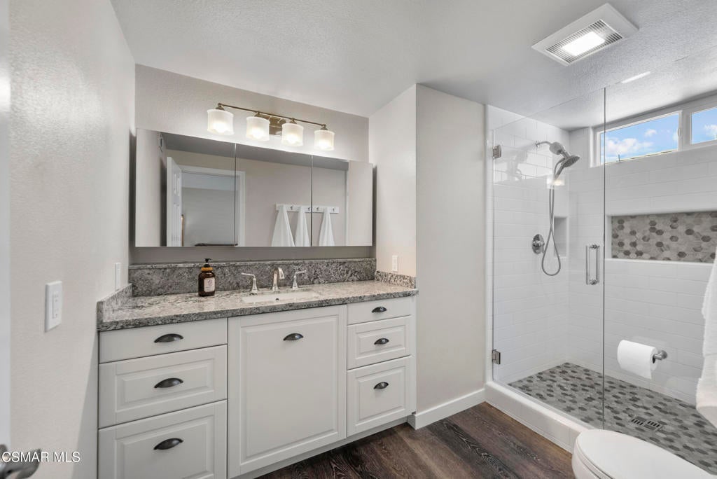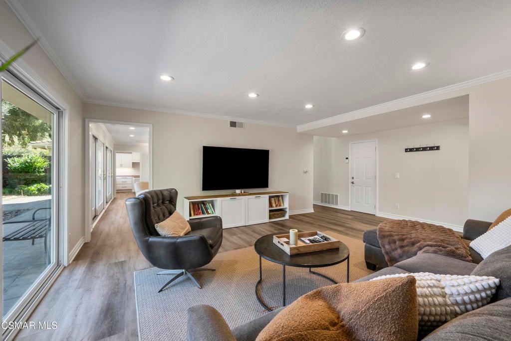 Welcome to Foxmoor! - known for its lush greenbelts, top-rated schools and unmatched quality of life. A short distance to Westlake Elementary, community pool and Portero Creek greenbelt, this beautifully maintained Mediterranean-style home is truly move-in ready. Offering 4 bedrooms plus a dedicated office, it blends comfort, style, and convenience in an ideal location.Step inside to find an abundance of natural light and an inviting, open feel throughout. Expansive double sliding doors frame views of the spacious backyard and create a seamless connection between indoor and outdoor spaces.The thoughtfully updated kitchen features a Bosch induction cooktop, GE Profile oven, stainless steel appliances, and a casual dining area that flows naturally into the main living spaces. An airy living room and inviting family room provide versatility for both entertaining and everyday living, while the no-step main level adds convenience and accessibility. A second set of sliding doors in the family room further enhances the home's indoor-outdoor lifestyle. Upstairs, the primary suite offers a generous walk-in closet and a well-appointed en-suite bathroom. The secondary bathroom features double vanities and a shower-over-tub, while a powder room serves the main level.Recent upgrades include a new roof (February 2026), updated windows, cellular shades, tankless water heater, epoxy-finished garage, new driveway and walkway, and a freshly painted interior and exterior - providing peace of mind and true move-in readiness.The backyard is framed by lush landscaping and offers a natural gas BBQ hookup, fire pit, and generous space to relax or entertain -- an ideal setting to enjoy the best of Westlake Village living.Conveniently located near top-rated schools, shopping, dining, and local amenities, this home presents an exceptional opportunity to own a thoughtfully updated property in a prime location!