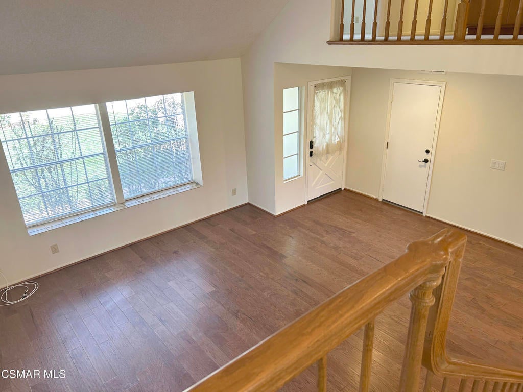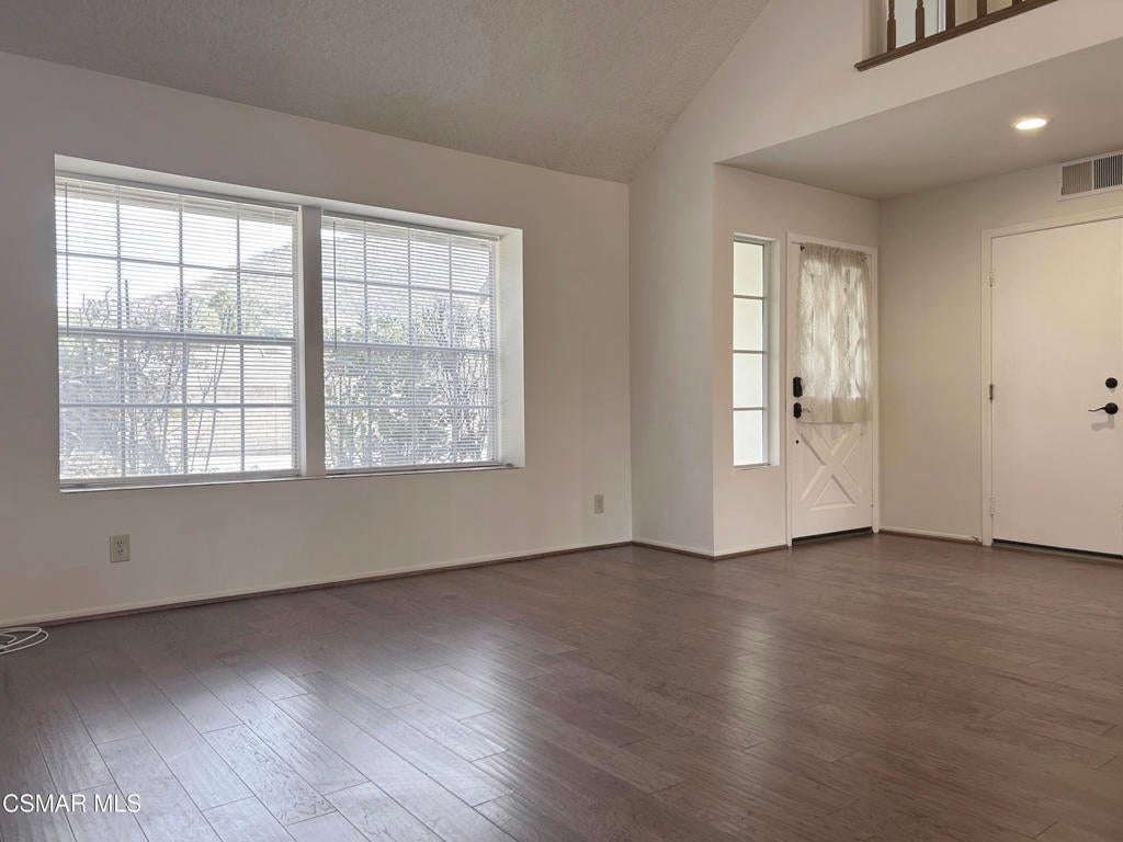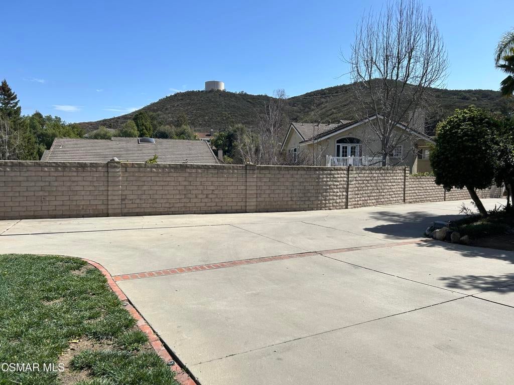 Travel down the long gated driveway of a private flag lot and arrive at this immaculate 4 bedroom, 3 bath home. Paint, carpeting, tile in the primary and downstairs showers, faucets and light fixtures are all 1 year old. NEWER wood like flooring and air conditioning. Enter into an expansive living room with high ceilings. One bedroom and bath with a shower is downstairs. The kitchen that adjoins the family room boasts quartz countertops, built in oven and microwave, dishwasher, refrigerator and an electric cooktop. The highlight of the family room is the brick hearth and gas log fireplace. Adjacent to the kitchen is the dining room. Upstairs is the primary bedroom and bath and 2 additional bedrooms and 1 bath. Primary bedroom features a walk in closet. Primary bath has 2 sinks and a separate tub. There's a 3 car garage with lots of storage cabinets. Washer and dryer (gas/AC) hookups are also in the garage. Outside, there's a grass area with a large cement area for backyard entertaining. Gardener is included. Sorry, no cats. Dogs are a possibility, please contact agent. Possible RV access. Located on a cul-de-sac with schools, shopping, dining and hiking nearby. It's time to call Newbury Park home!