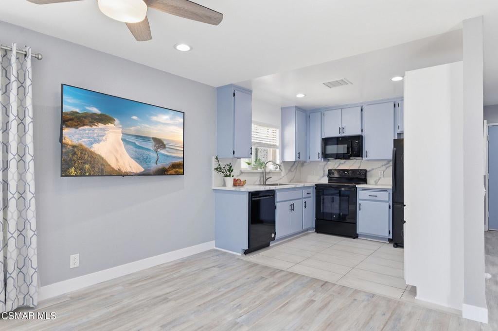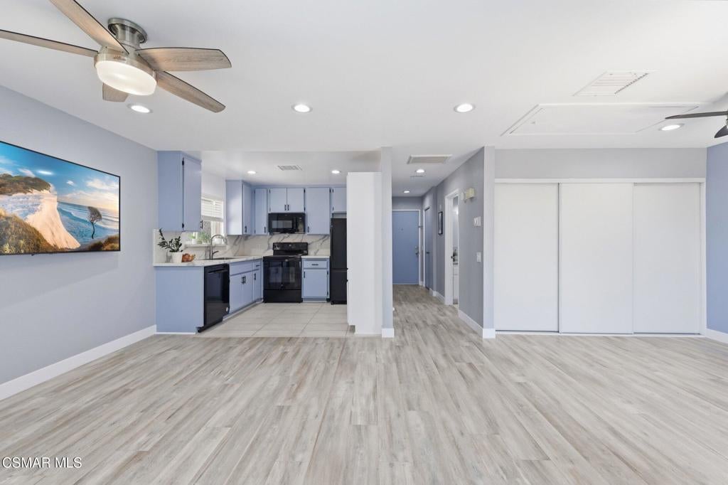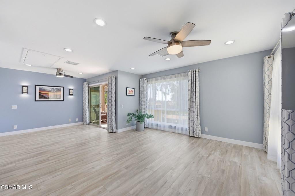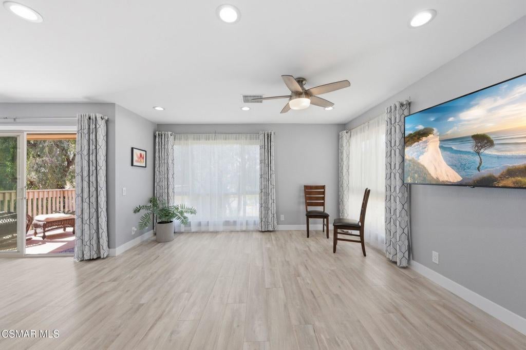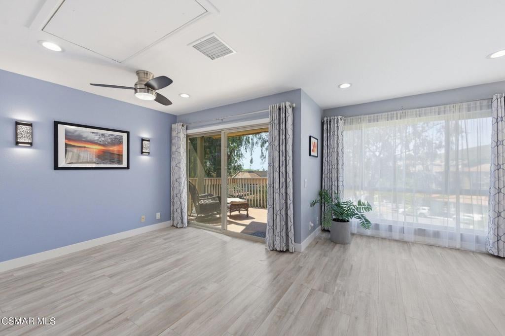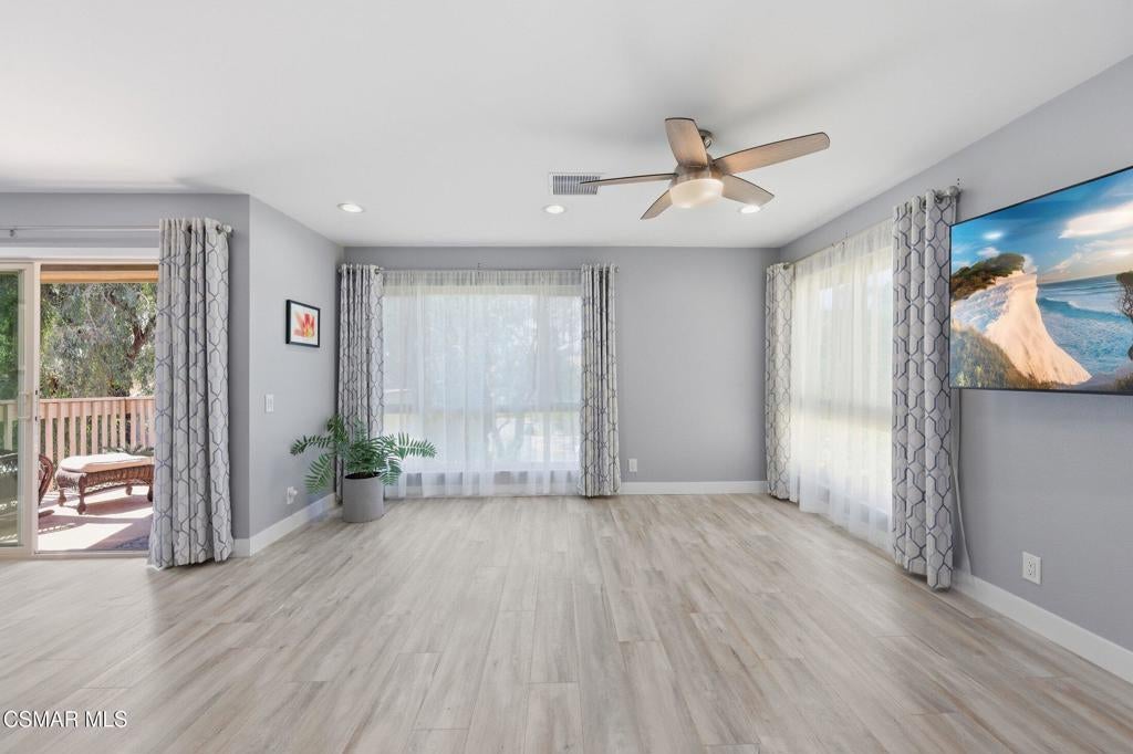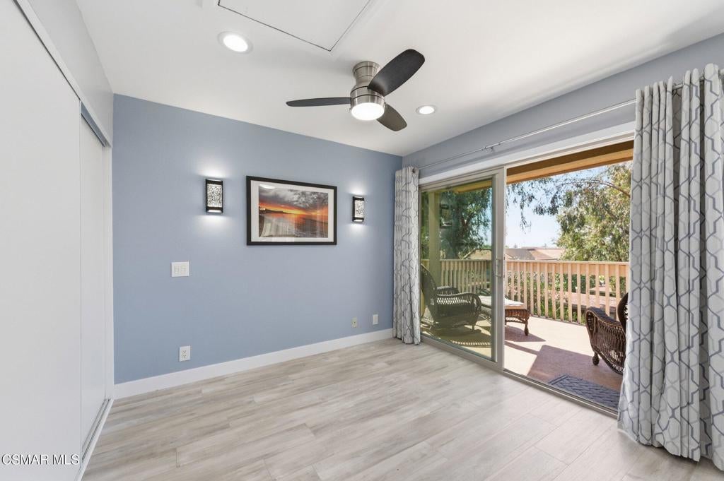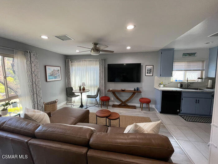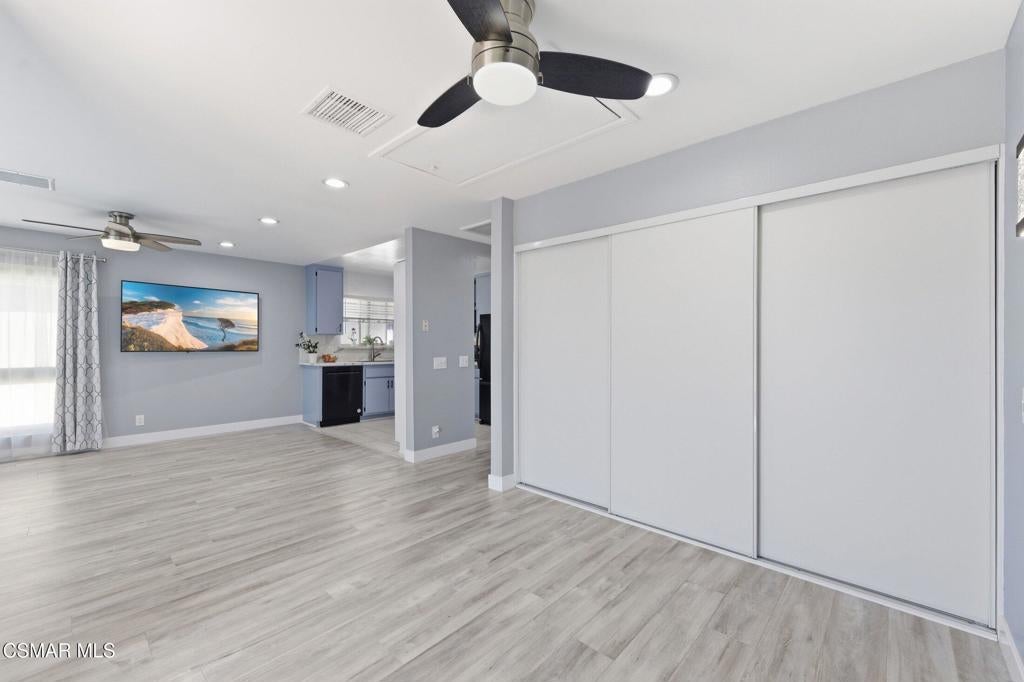 A beautiful penthouse, one of Oak Knoll Villas finest for age 55 or better, is perched on the 3rd floor with elevator access. This updated studio offers a rare sense of privacy with no adjoining walls creating a peaceful retreat that truly feels like your own sanctuary. Bathed in natural light and surrounded by treetop views and serene balcony access. The home features wide-plank luxury vinyl flooring and a fresh, modern palette throughout. The open-concept layout provides flexibility for comfortable living and effortless entertaining, while the private balcony invites you to relax and unwind in a tranquil, natural setting. The living area includes a flat-screen TV, and the thoughtfully updated kitchen has quartz countertops, light cabinetry, and upgraded appliances, including a refrigerator. The remodeled bathroom, newer HVAC system, ceiling fans, recessed lighting and updated windows and sliding doors ensure both style and comfort. Set within a vibrant 55+ community, residents enjoy an array of resort-style amenities including a pool and spa, clubhouse, fitness center, game room, billiards, library and business center. One covered parking space is available with storage too. Ideally located near premier shopping, dining, scenic botanical gardens, and miles of hiking trails--with convenient freeway access--this home offers the perfect blend of tranquility and an active, connected lifestyle in the heart of Thousand Oaks. Owner Prefers No Pets. Applicants must use RentSpree.