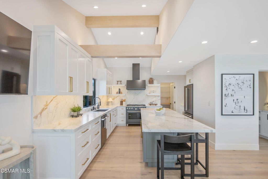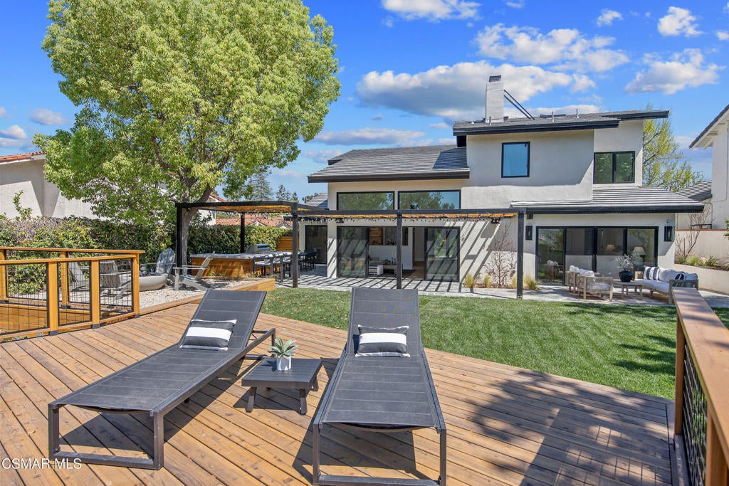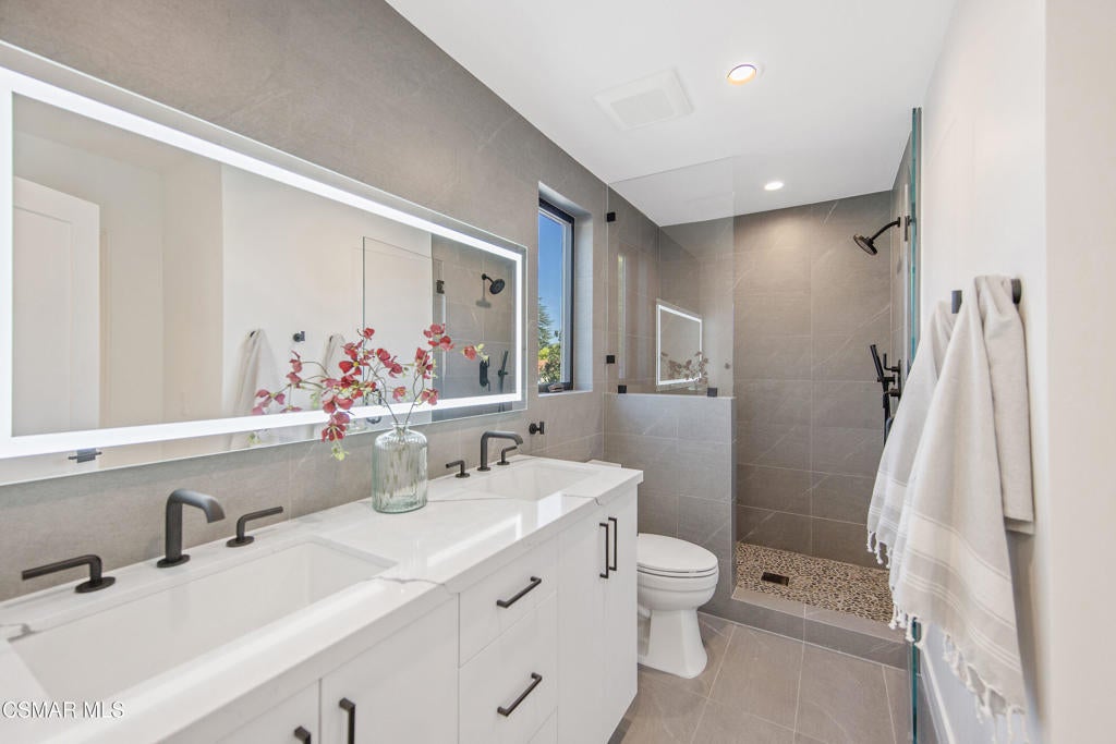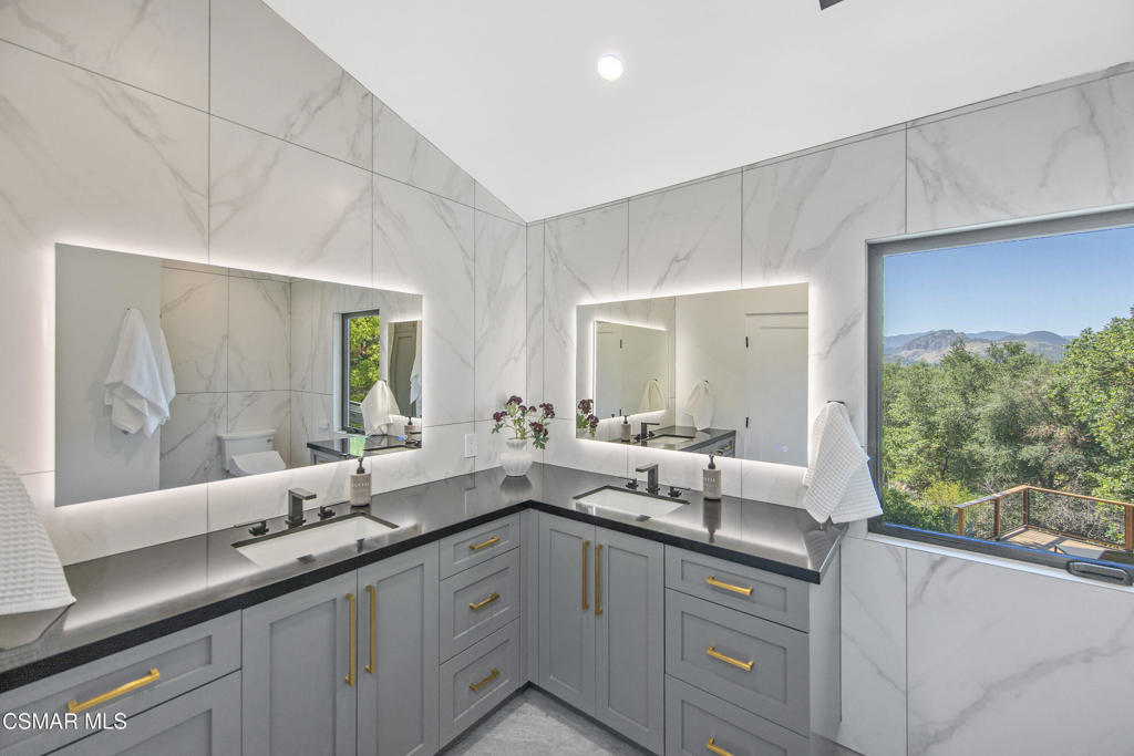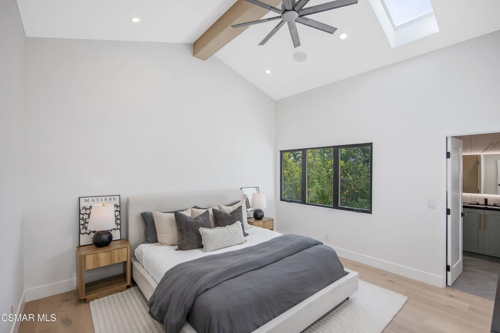 Welcome to your very own modern masterpiece in the heart of Westlake Village sitting on just under 12,000 SqFt of land in Village Homes in Ventura County. Rarely does a property of this caliber and lot size come available! The most premier and desired layout only offered within this home's specific design is two true primary bedroom suites: 1 main level primary bedroom suite with direct double door access to views and a serene sitting area as well as a second primary bedroom suite situated upstairs with mountain views featuring your very own spa-like bath retreat offering ultimate relaxation. 4 total bedrooms and 3.5 bathrooms, unlike any other Village Home layout offers. Through the double glass framed entry doors, you will find a home that has been completely renovated from top to bottom with impeccable attention to every detail. Take a look at the endless upgrades and meticulous finishes used to create this unwavering quality. All upgrades listed below completed and new as of 2025-2026: Roof with two layers of TU 35lb underlayment and Duralite Saxony 700 Slate Stone Tiles. 7' white oak wood flooring throughout. Custom made cabinets throughout the home. Cafe Professional appliances in the kitchen. Quartz countertops throughout the home. Catspaw smooth finish plaster throughout the house's interior. 2 Toto Bidet Toilets. Kohler dual shower control systems in the second level primary bathroom along with a free standing solid tub in the wet room. Redone Pex and Copper plumbing throughout. Milgard doors and windows, V300 Triasic Series. Double glass framed front entry doors. Tankless water heater. Electric HVAC system including all ducting. 200amp panel and sub panel. Electrical and low voltage wiring throughout the entire home. Six zone Sonance house speaker system runs off Control4 home system. Control4 home lighting and music control system throughout. WiFi ready boosters: first and second floors. Camera system with local NVR recording system. Whole-home wired media closet. LG washer & dryer. BBQ area with concrete top, redwood cladding and stainless steel appliances. Exterior stucco on the entire house. Redwood deck. Gas fire-pit area. Flagstone hardscape front and back. All landscaping redone: plants, grass, trees- front and back. Landscape lighting front and back. Front courtyard fountain. Garage door opening systems. Epoxy garage flooring. Drains above ground all redone, 50% redone underground within house footprint. HOA: $360 Quarterly. Village Homes neighborhood offers a community pool and clubhouse. Just around the bend from the prestigious Oaks Christian Elementary School as well as parks, tennis courts, sport fields, hiking, biking, the Westlake Lake and much more.