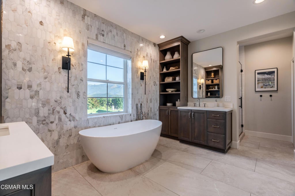 Absolutely stunning! Exceptionally upgraded estate with expansive lot and mountain views in exclusive gated Estancia. Highly desirable natural light filled open floor plan with 5 bedrooms, 4 1/2 baths. Ultra stylish, extensively remodeled with exquisite decor and design throughout. Grand formal entrance welcomes with high ceilings. Bright and open living room flows seamlessly into the dining room. Remodeled chef's dream kitchen is ideal spot to host friends and family, beautiful cabinets, ample storage, tile backsplash, top-of-the-line appliances, big center island with breakfast bar and nook. Adjoining spacious family room and fireplace, wall of windows, and sliding doors. Private primary suite with retreat, fireplace, balcony with mountain views, his and hers closets, luxurious dual vanities, tub and separate shower. 3 additional bedrooms upstairs and 1 downstairs ensuite. Private entertainers oasis dream yard, resort living with huge sparkling pool, jacuzzi, water slide, patio with multiple seating areas, BBQ center, big grass area, garden beds, lush landscaping, and incredible views of Mount Boney. 3 car garage. Wonderful curb appeal. Near hiking and biking trails. A special offering, must see!