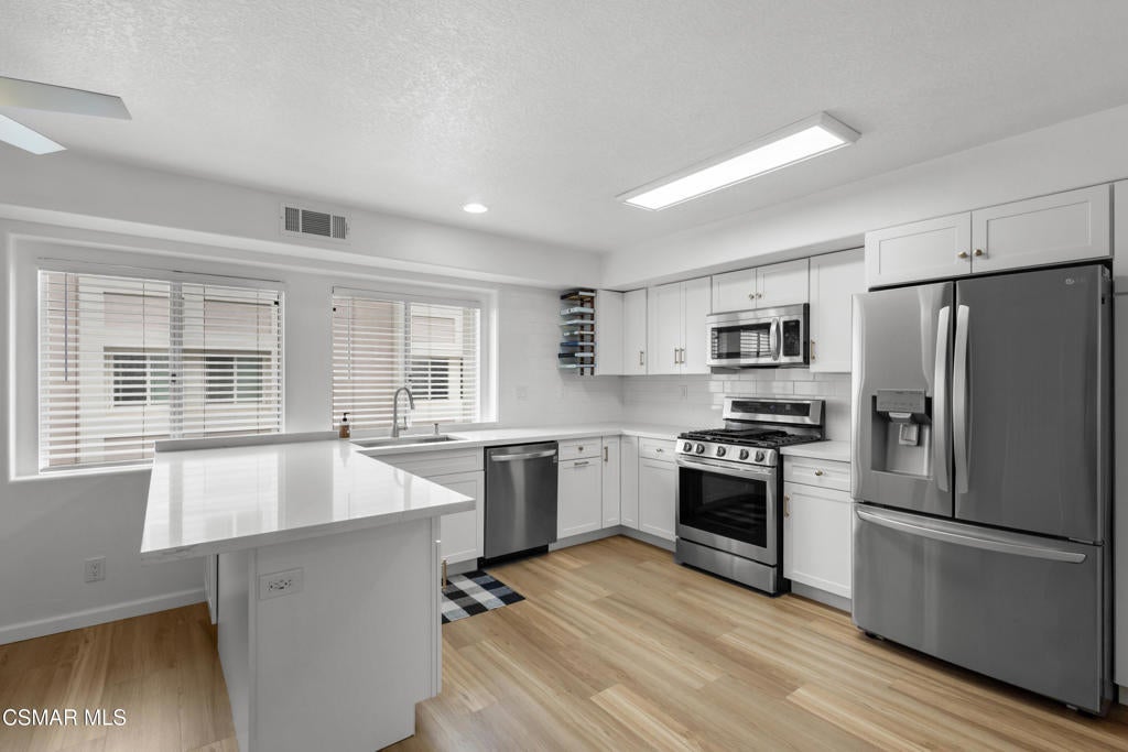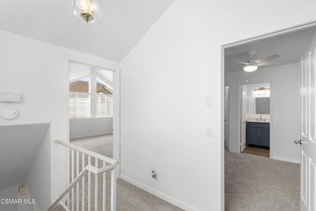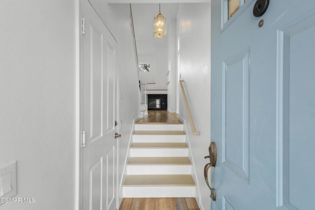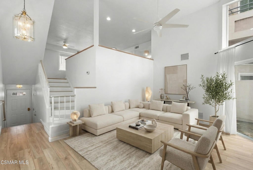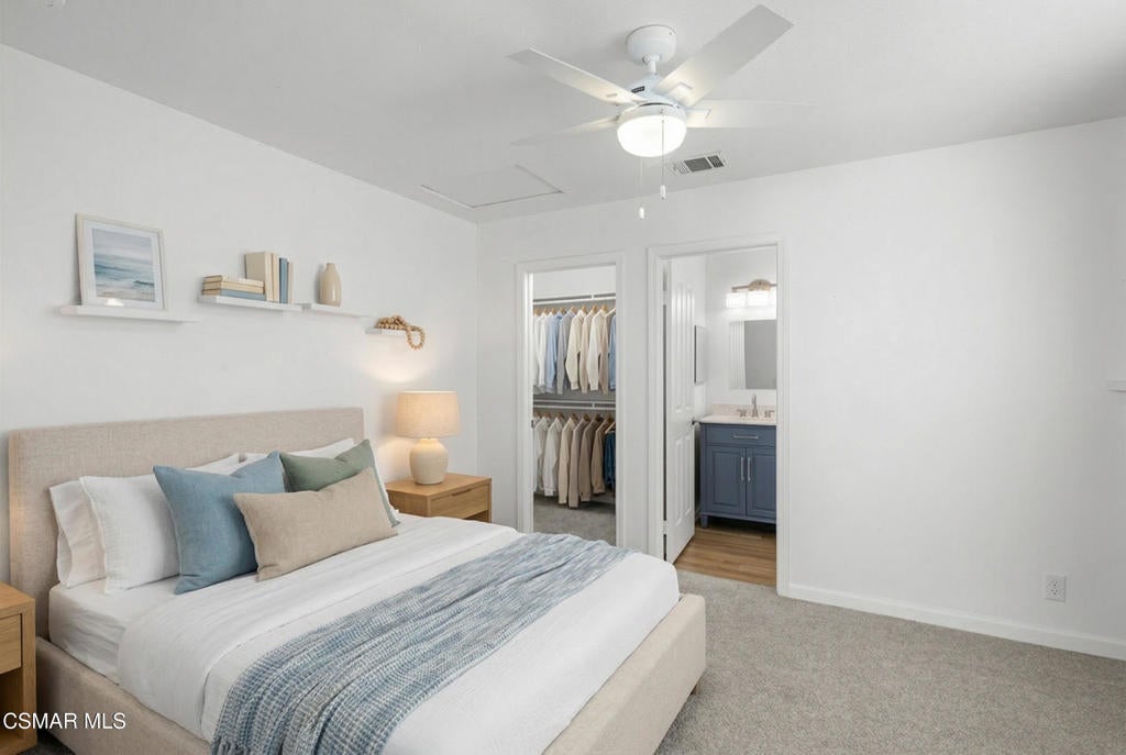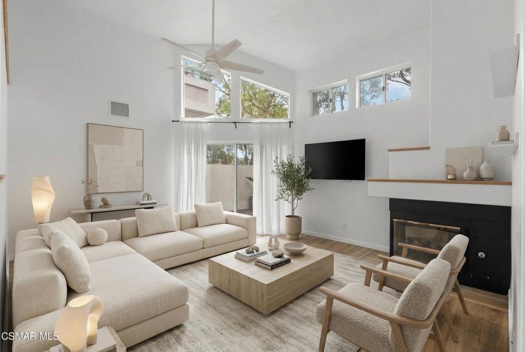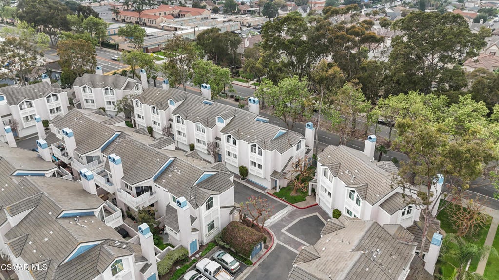 Beautifully upgraded end unit, 3-story townhome offering exceptional natural light and a prime coastal location just one mile from the beach, is a must see! Thoughtfully designed with open sight-lines, modern upgrades, and flexible living spaces, this home delivers comfort, functionality, and an effortless coastal lifestyle.Throughout the home, you'll find a refined blend of newer carpet and flooring, creating a warm yet updated feel across all levels. The updated kitchen (2024) is a true centerpiece, featuring quartz countertops, white cabinetry, a stylish backsplash, gas range, bar seating, and an expansive dining area ideal for everyday living and entertaining.The home's layout offers exceptional versatility across two connected living levels. The main floor features a welcoming space with a gas fireplace, soaring vaulted ceilings that extend to the upper level, and direct access to a bright private patio, creating an open, airy feel. This level can function as a traditional living room or be reimagined as a formal dining space, depending on your lifestyle.The upper level overlooks the space below. Here, the spacious dining area flows seamlessly into the kitchen, while the adjacent built-in desk/office nook can be transformed into a comfortable media lounge with a sectional and TV--creating a second living area just off the kitchen and ideal for casual gathering or entertaining.Both bedrooms are configured as private primary suites, each with its own en-suite bathroom. The main suite features a beautifully upgraded bath with a large shower, frameless glass, built-in bench, and dual vanities thoughtfully positioned in a separate space from the shower and toilet, offering both privacy and functionality. The inside laundry area is located upstairs making for easy access and convenience.Outside you will find a bright private patio, complete with a natural gas line for grilling, perfect for relaxing or entertaining. The attached 2-car garage offers convenience and includes overhead hanging storage racks for efficient organization, along with MyQ smart technology for remote access and in-garage Amazon deliveries.Ideally located near a scenic creekside path that leads directly to the beach--and in the opposite direction to the local library, this home offers the perfect balance of nature, recreation, and everyday convenience. Enjoy refreshing coastal breezes throughout the home by simply opening the windows and sliding doors.With abundant natural light, high ceilings, extensive upgrades, and a thoughtfully flexible layout, this home delivers the best of coastal living in a modern, move-in-ready package. Possible assumable VA Loan at $4.205% available for qualified Buyer.