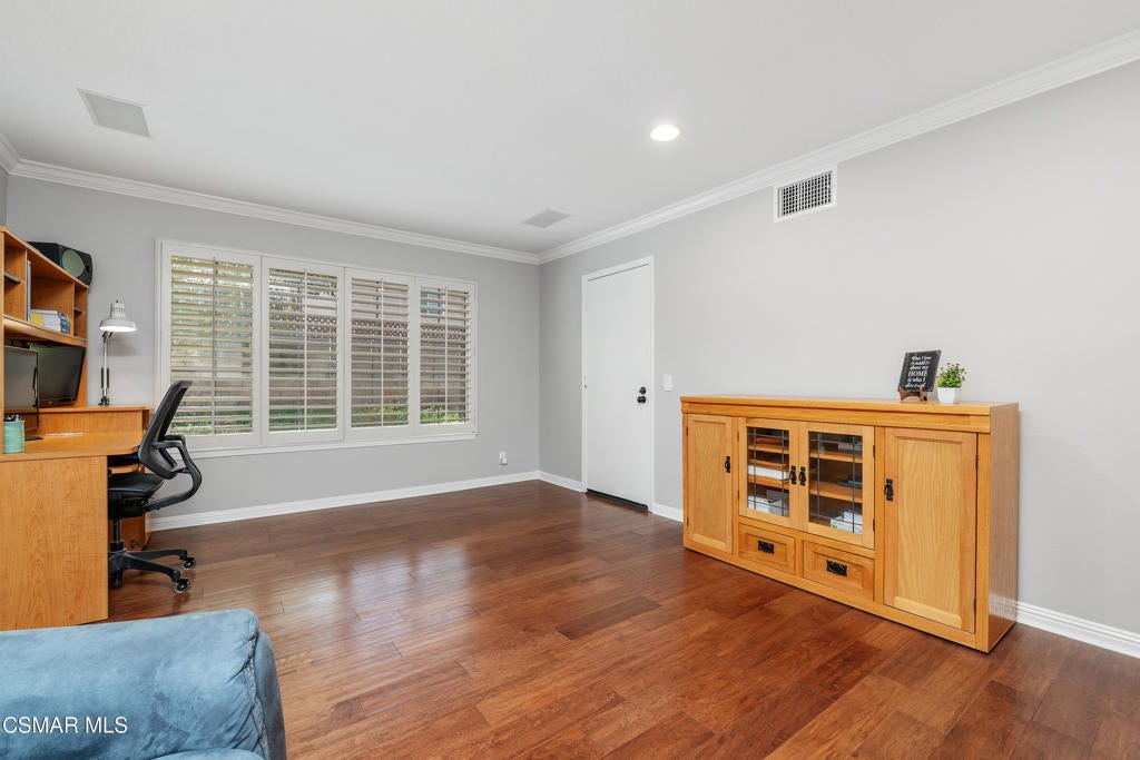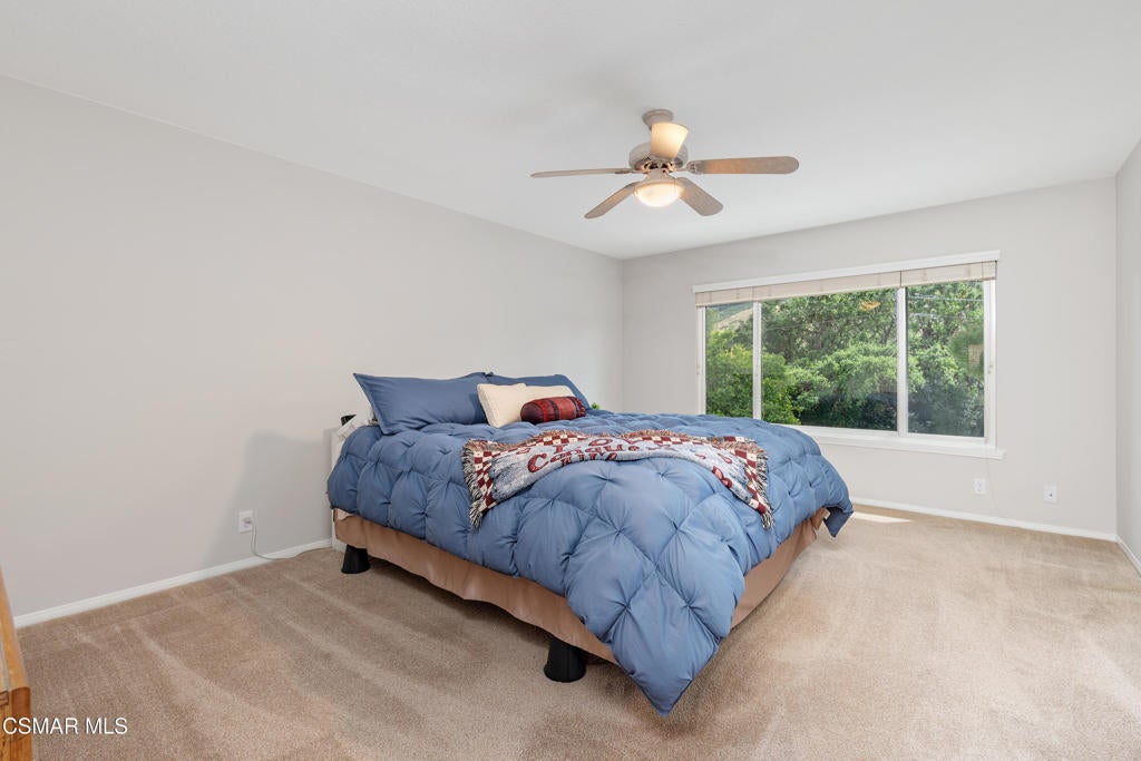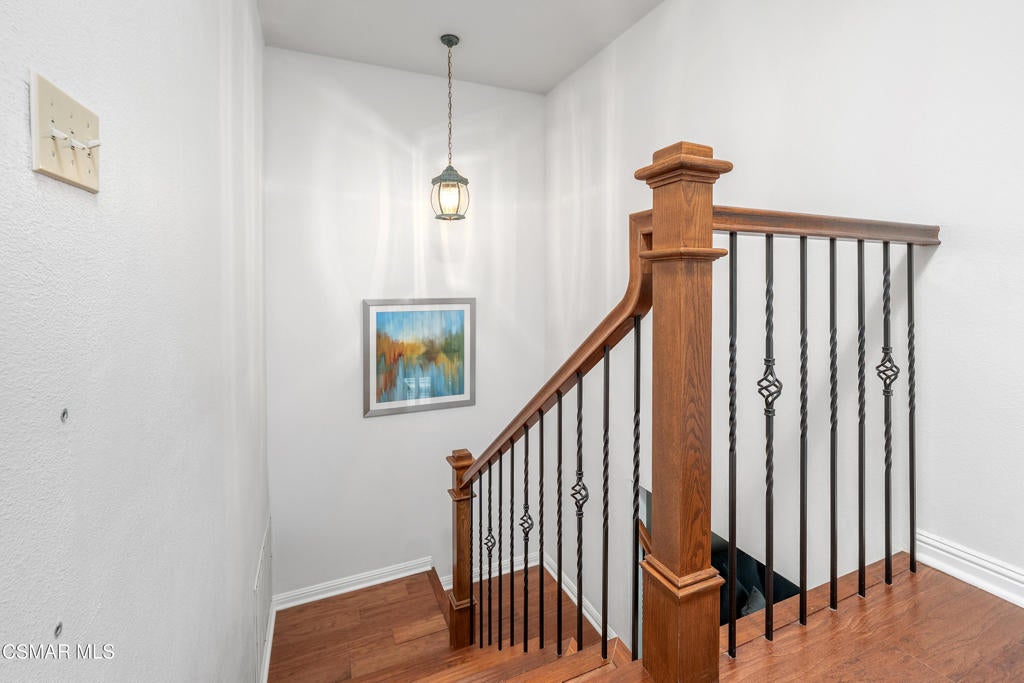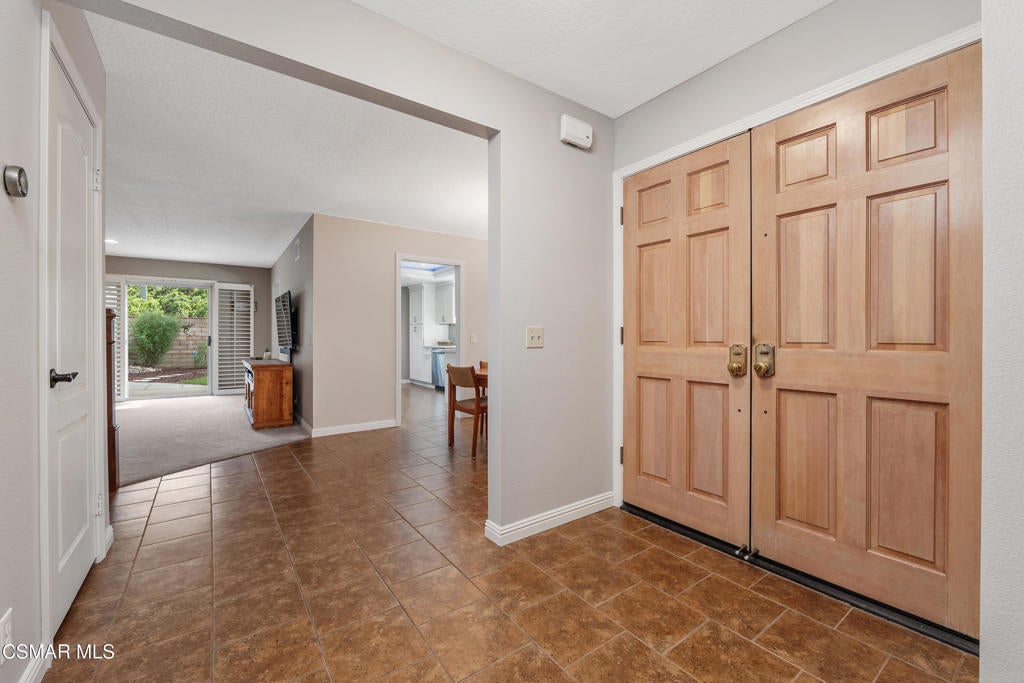 A rare opportunity to live in the coveted community of Oakview Gardens, located in the heart of Agoura Hills. With 3 bedrooms and 2.5 baths, spanning 2009 sq. ft., this lovely home has been meticulously cared for and is in pristine, move-in condition. The end unit location offers privacy and picturesque views of the surrounding mountains. You will feel like you are entering a single-family property when you walk through the double doors to a spacious tiled entry. The large living room has plantation shutters adorning the sliding doors that open to the beautifully landscaped rear yard. The reimagined kitchen was updated in 2021 with quartz countertops, new cabinets, enhanced lighting and stainless-steel appliances plus new windows and a greenhouse window over the sink. A delightful breakfast nook with bay windows overlooking the yard will be your favorite spot to dine. Adjacent to the kitchen and entry, is the dining room that has triple windows with plantation shutters, inviting sunlight to bathe the room with natural light. Relax in the versatile family room that is enhanced by a charming brick fireplace and engineered wood floors. With direct access to the two car garage, this room would also make an ideal home office. The garage is equipped with lots of storage cabinets and 220 wiring. Completing the main floor living spaces is a guest bath that has a convenient space for the washer and dryer. As you ascend to the upper level, you will appreciate the tastefully redone staircase with wrought-iron accents and engineered wood stairs. The primary suite offers privacy and views of the yard and neighboring trees. A walk-in closet can also be found. The spacious primary bath has dual sinks set in a counter with ample space for all your needs. A separate toilet area offers comfort and privacy. The two, light and bright secondary bedrooms are generously sized. Ceiling fans in all bedrooms. This popular neighborhood offers a community pool and spa with manicured grounds and breathtaking views of Lady Face Mountain. Located within the prestigious Las Virgenes School District. Close to parks, shopping and restaurants plus easy freeway access. Don't miss this opportunity to live in wonderful Agoura Hills and enjoy the many amenities the Conejo Valley has to offer.