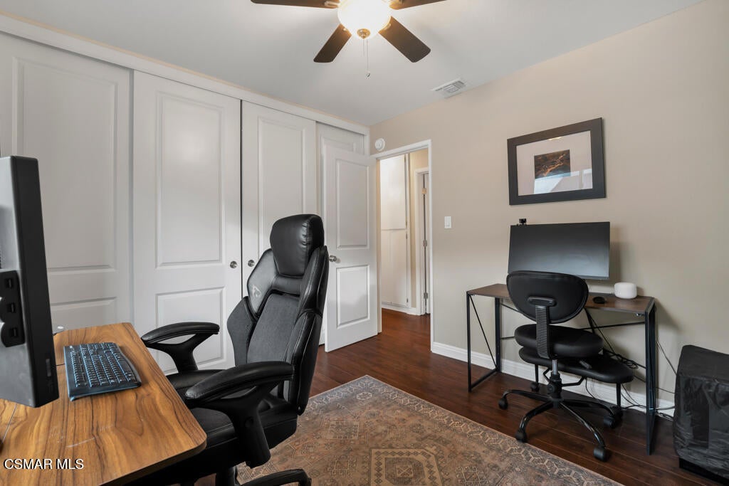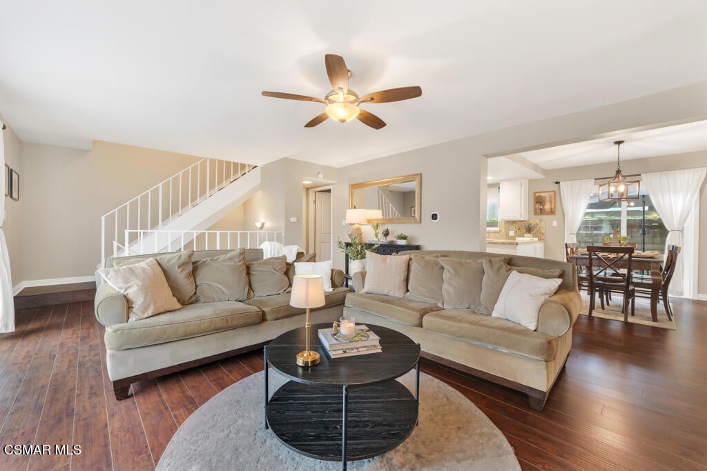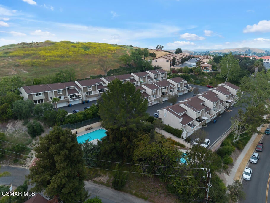 Charming tri-level townhome in an unbeatable Conejo Valley location! Moments from top-rated restaurants, microbreweries, pubs, and coffee houses, and just minutes from some of Southern California's best hiking trails, Los Robles Public Golf Course, and both major shopping malls. Move-in ready and thoughtfully upgraded throughout.The main level features an open-concept living and dining area anchored by a corner fireplace, balcony, modern kitchen, and an adjacent patio at street level with a private gate for easy access. A conveniently located half bath doubles as the laundry room.Upstairs, the spacious primary suite boasts beautiful views, two generous closets, and a private ensuite bath. Two additional bedrooms share a well-appointed hall bathroom.Upgrades include laminate wood floors throughout, newer dual-paned windows, newer HVAC, solid-core panel doors, and new closet doors in all three bedrooms. Abundant storage throughout, plus an attached two-car garage.