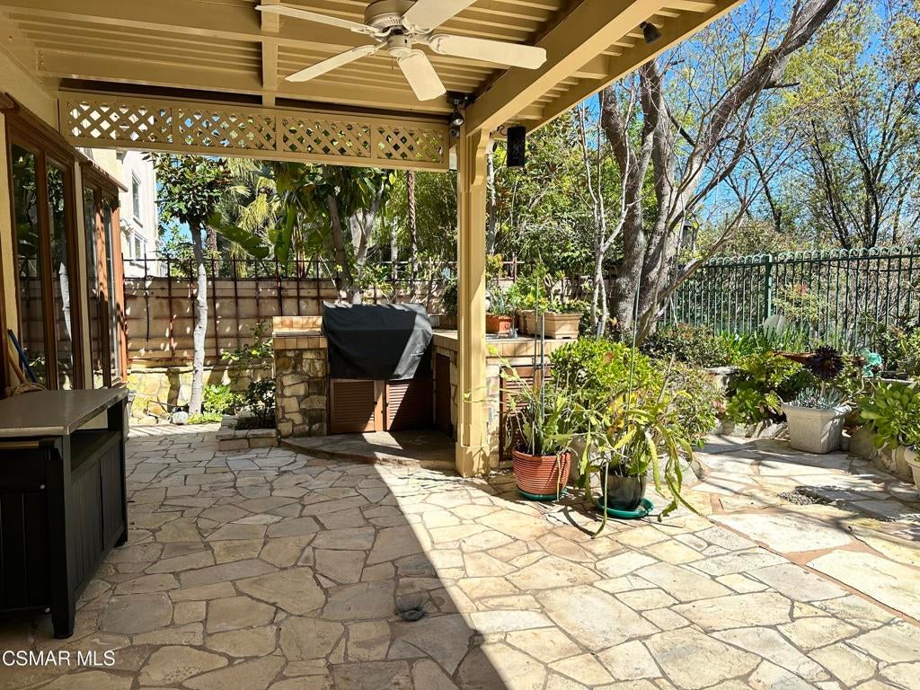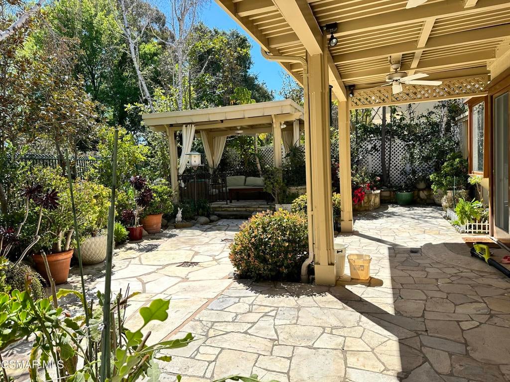 Best value in the prestigious guard-gated community of Bellagio, this beautifully maintained Mediterranean-style home offers 4 bedrooms, 4.5 baths, and approximately 3,663 square feet of elegant living space. Hardwood floors, crown moldings, soaring cathedral ceilings, and stained-glass accents create a warm and timeless feel throughout.The spacious kitchen features granite countertops, a center island, and walk-in pantry, opening to an inviting family room with fireplace, custom built-ins, and French doors to the private backyard. Upstairs, the luxurious primary suite includes a fireplace, oversized walk-in closet, and private balcony overlooking the beautifully landscaped grounds.Enjoy seamless indoor-outdoor living with a built-in BBQ center and shaded pergola, ideal for entertaining or relaxing. Additional highlights include a 3-car garage and access to the award-winning Las Virgenes School District. Exceptional lease opportunity in one of Bellagio's most sought-after settings.