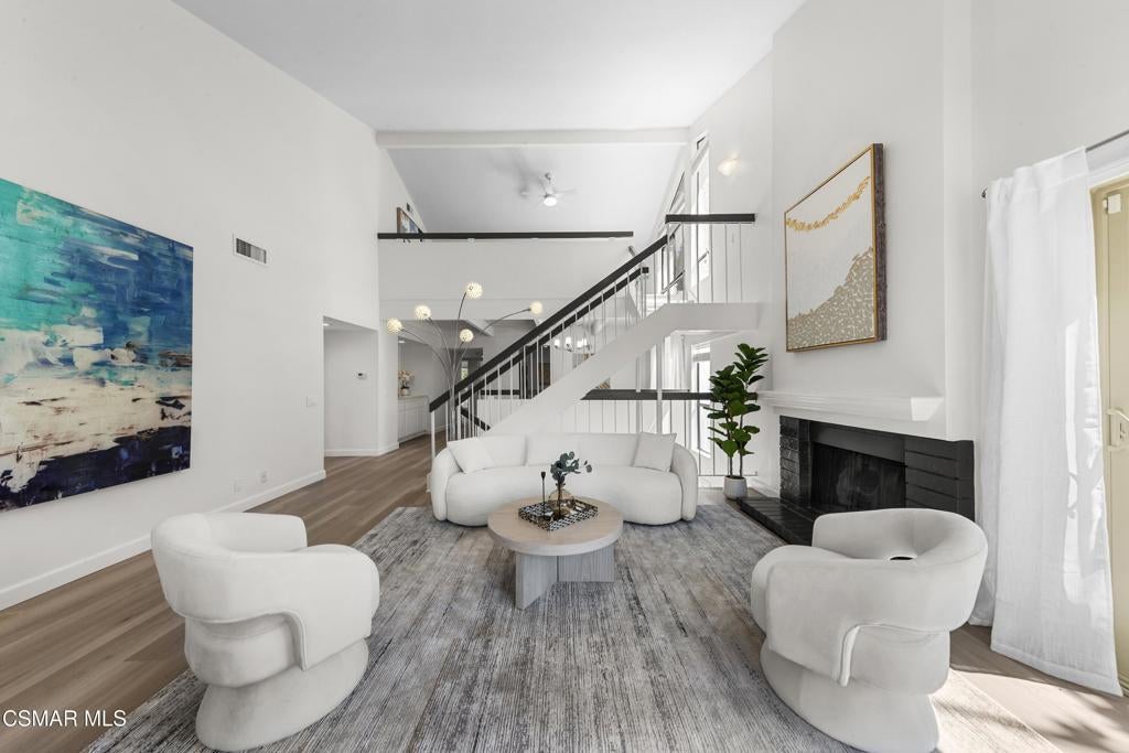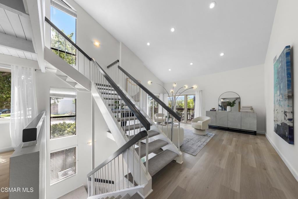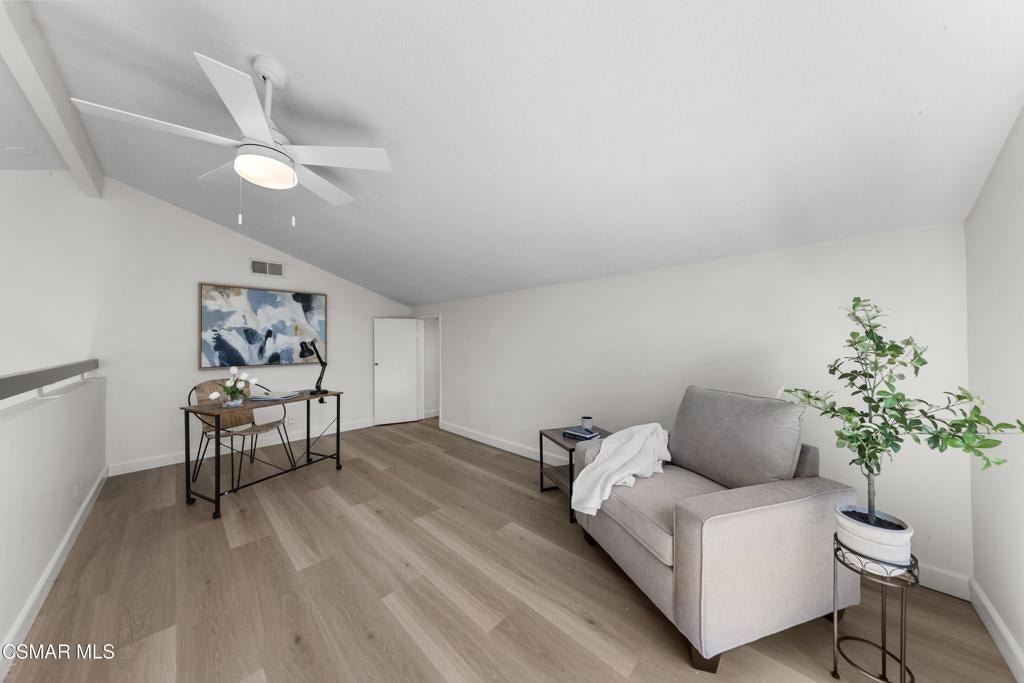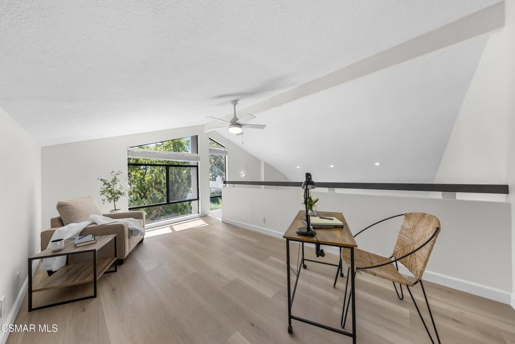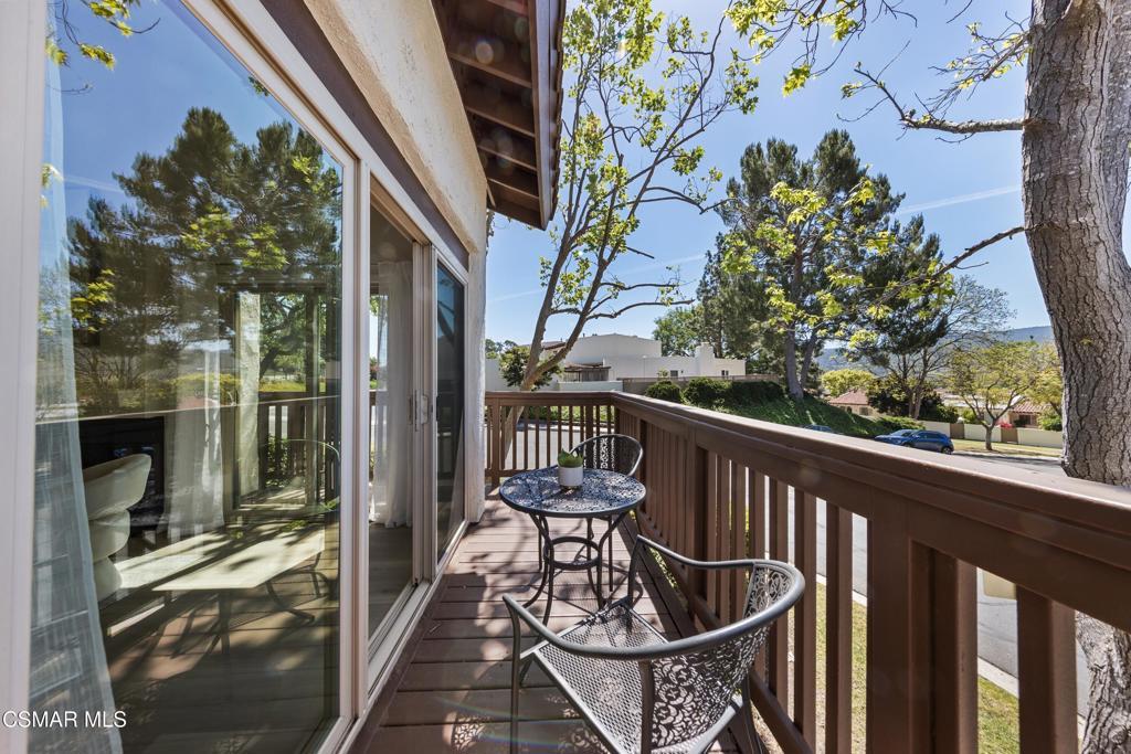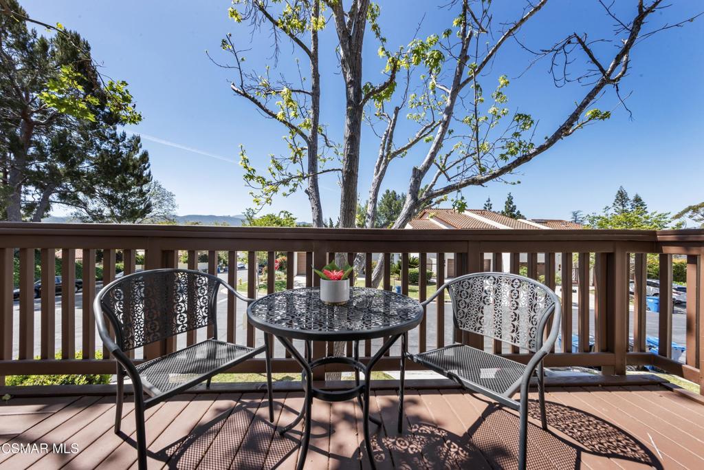 Welcome to this beautifully updated 3-bedroom, 2-bath Racquet Club Villas townhome, filled with natural light and situated in a desirable corner location. With over 2,000 SF of living space, this home features a wrap-around balcony, vaulted ceilings for a bright, open feel, complemented by new luxury vinyl plank flooring, fresh paint, newly carpeted stairs, recessed lighting in the living room and an updated kitchen, along with newer dual-pane windows and sliders, plus a newer water heater for added efficiency. The primary bedroom has an updated ensuite bath with dual closets. Down the hall you'll find a second bathroom, which is shared by 2 additional bedrooms with sliders that open to the freshly landscaped backyard. As a bonus, patio furniture is included with the home. A spacious loft offers additional flexibility (e.g. office, playroom, exercise space, hobby area) and includes a well-lit bonus storage closet with access to the attic. Even the garage has been thoughtfully upgraded with a new door and motor, freshly epoxied floors, and custom-built storage. Meticulously maintained and move-in ready, this exceptional home with mountain views is one you won't want to miss. Conveniently located in the heart of Thousand Oaks, which is known for being one of the safest cities nationwide (per Fox LA), you're just minutes from shopping, dining, scenic hiking trails, the Conejo Valley Botanical Gardens, The Oaks Mall, and Janss Marketplace. Come make this gem yours!