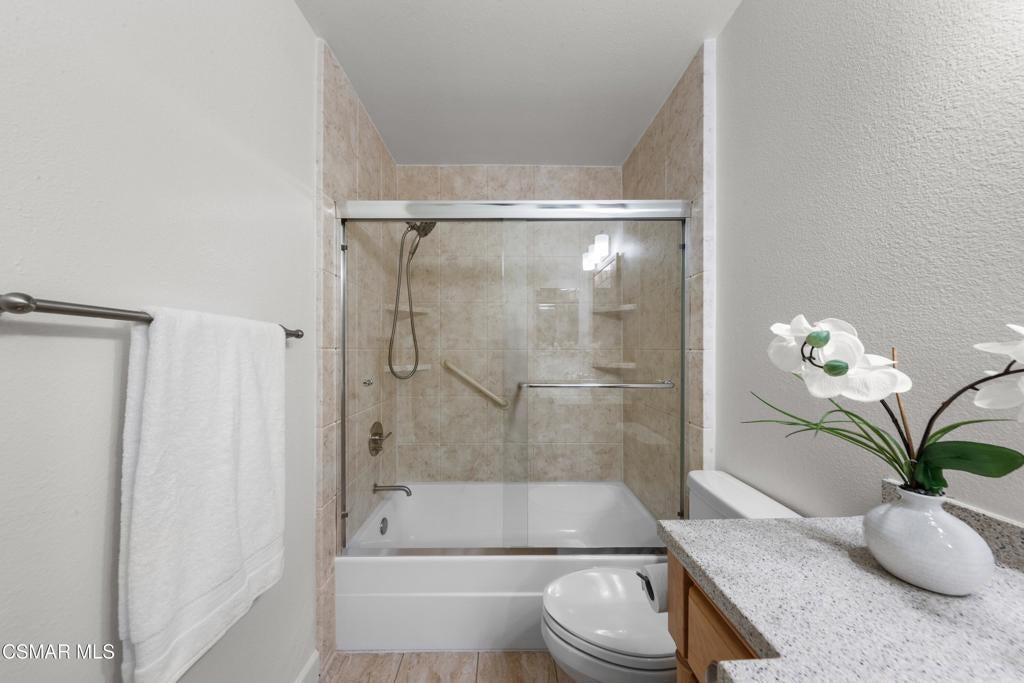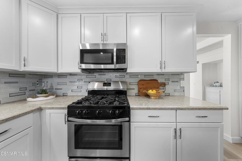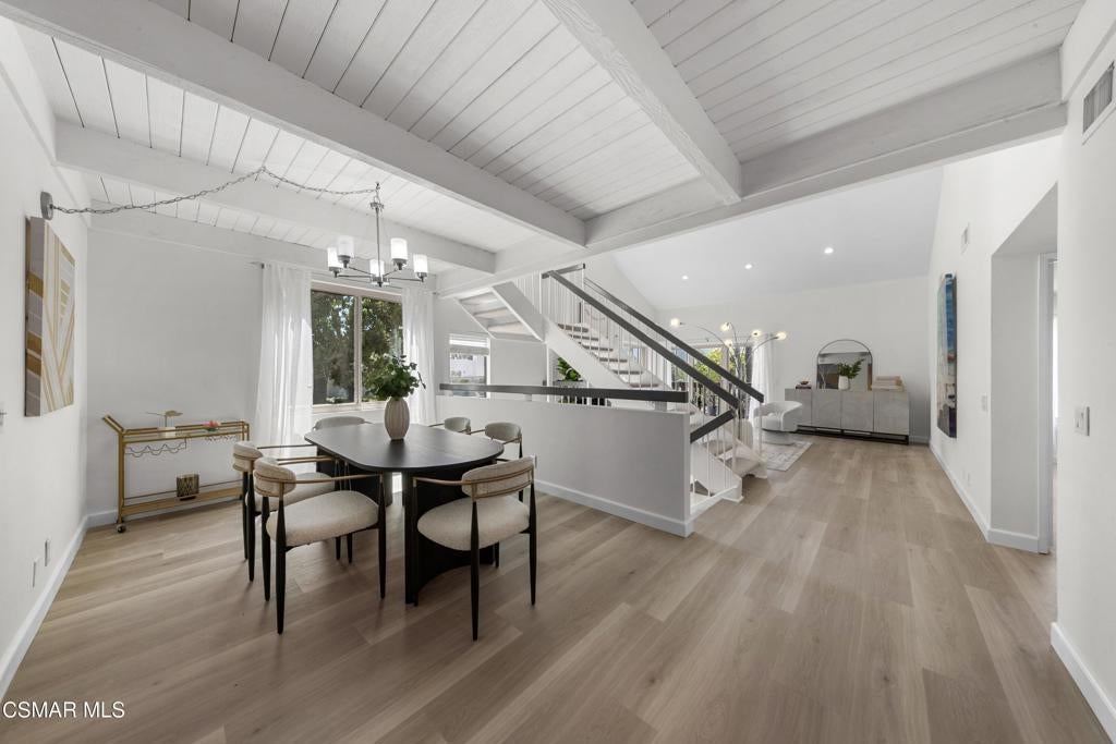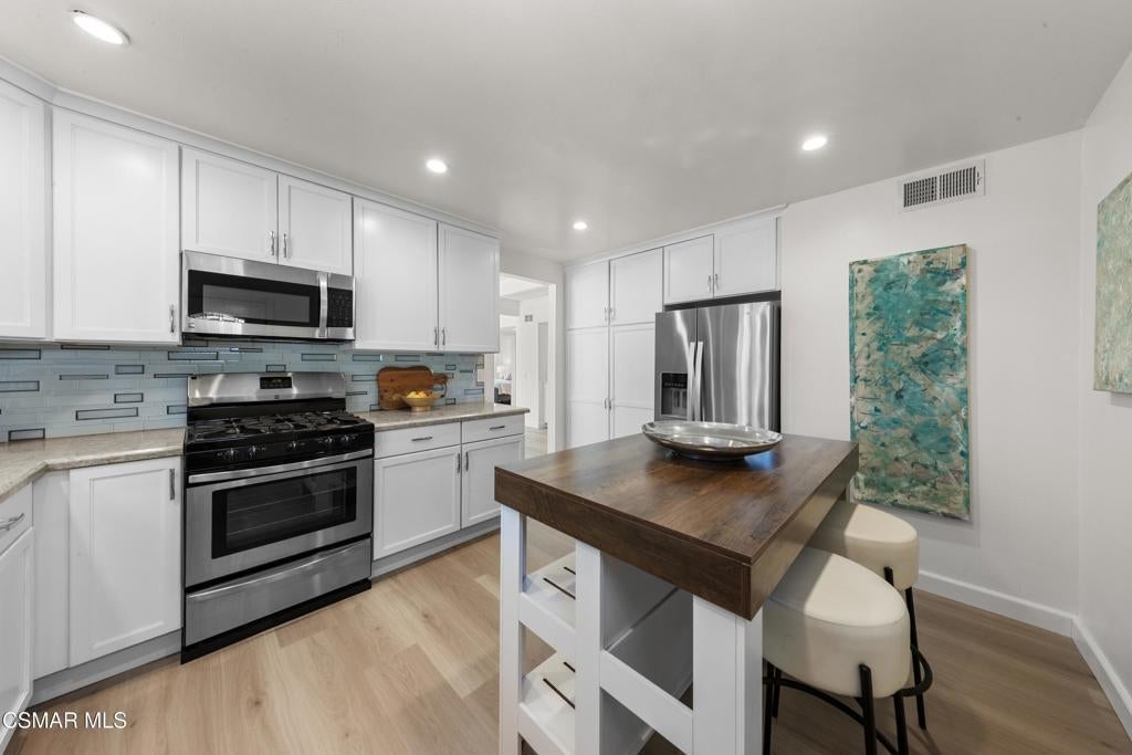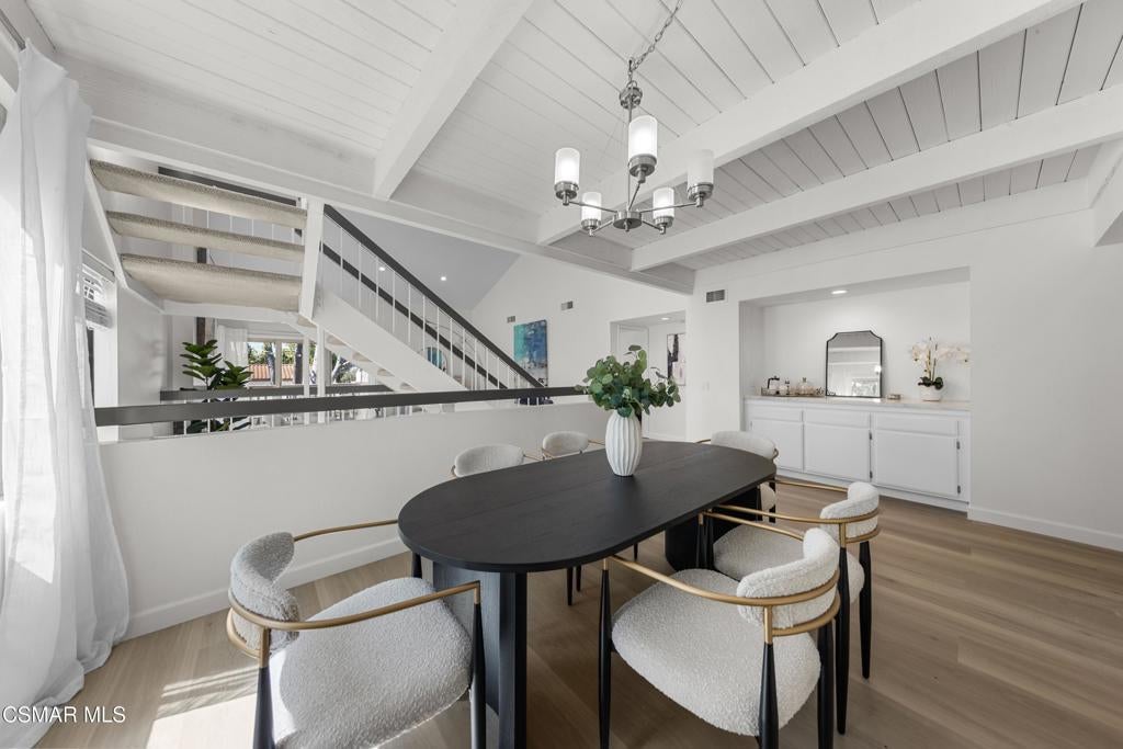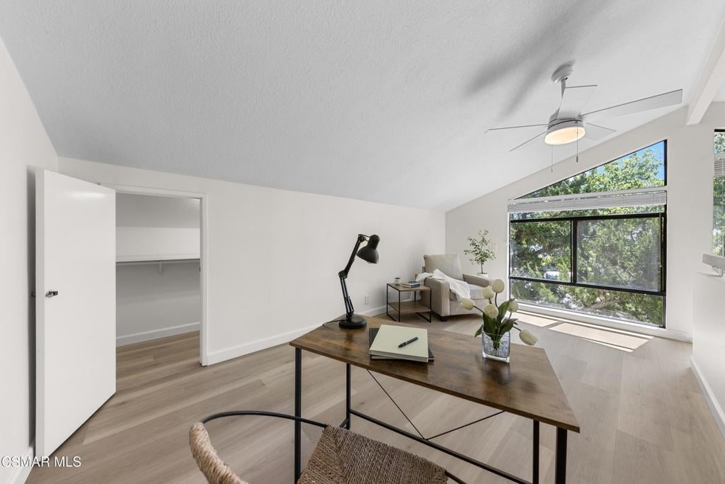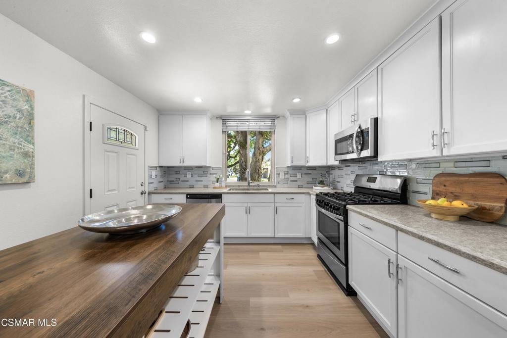 Welcome to this beautifully updated 3-bedroom, 2-bath Racquet Club Villas townhome, filled with natural light and situated in a desirable corner location. With over 2,000 SF of living space, this home features a wrap-around balcony, vaulted ceilings for a bright, open feel, complemented by new luxury vinyl plank flooring, fresh paint, newly carpeted stairs, recessed lighting in the living room and an updated kitchen, along with newer dual-pane windows and sliders, plus a newer water heater for added efficiency. The primary bedroom has an updated ensuite bath with dual closets. Down the hall you'll find a second bathroom, which is shared by 2 additional bedrooms with sliders that open to the freshly landscaped backyard. As a bonus, patio furniture is included with the home. A spacious loft offers additional flexibility (e.g. office, playroom, exercise space, hobby area) and includes a well-lit bonus storage closet with access to the attic. Even the garage has been thoughtfully upgraded with a new door and motor, freshly epoxied floors, and custom-built storage. Meticulously maintained and move-in ready, this exceptional home with mountain views is one you won't want to miss. Conveniently located in the heart of Thousand Oaks, which is known for being one of the safest cities nationwide (per Fox LA), you're just minutes from shopping, dining, scenic hiking trails, the Conejo Valley Botanical Gardens, The Oaks Mall, and Janss Marketplace. Come make this gem yours!