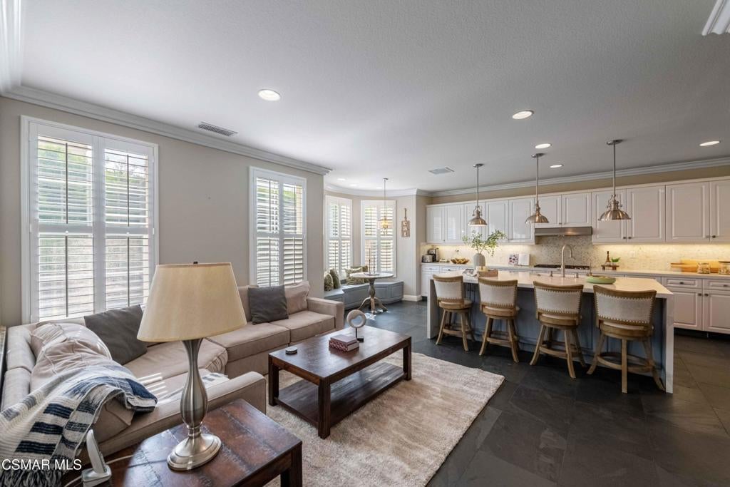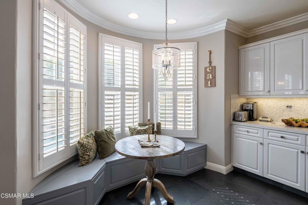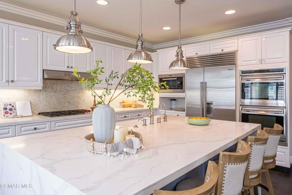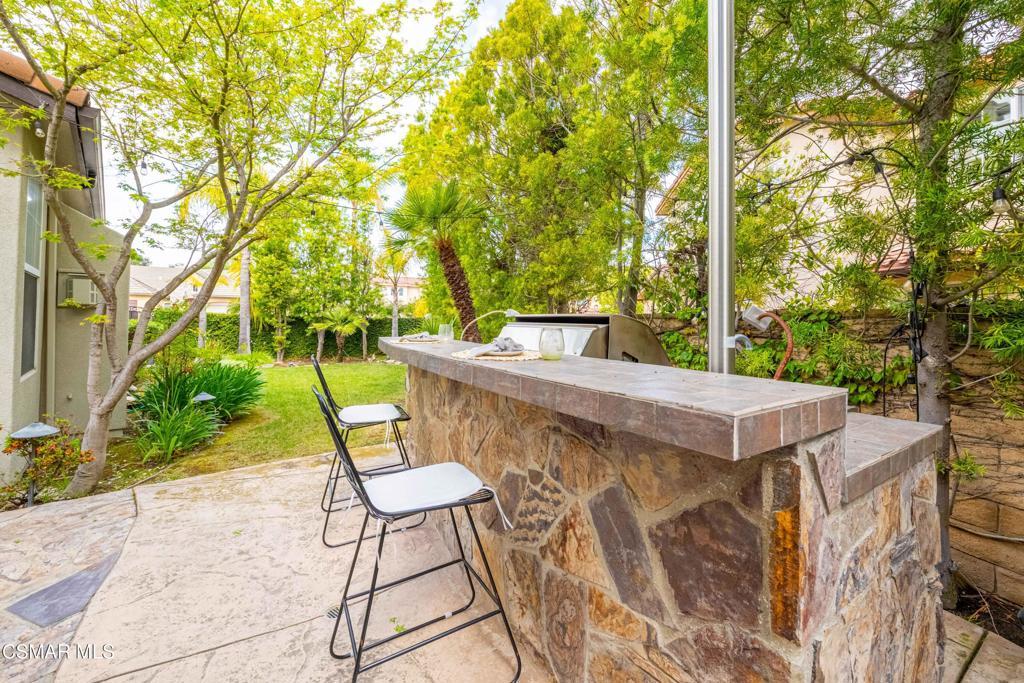 Welcome to 3140 Eaglewood Ave, an exceptional residence located on a cul-de-sac street within the prestigious 24-hour guard-gated community of Woodridge Estates in Thousand Oaks. Offering approximately 4,100 square feet of thoughtfully designed living space, this 5-bedroom, 5-bathroom home with a 3-car garage combines timeless architecture with modern updates, creating a home that is both elegant and highly functional.Upon entry, you're greeted by soaring ceilings and an abundance of natural light, complemented by custom window shutters found throughout the home, enhancing both style and privacy. The open and inviting floor plan is designed to accommodate a variety of lifestyles, featuring a desirable main-level bedroom and multiple living and entertaining spaces. A formal dining room provides a refined setting for gatherings, while the beautifully remodeled kitchen serves as the heart of the home, complete with a large center island with waterfall quartz countertops, farmhouse sink, Sub-Zero Refrigerator, Wolf double ovens and cooktop, a breakfast counter, and a charming breakfast nook.Upstairs, an expansive bonus room offers versatility as a media room, game room, or additional family living space. On the lower level, a wine cellar closet adds a unique and elevated touch, perfect for collectors and entertainers alike. Thoughtful upgrades and custom details are carried throughout, creating a cohesive and polished living experience.The backyard is designed for both relaxation and entertaining, featuring a private pool and spa, along with a built-in BBQ area--perfect for enjoying Southern California's seamless indoor-outdoor lifestyle.Set within one of Thousand Oaks' most sought-after gated communities, this home offers privacy, security, and a true sense of community, all while being conveniently located near top-rated schools, shopping, dining, and scenic outdoor spaces.