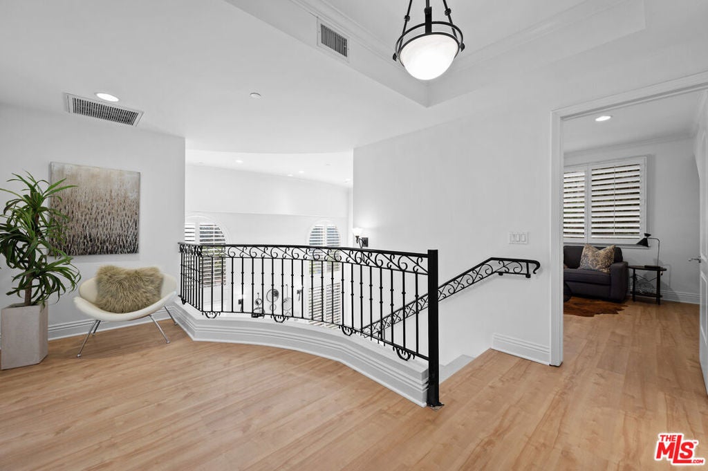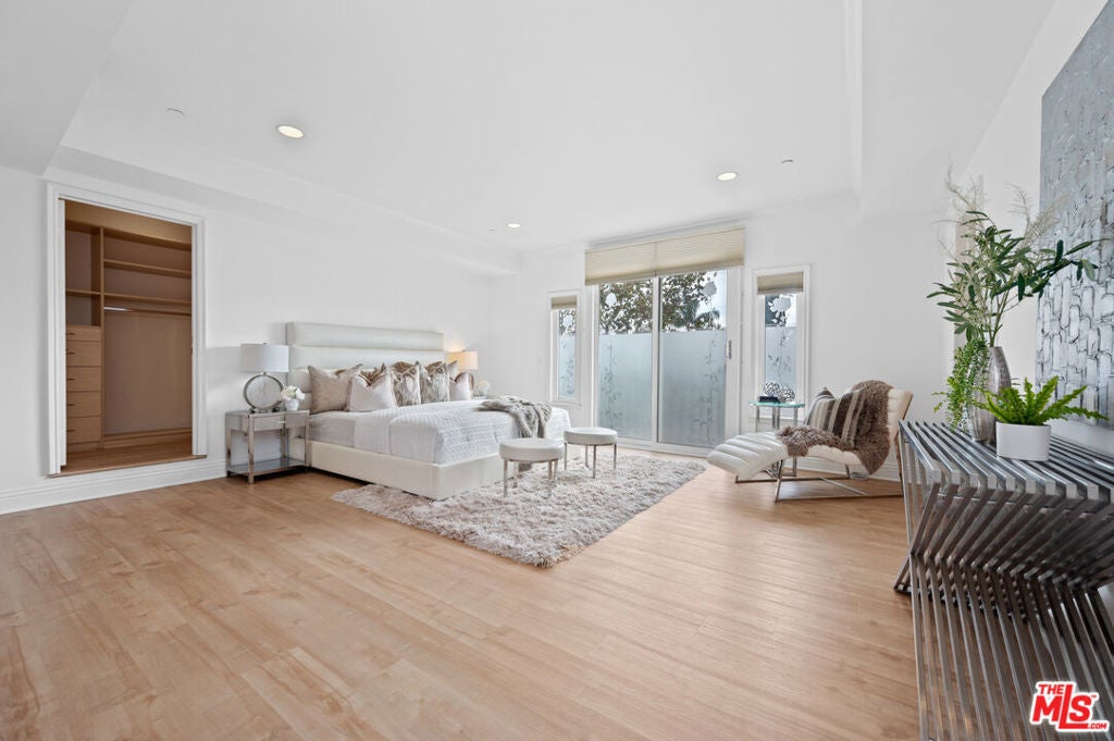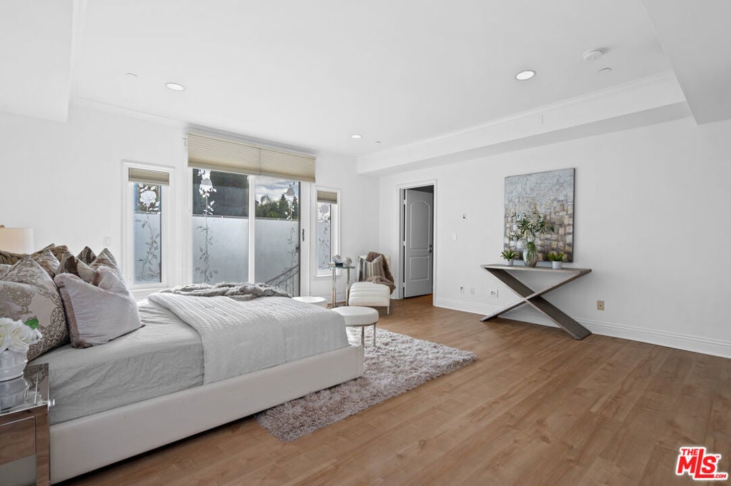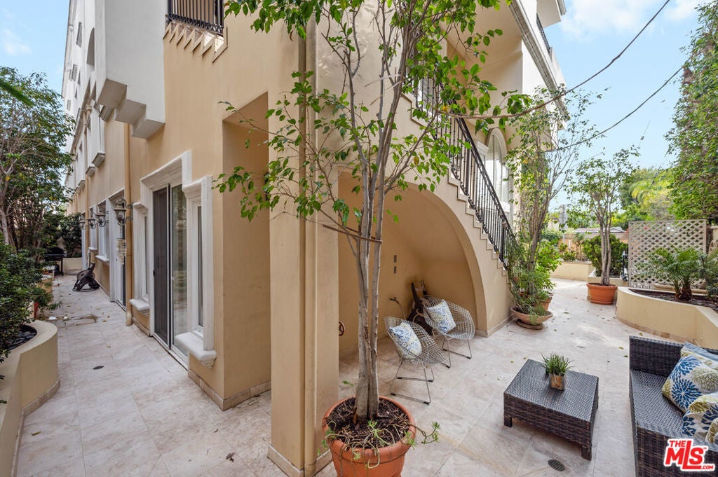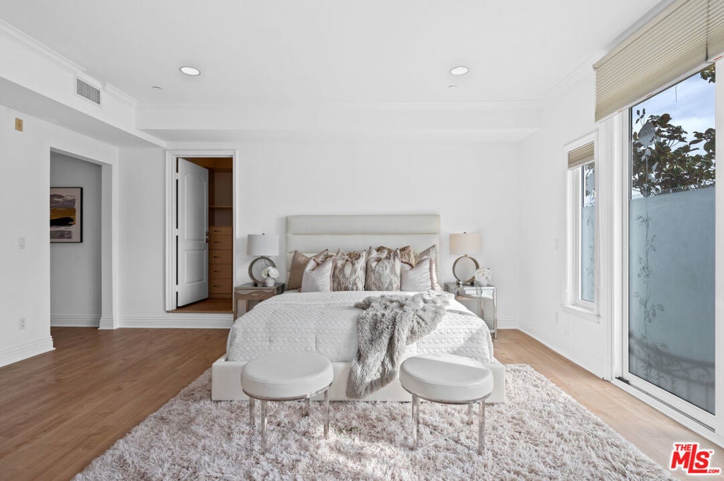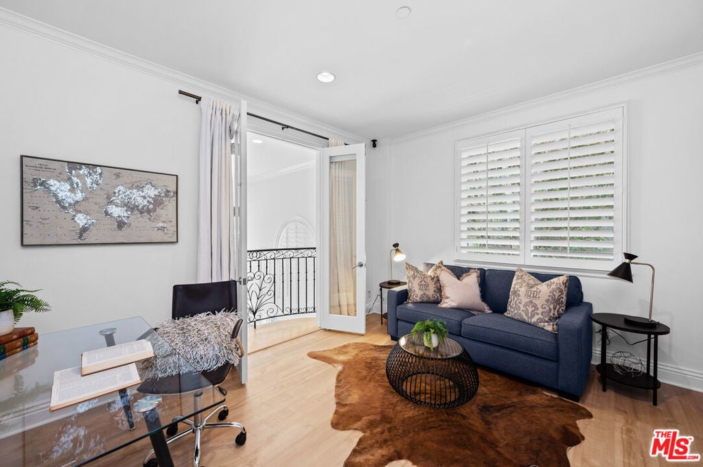 Centrally located in a prime Westwood Neighborhood, this light-filled, spacious luxury home offers an exceptional floor plan that provides both fantastic entertaining as well as sophisticated private living spaces throughout. Upon entering the home, you are greeted with the natural light strewn entryway that opens to the voluminous and highly vaulted living room, elegant formal dining room, super cozy family room, all with access to the gourmet kitchen, fantastic pantry, breakfast room area, as well as a flex-space downstairs bedroom that readily functions as an en-suite guest room and/or private office complete with its own private access. Gorgeous, beautiful redone hardwood floors throughout. The entertaining spaces all open to the deeded wrap around exterior patio, with ample space for sitting areas, play space and al fresco living. The private upstairs living spaces are gracious and well appointed. As you climb the winding staircase you come to the first bedroom that is charmed-filled and made complete with its own "Romeo and Juliet" balcony overlooking the living room. The second bedroom is large, quiet and has a walk-in closet. Moving towards the primary bedroom one immediately recognizes the oversized, generously large and spacious bedroom complete with two huge walk-in closets, additional mirrored closet, and the incredible tree-top view French door/windows. The well-appointed primary bathroom is inviting and luxurious. Additionally, the home shares no common wall and offers tremendous storage throughout, elevator access to the building. Extra-large private 2 car garage behind security gate with plenty of storage space. Within the much sought-after Westwood Charter Elementary boundaries, UCLA, Westfield Century City, Beverly Hills, Google Campus, EXPO and the nearby incredible food scene and restaurants.