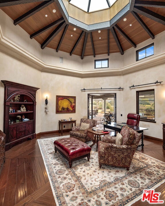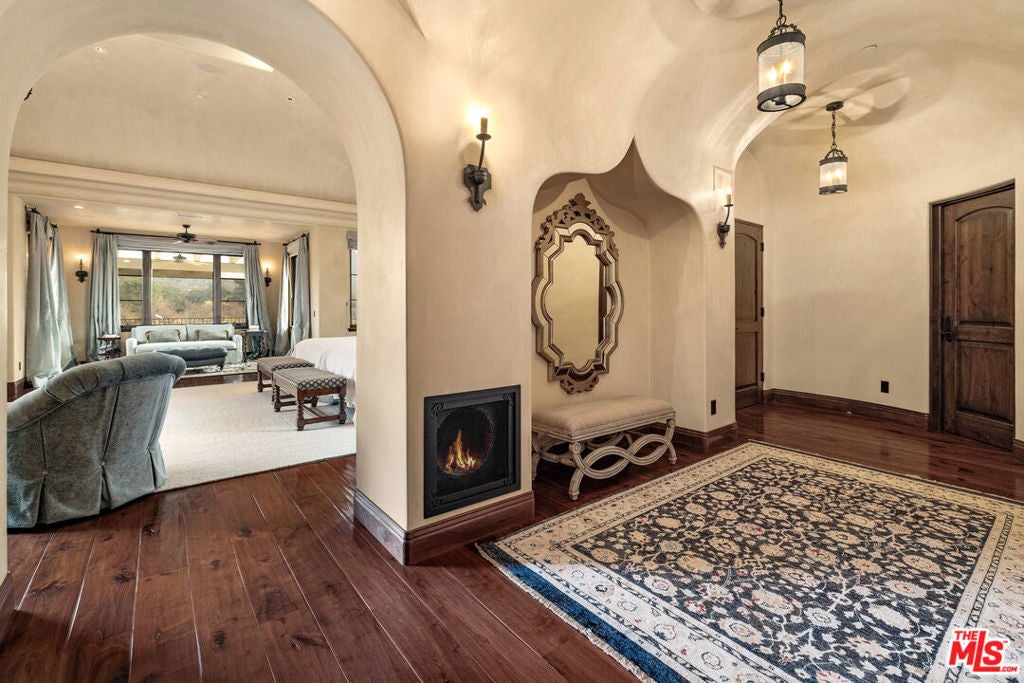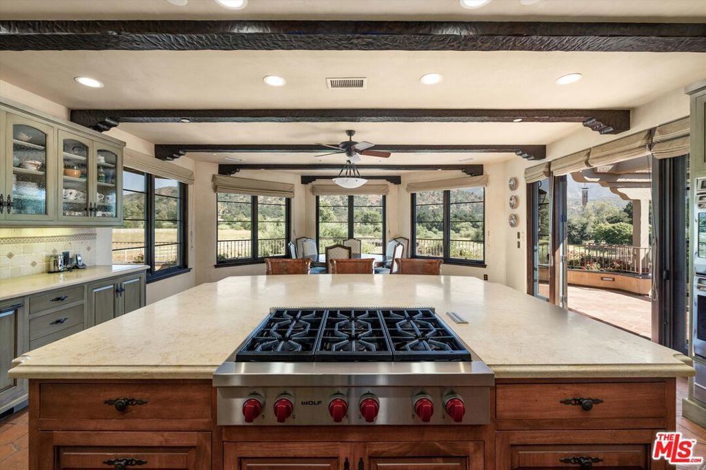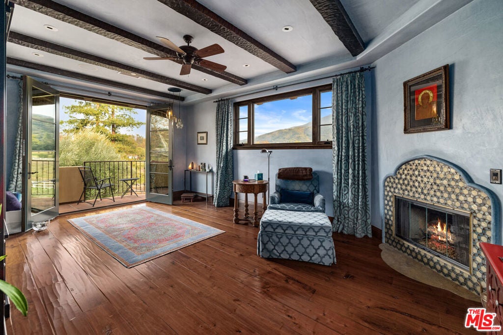 Magnificent Ojai estate nestled on approximately 3.8 acres, offering sweeping views of the Topa Topas, masterfully merges timeless old-world aesthetics with contemporary California artistry. This exquisite Mediterranean-style residencedesigned by acclaimed architect Marc Whitmanis a rare offering that combines privacy, elegance, and craftsmanship at the highest level. Curved lines, arched doorways, and cathedral ceilings set a tone of quiet grandeur. Inside, every detail has been meticulously curatedfrom solid walnut flooring and bespoke cabinetry to imported Spanish tiles, hand-forged chandeliers, and custom windows and hardware. The expansive living room, featuring multiple seating areas, a fireplace, and French doors, opens to a private library and a sunlit patio, perfect for indoor-outdoor living. The gourmet kitchen, with top-tier appliances and panoramic views, is both a culinary haven and a gathering place. The primary suite is a sanctuary with two sitting areas, a fireplace, double doors to a private terrace, stunning mountain vistas, generous closets, and a spa-inspired bathroom. Three guest bedrooms, each with ensuite bathrooms and access to patios and gardens, offer ultimate comfort and privacy. A fifth bedroom occupies the top levelcomplete with a loft, fireplace, and two balconiesideally suited for an office, studio, guest retreat, or live-in support. With multiple bedroom suites and separate living zones, the estate offers exceptional flexibility for multi-generational living or those seeking refined personal space. The top-level suite also serves as a unique option for a private executive office or creative retreat. Seamless transitions from the interior to the outdoorsthrough French doors and strategically placed terracesextend the living experience to sunlit decks, lush gardens, and an inviting pool area. Whether envisioned as a full-time residence, a luxurious second home, or a legacy investment, this estate is a rare opportunity to own an architectural masterpiece in one of Ojai's most exclusive enclaves.