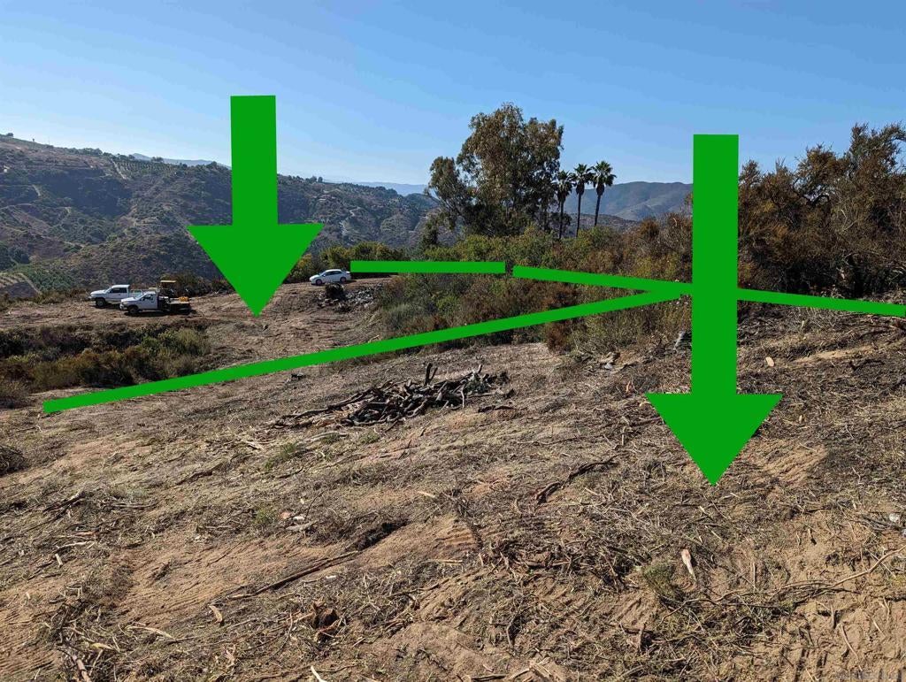 The lot is 5.34 acres! Build your custom home within beautiful Pauma Valley. This stunning private land for sale in Valley Center. Quality, panoramic view lots in neighborhood of fine homes. This is slopping lots that would be great for avocado trees or flowers. This legal lot consists of two APNs: 13014105-00 (2.05 acre), 13014106-00 (3.29 acre). Both lots has sufficient for the construction area at the top with following slope that will be great for the trees, plants and trails. Stunning views onto the valley, easy access, continuous fresh breeze, Palomar Mountain vistas.City water, Electricity and Fire hydrant at cul-de-sac of Pauma Vista Drive, it is very easy to pull to the property. Fire Hydrant will eliminate the necessity to build own fire suppression upon fire code. Zoning code – A70, Residential: Single Detached (1 dwelling unit per lot). Mixed Residential/Nonresidential, ADUs allowed. Located only minutes to Highway 15 and equally convenient to Valley Center town, golf courses, excellent schools, wineries, and Casinos this is a must-see lot. This property is raw land /un-developed. The easement is shared with one other parcel.
