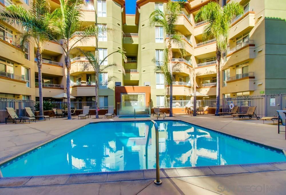 Welcome home to this FULLY FURNISHED, larger 1 bed / 1 bath, 721 sqft unit in the highly sought-after community of Piazza Palermo located in the charming Little Italy neighborhood. Piazza Palermo is a 6-story, mid-rise, secure building situated in a prime location that can't be beaten. You will appreciate the spacious, light, bright & airy vibe throughout this residence. A full-size kitchen with granite counters provides the perfect space to whip up culinary delights and entertain guests. This home features a stackable washer/dryer in-unit, A/C, engineered wood flooring, and a balcony to enjoy peaceful, parklike views. Building amenities include a pool, spa, fitness center, and guest parking. Walking distance to everything: the wildly popular Little Italy Farmer's Market, Waterfront Park, Seaport Village, Balboa & Petco Parks, Gaslamp Quarter, fantastic dining, cafes, bars, boutiques, and entertainment. Close proximity to the train, trolley, airport, beaches & more. Don't miss the opportunity to call this residence home - bring your suitcase and experience the true magic of Little Italy living! We welcome all Dep't of Defense (DOD) and we'd love to work with you, so if you're looking for something different, please inquire about Downtown Condo Guys other listings.
