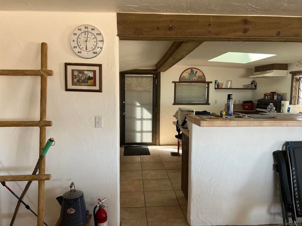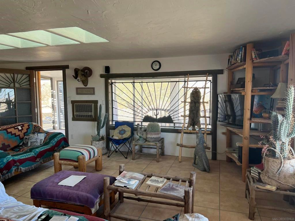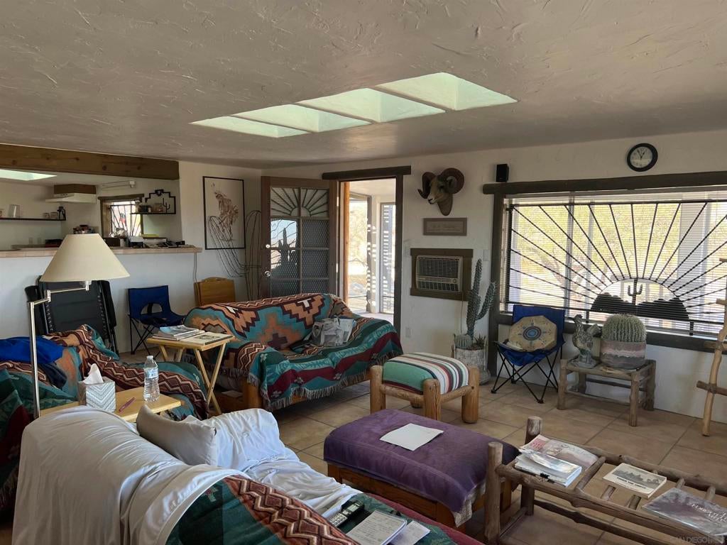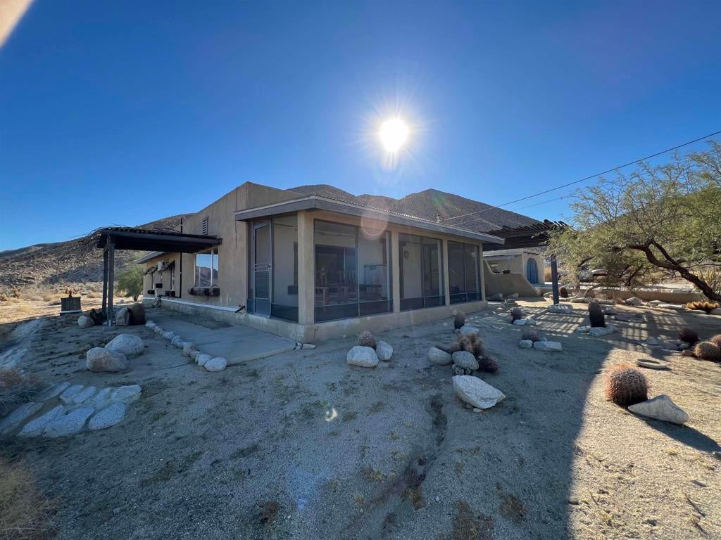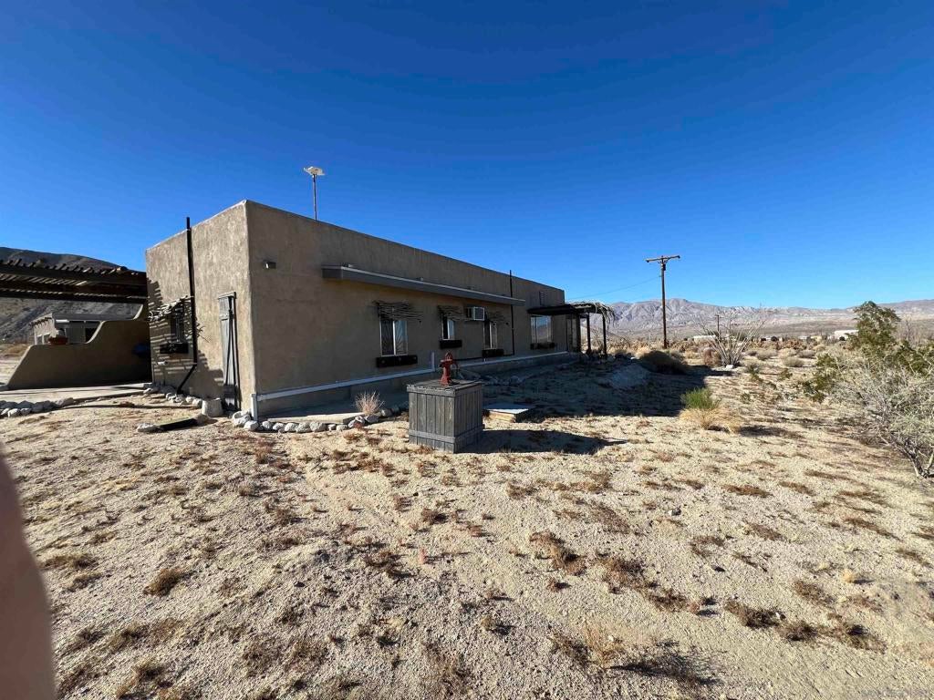 This unique 2BR 1.5 bath home built in 1954 was lovingly renovated by the seller. Property is on 5 acres with mountain views surrounding the property. Property is neat and clean and has a cement pond, screened porch, trees, storage room plus a large tandem garage. The countertops in both bathrooms and the kitchen are tile with wood accents. The home has skylights, open views, a circle driveway that goes around the garage and in front of the house. Quiet and private setting for peaceful enjoyment of the desert. Furnished and ready to use just bring your toothbrush. Nestled near the heart of the Anza-Borrego State Park lies this charming desert homestead, offering an unparalleled opportunity to live in harmony with nature while enjoying modern comforts. Situated in the historic community of Canebrake CA, the furthest extension of the Julian zip code, this property and location are steeped in history dating back to the earliest settlers in Southern California. Stargazers will fall in love with the dark skies, nature lovers will not want to leave! A nearby community center offers a gathering place for this historic homestead village which consists of approximately 90 homes, many of which are seasonally occupied.