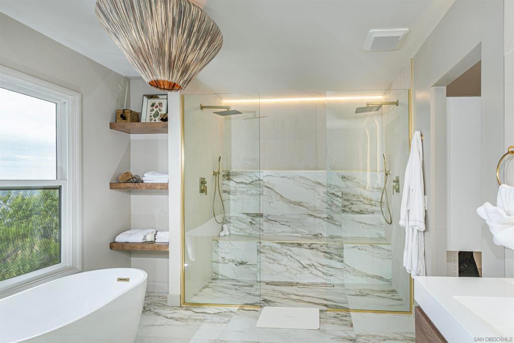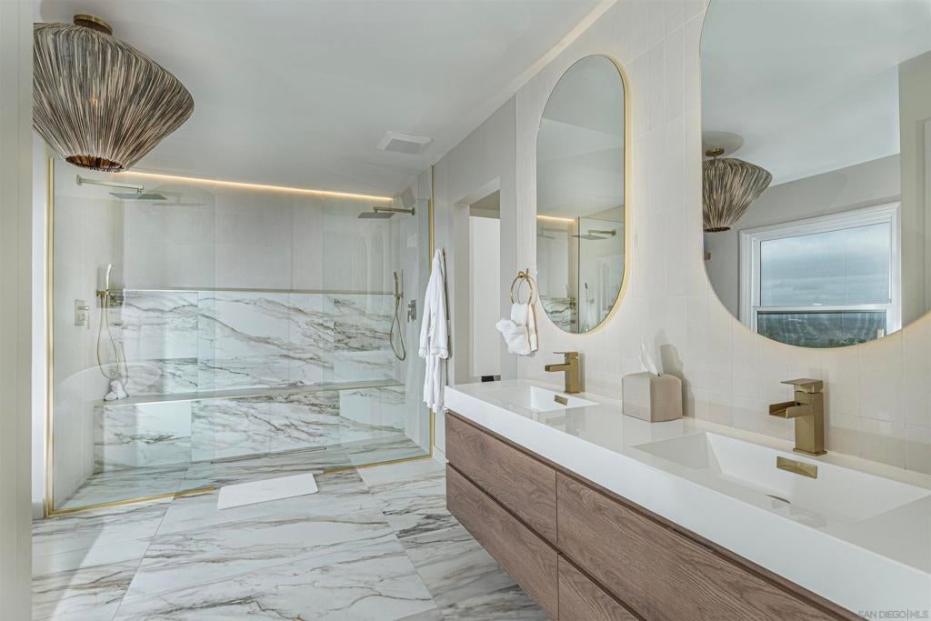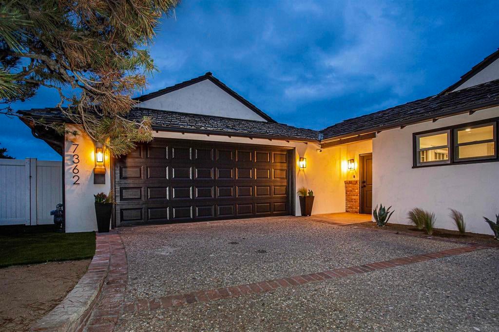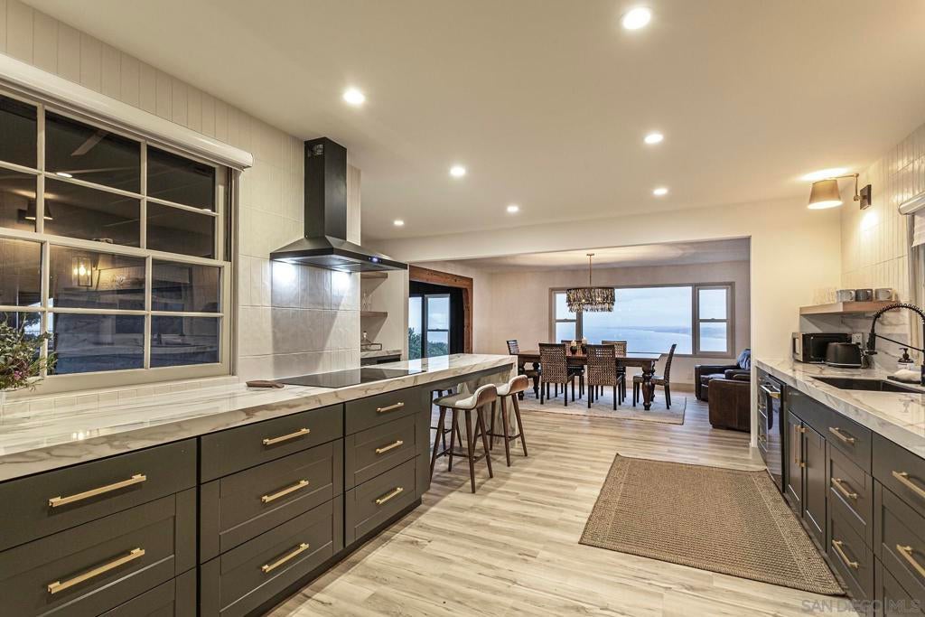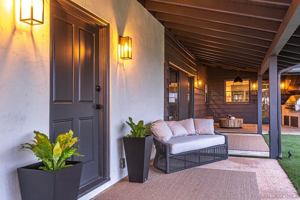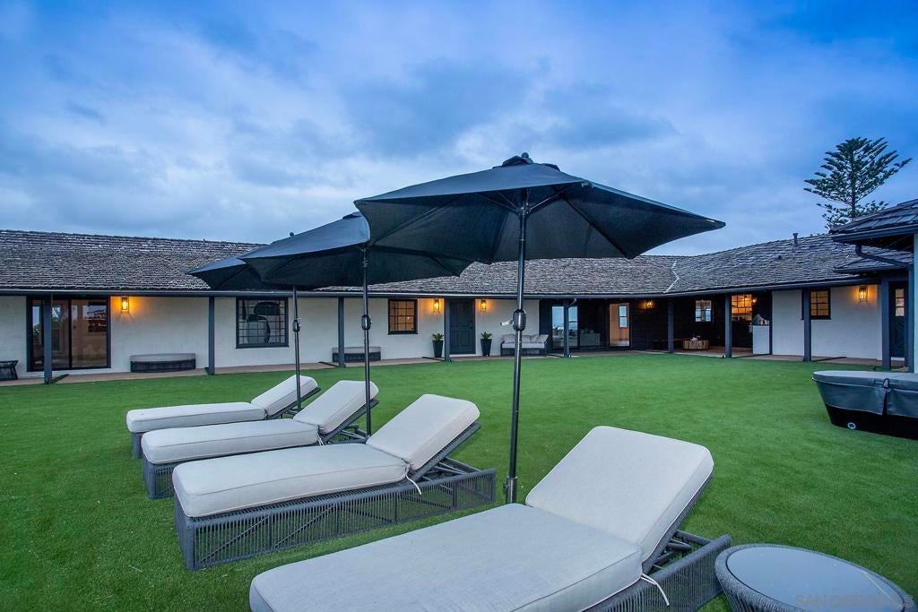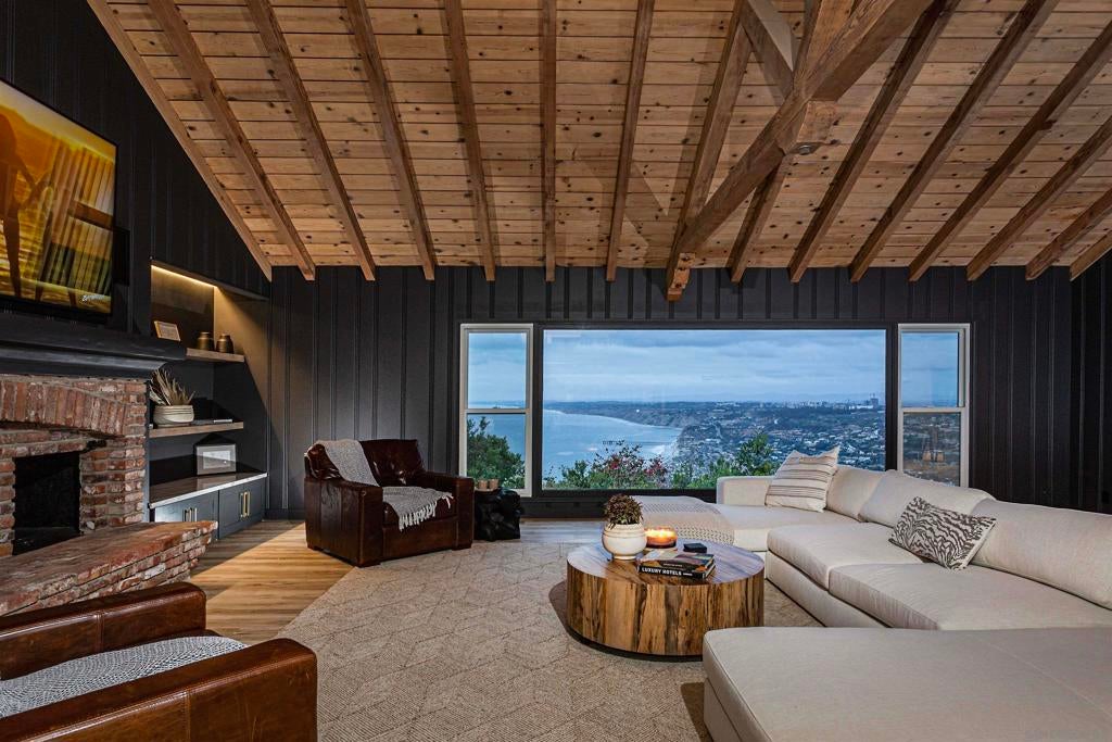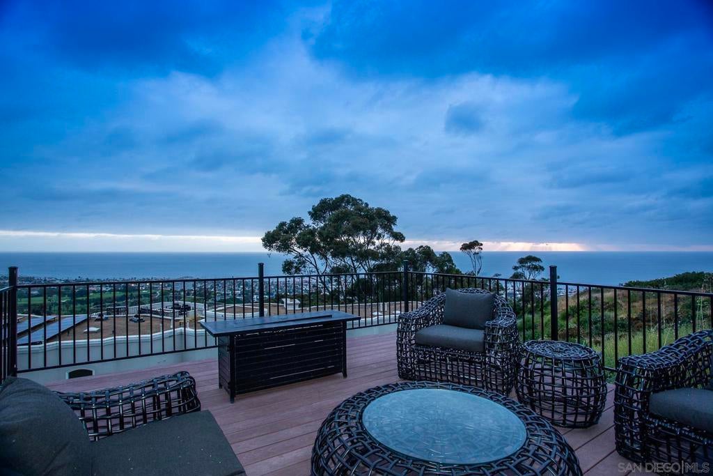 La Jolla's "King of the Hill" Stunning View property and vacation home in upper Country Club, move in ready! Fully furnished and just remodeled with mid-century modern designer finishes. Enjoy year round entertainment and unobstructed ocean views from every vantage point. Featuring, an enclosed and expansive turf yard for private parties; wellness center with cold plunge spa, sauna, sun deck, wrap around porch, BBQ and dining area. The ocean view great room opens up to the formal dining room and galley kitchen with coffee & wine bar. Three generous king-sized ensuite bedrooms with personal TV's, welcome your guests with cozy linens and sunset views. Formal powder room, laundry and mud room with 2 car garage complete this unique compound. Property abuts to the La Jolla Park, 46 acre reserve and hiking trails down to the village and beach.