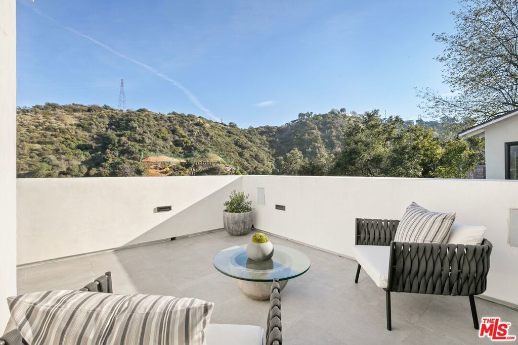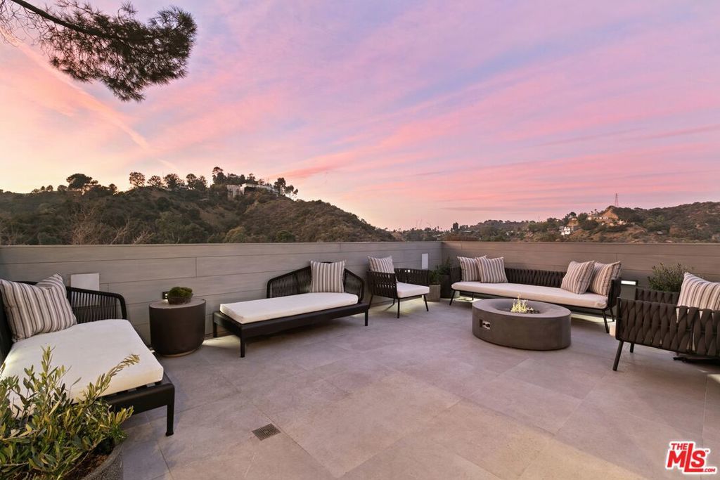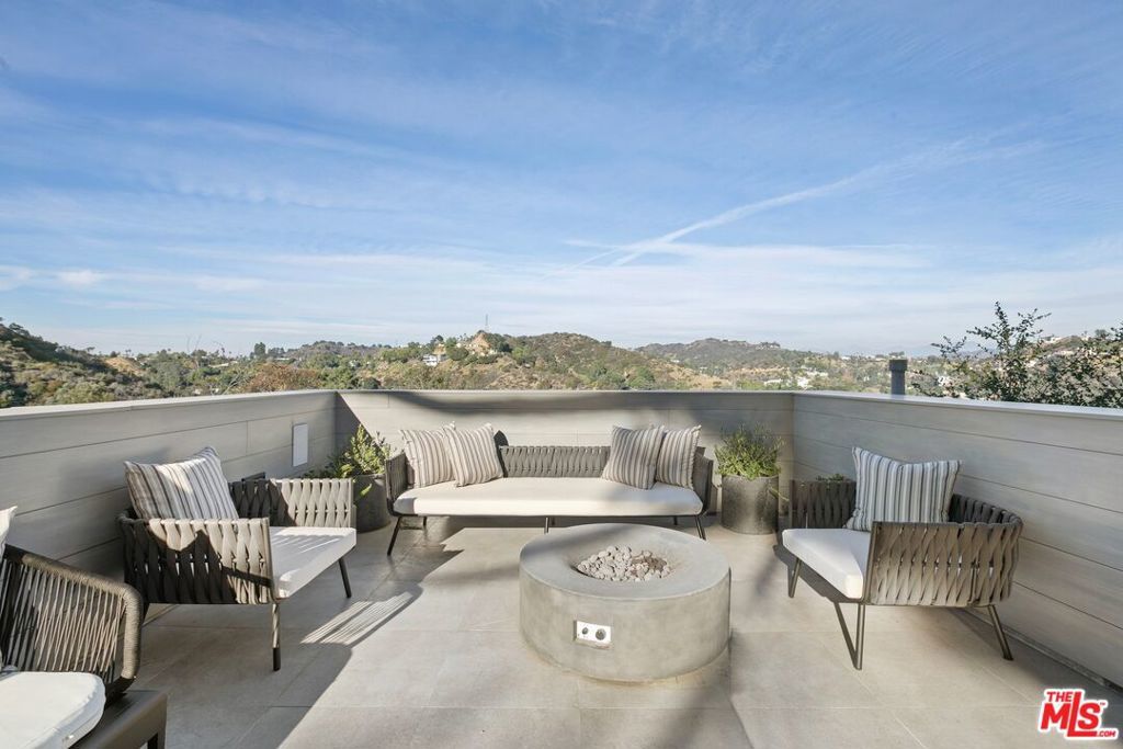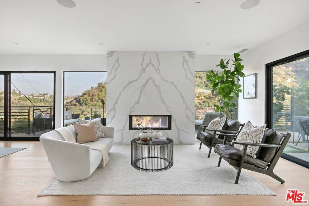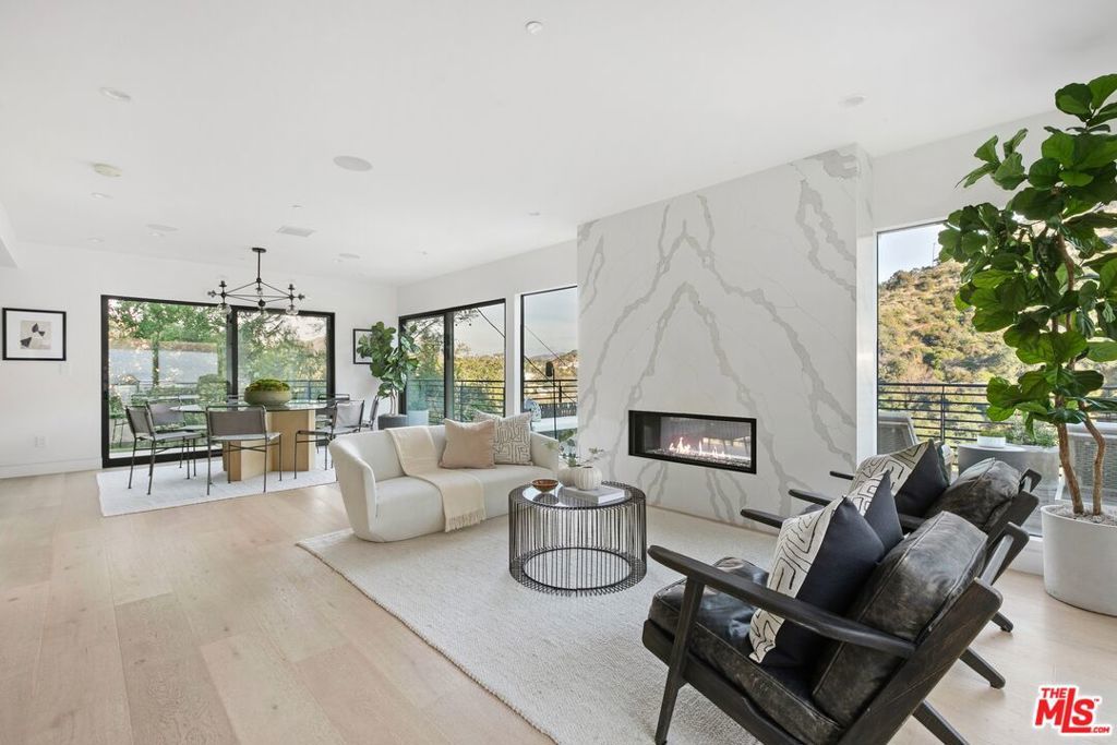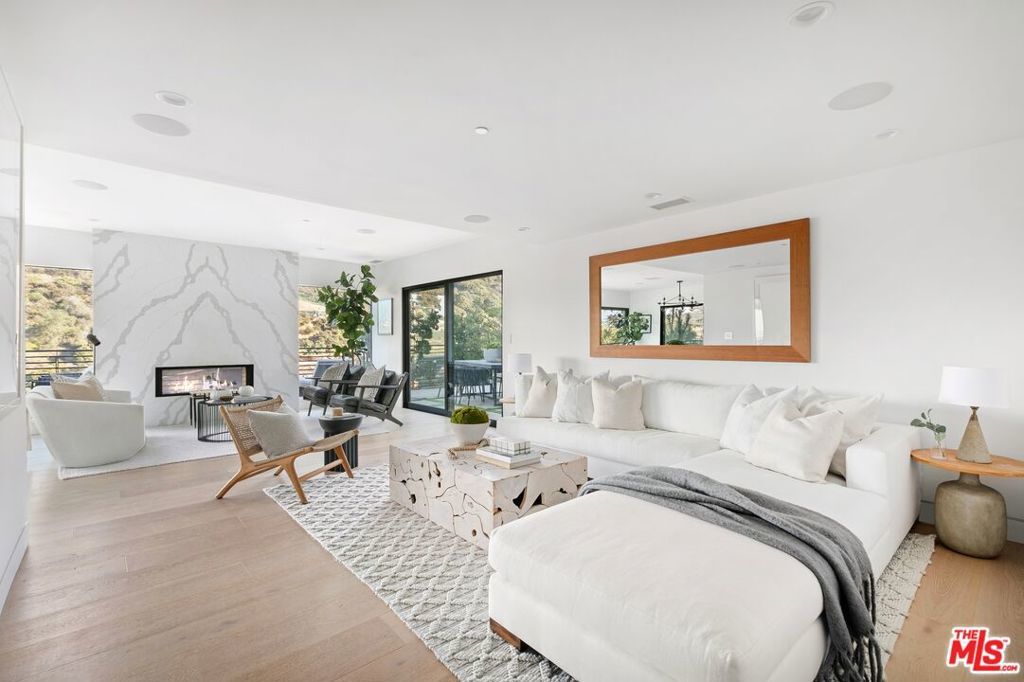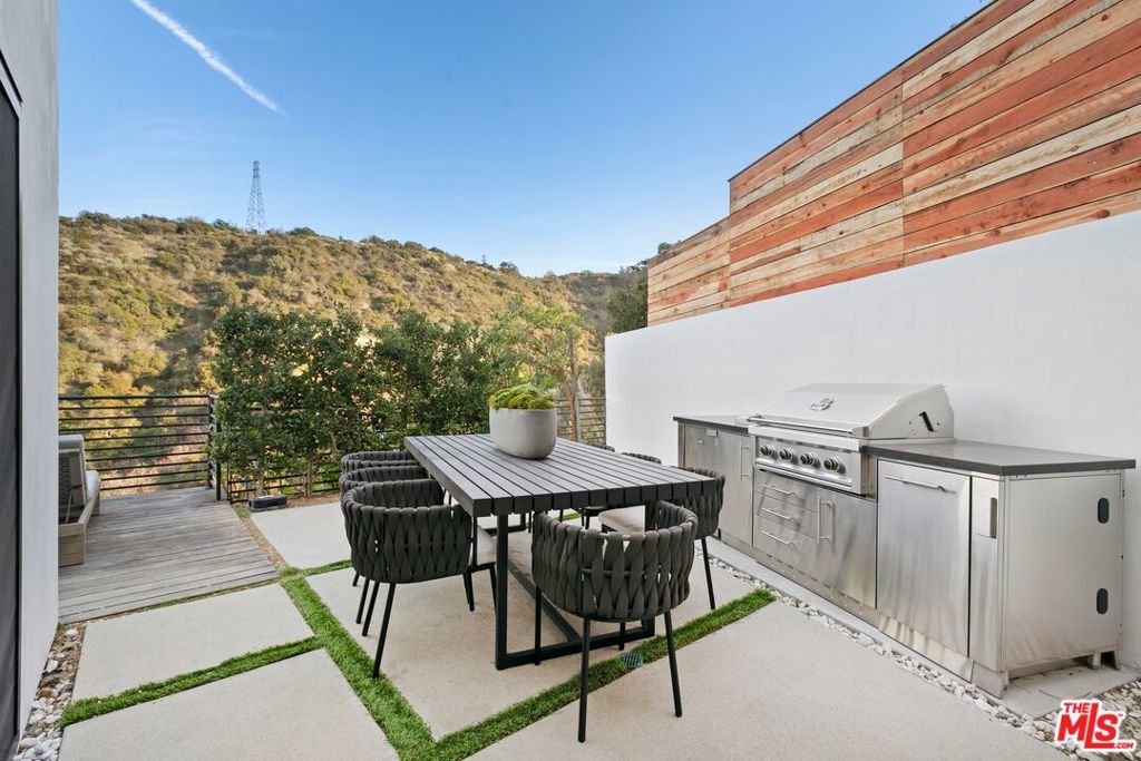 Perched above the tree-tops in prime Laurel Canyon, this exquisitely remodeled Hollywood Hills smart home was meticulously upgraded and offers a sophisticated blend of elegance and modern comfort. The spacious open floor plan features an abundance of natural light, with floor to ceiling windows and doors that perfectly frame the panoramic canyon vistas. The main living level features a large open floor plan living, kitchen and dining area, outfitted with white oak floors, quartz countertops, custom cabinetry, integrated shadow base moldings and professional-grade stainless steel appliances. Additional highlights include two ground floor en-suite bedrooms, a guest powder room, security cameras and surround sound system. The upper level boasts a hotel-style primary suite, complete with dual walk-in closets and a spa-like ensuite bathroom with double vanity, shower and sumptuous bathtub with views of the canyons. Two en-suite bedrooms and serene roof-top terraces complete the second floor. Designed to entertain, the outdoor spaces offer a seamless flow inside, and are equipped with a built-in grill and a number of dining and lounge areas - all positioned to enjoy the expansive views. Located near the desirable Wonderland Elementary School, the home offers a convenient location moments from the heart of the Sunset Strip and dining, leisure and entertainment on Ventura Blvd.
