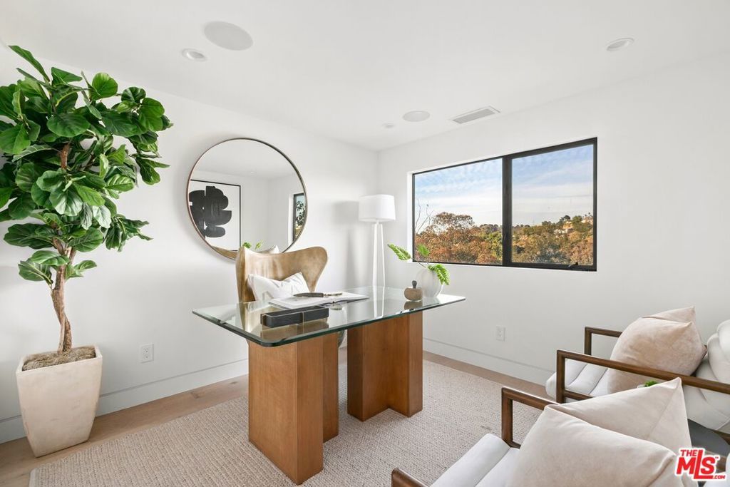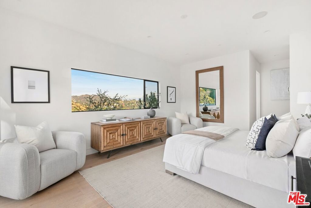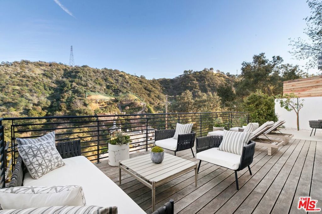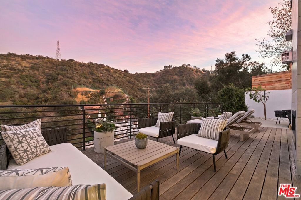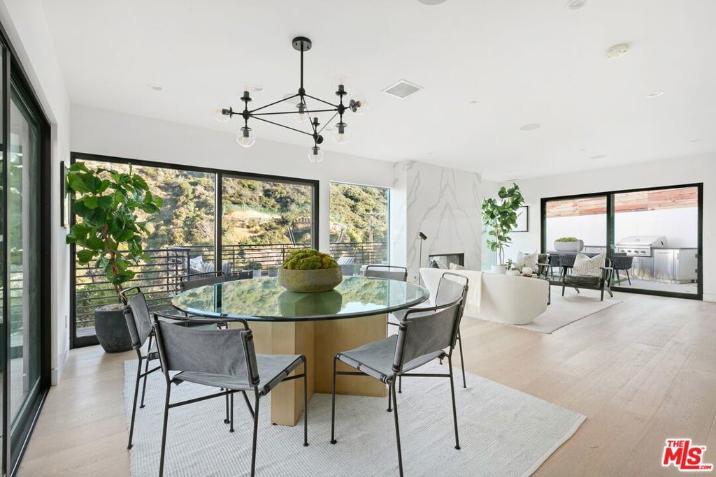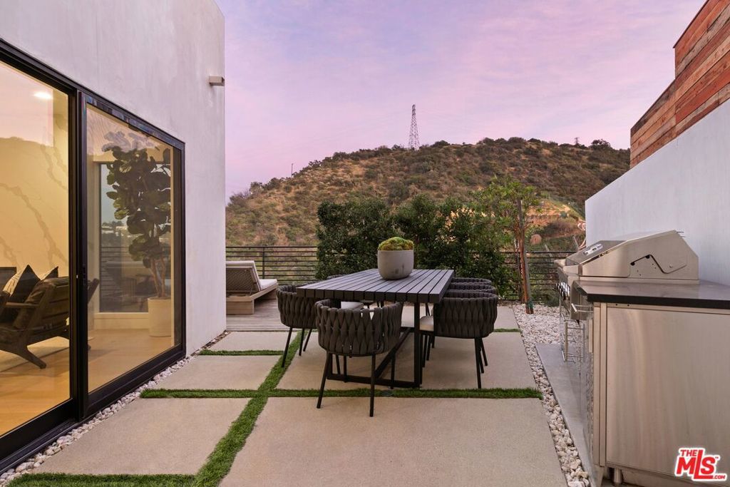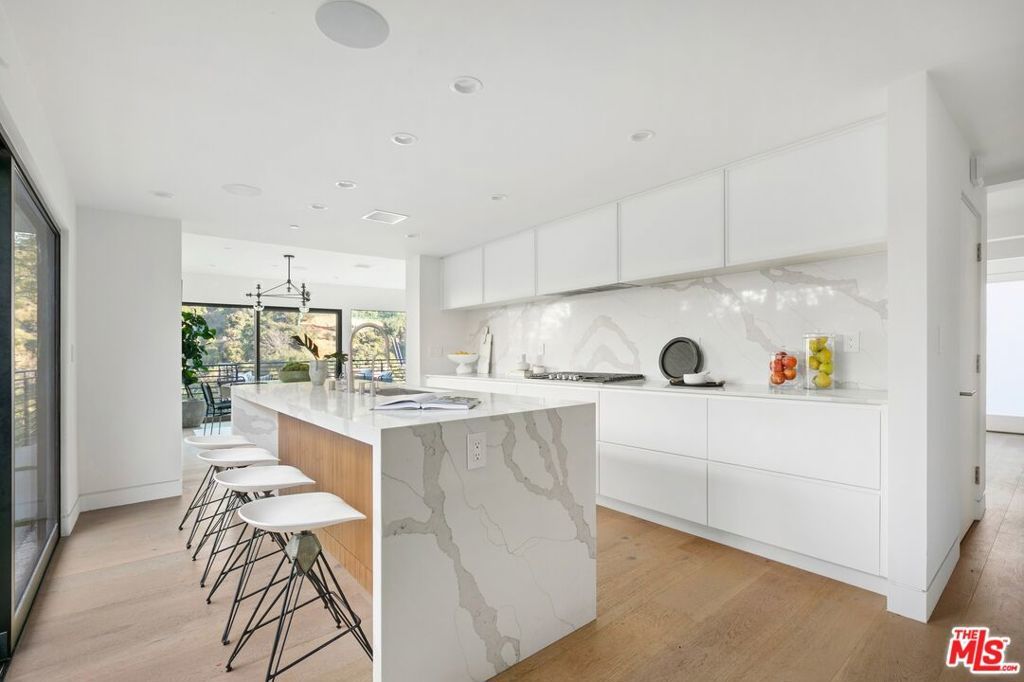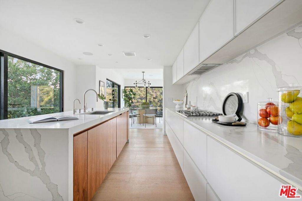 Perched above the tree-tops in prime Laurel Canyon, this exquisitely remodeled Hollywood Hills smart home was meticulously upgraded and offers a sophisticated blend of elegance and modern comfort. The spacious open floor plan features an abundance of natural light, with floor to ceiling windows and doors that perfectly frame the panoramic canyon vistas. The main living level features a large open floor plan living, kitchen and dining area, outfitted with white oak floors, quartz countertops, custom cabinetry, integrated shadow base moldings and professional-grade stainless steel appliances. Additional highlights include two ground floor en-suite bedrooms, a guest powder room, security cameras and surround sound system. The upper level boasts a hotel-style primary suite, complete with dual walk-in closets and a spa-like ensuite bathroom with double vanity, shower and sumptuous bathtub with views of the canyons. Two en-suite bedrooms and serene roof-top terraces complete the second floor. Designed to entertain, the outdoor spaces offer a seamless flow inside, and are equipped with a built-in grill and a number of dining and lounge areas - all positioned to enjoy the expansive views. Located near the desirable Wonderland Elementary School, the home offers a convenient location moments from the heart of the Sunset Strip and dining, leisure and entertainment on Ventura Blvd.