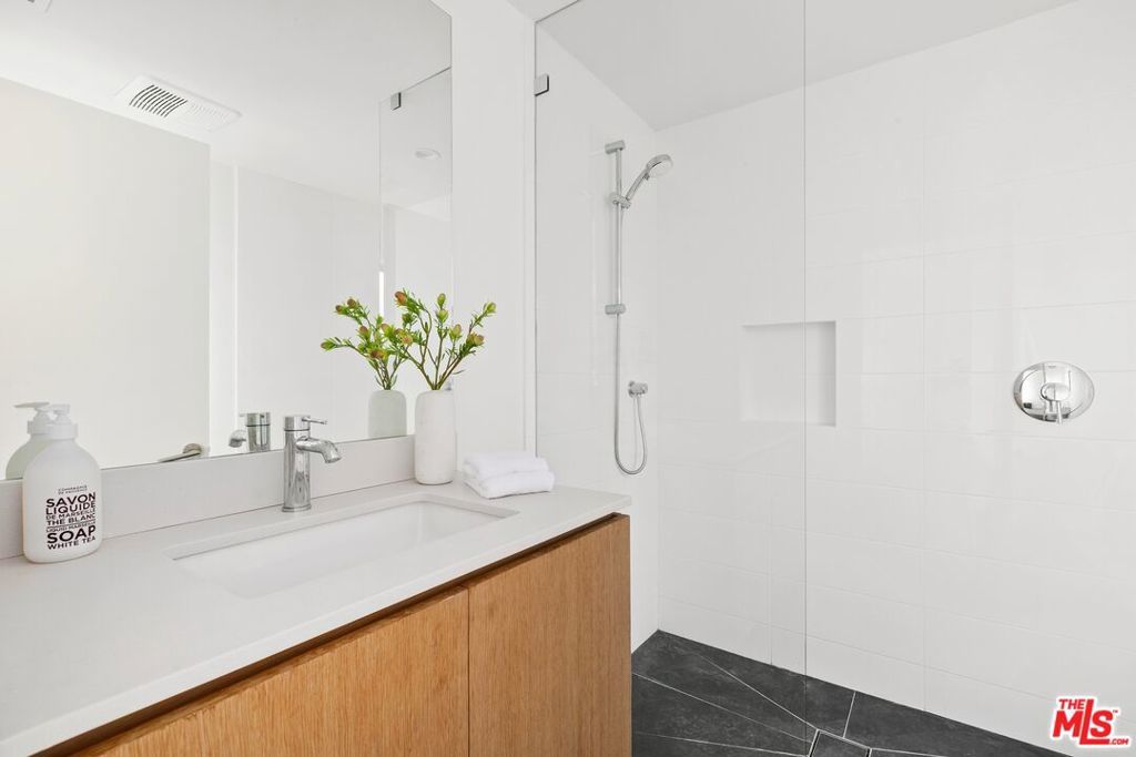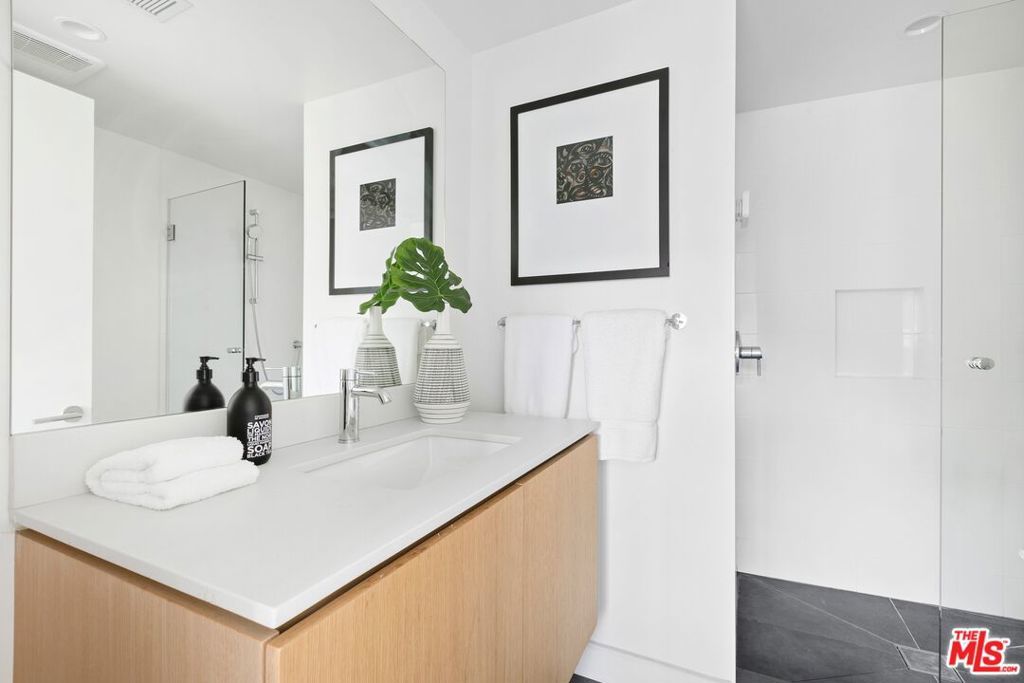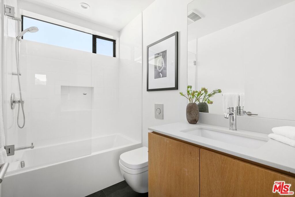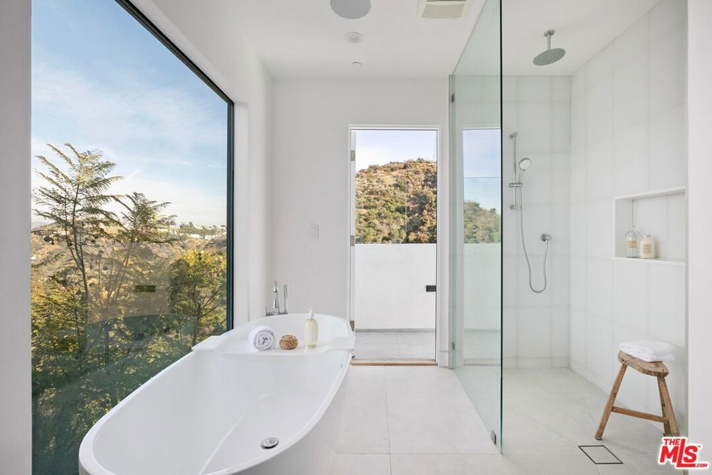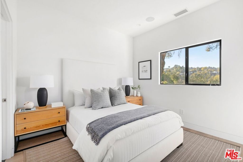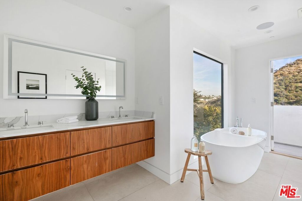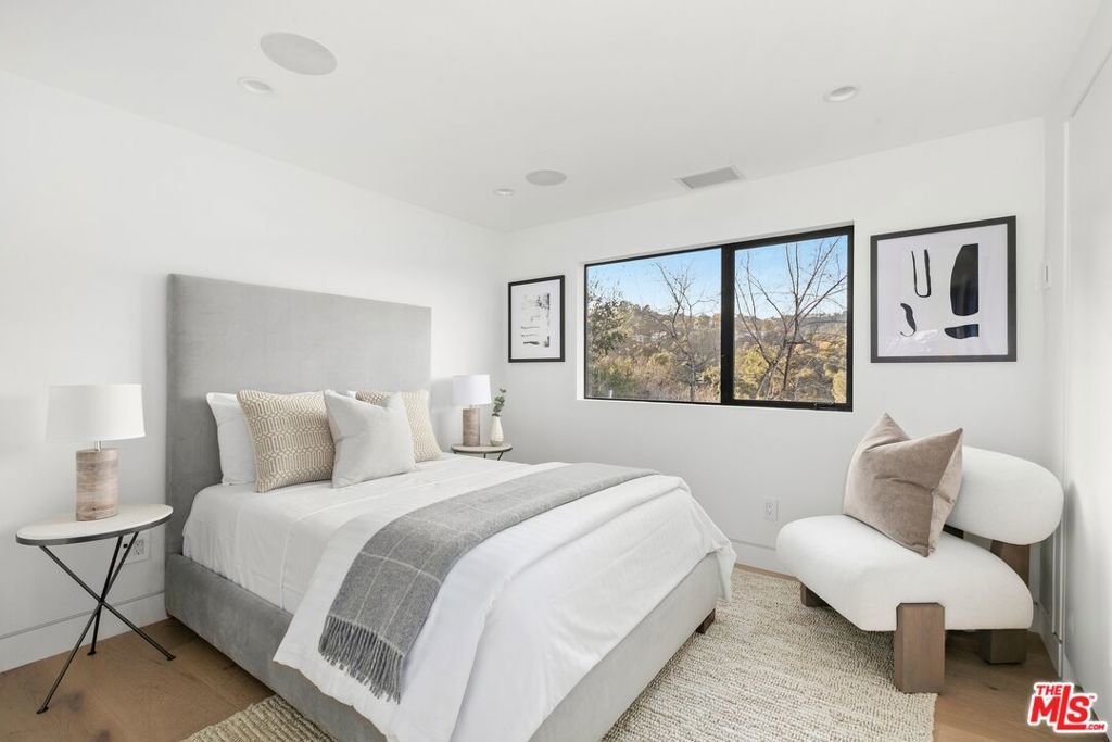 Perched above the tree-tops in prime Laurel Canyon, this exquisitely remodeled Hollywood Hills smart home was meticulously upgraded and offers a sophisticated blend of elegance and modern comfort. The spacious open floor plan features an abundance of natural light, with floor to ceiling windows and doors that perfectly frame the panoramic canyon vistas. The main living level features a large open floor plan living, kitchen and dining area, outfitted with white oak floors, quartz countertops, custom cabinetry, integrated shadow base moldings and professional-grade stainless steel appliances. Additional highlights include two ground floor en-suite bedrooms, a guest powder room, security cameras and surround sound system. The upper level boasts a hotel-style primary suite, complete with dual walk-in closets and a spa-like ensuite bathroom with double vanity, shower and sumptuous bathtub with views of the canyons. Two en-suite bedrooms and serene roof-top terraces complete the second floor. Designed to entertain, the outdoor spaces offer a seamless flow inside, and are equipped with a built-in grill and a number of dining and lounge areas - all positioned to enjoy the expansive views. Located near the desirable Wonderland Elementary School, the home offers a convenient location moments from the heart of the Sunset Strip and dining, leisure and entertainment on Ventura Blvd.