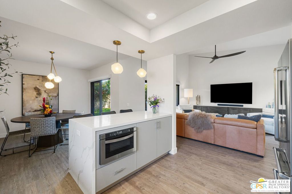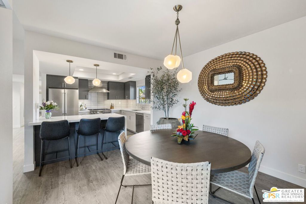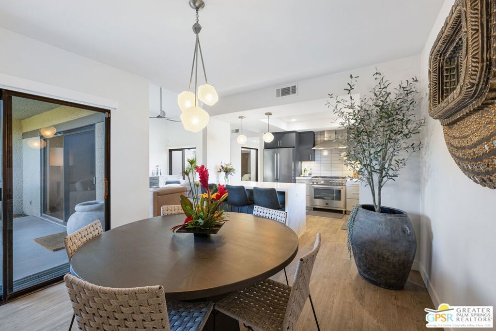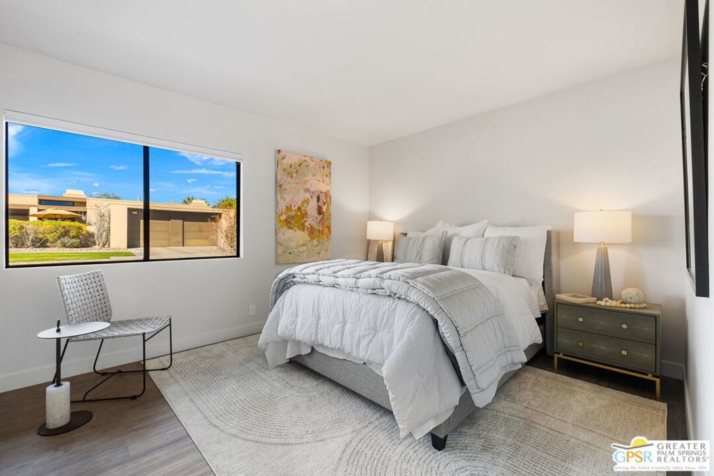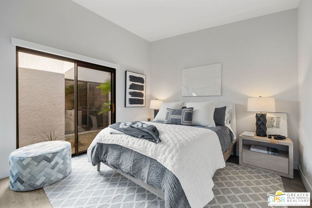 The property is being leased seasonally, so please call to confirm availability. Not available January, February, or March ** Monthly Rates: November to December: $6,500 / April: $7,000 / May to October: $4,000**Escape the winter chill and immerse yourself in the warmth of Palm Springs, living at its finest! Welcome to our contemporary-designed three-bedroom home nestled within the prestigious Rose Garden community. Designed by the renowned architect Donald Wexler, this mid-century masterpiece offers an unparalleled experience of luxury and comfort. Step inside and be greeted by 1608 square feet of meticulously curated living space. Every corner of this end-unit condo exudes sophistication and style, making it the perfect retreat for snowbirds seeking a taste of desert paradise. Indulge your culinary passions in the gourmet kitchen, featuring Quartz Counters, chic matte-finished cabinetry, and top-of-the-line Italian Bertazzoni appliances. Whether cooking up a feast for friends or enjoying a quiet meal with loved ones, this kitchen will surely impress. The spacious living area invites you to unwind in style with its seamless flow between indoor and outdoor spaces. Host gatherings with ease, or relax and soak in the desert sun from the comfort of your own home. Outside, discover a world of resort-style amenities waiting to be explored. With two pools, four pickleball courts, and two tennis courts at your disposal, there's no shortage of ways to stay active and entertained. And when you're ready to venture out, you'll find yourself just moments away from world-class shopping, dining, and entertainment options. Don't let another winter pass you by seize the opportunity to make this exquisite condo your home away from home. Book your stay today and experience the ultimate in Palm Springs living at The Rose Garden. Your oasis in the desert awaits! All utilities included - $500 monthly credit towards utility bills (gas, water, power); any surplus will be charged to the guest. $350 Pet Fee per pet. A cleaning fee is charged to the tenant upon departure. Weekly housekeeping is offered for an additional charge.