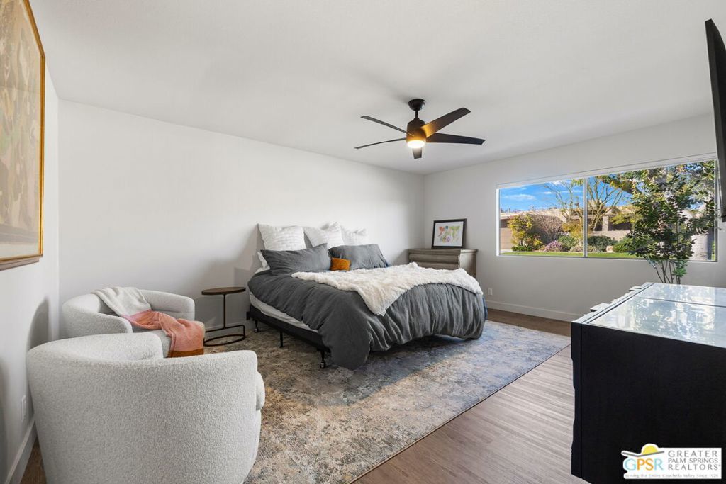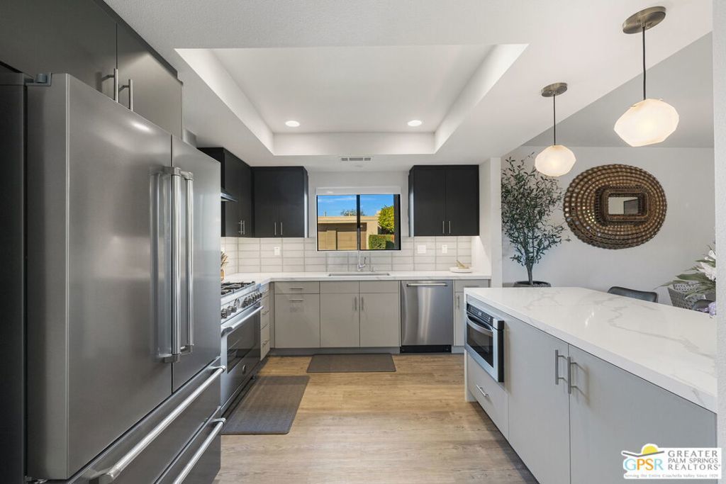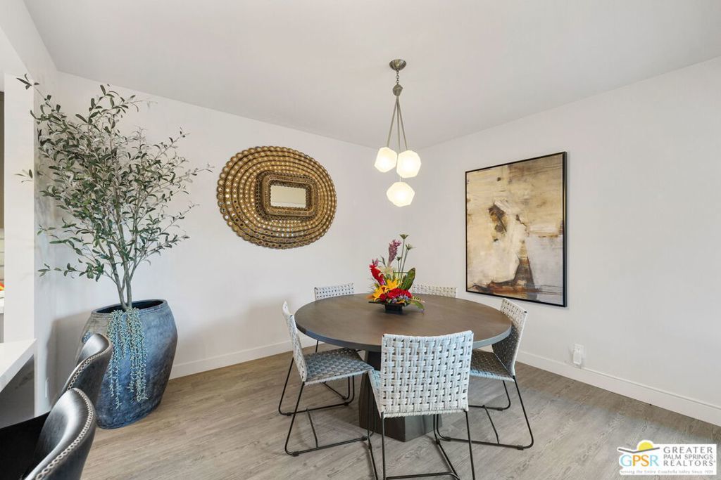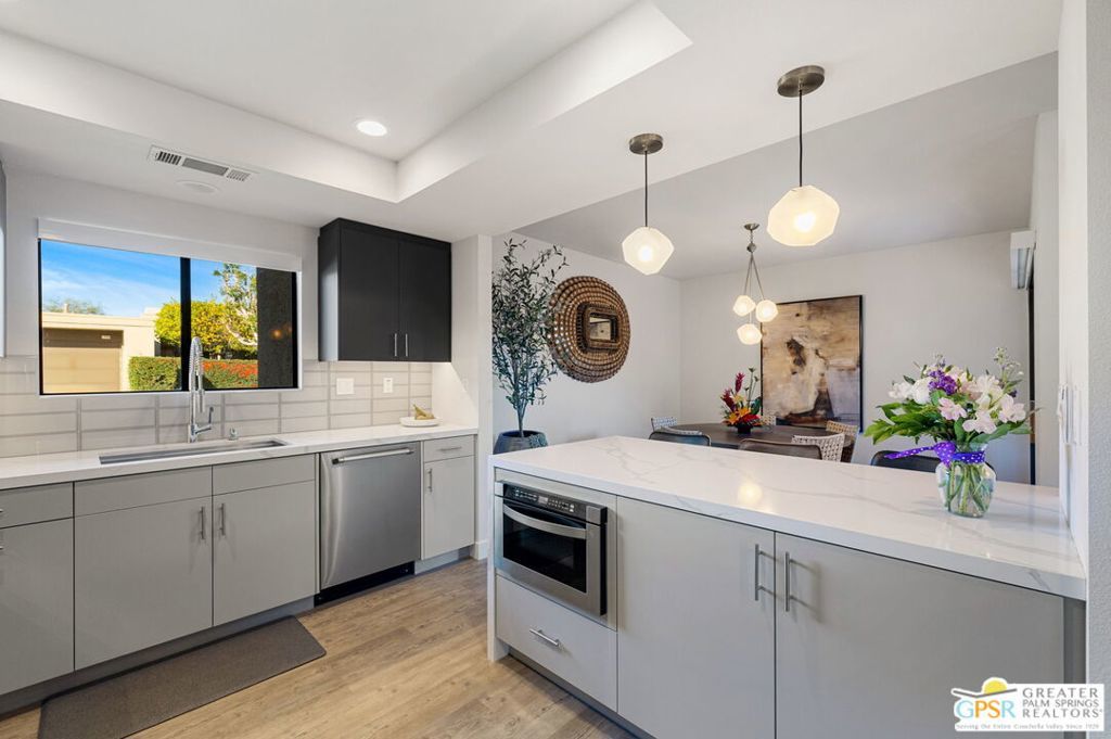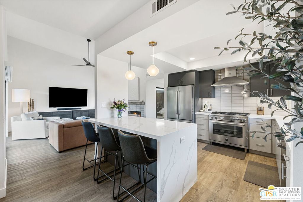 The property is being leased seasonally, so please call to confirm availability. Not available January, February, or March ** Monthly Rates: November to December: $6,500 / April: $7,000 / May to October: $4,000**Escape the winter chill and immerse yourself in the warmth of Palm Springs, living at its finest! Welcome to our contemporary-designed three-bedroom home nestled within the prestigious Rose Garden community. Designed by the renowned architect Donald Wexler, this mid-century masterpiece offers an unparalleled experience of luxury and comfort. Step inside and be greeted by 1608 square feet of meticulously curated living space. Every corner of this end-unit condo exudes sophistication and style, making it the perfect retreat for snowbirds seeking a taste of desert paradise. Indulge your culinary passions in the gourmet kitchen, featuring Quartz Counters, chic matte-finished cabinetry, and top-of-the-line Italian Bertazzoni appliances. Whether cooking up a feast for friends or enjoying a quiet meal with loved ones, this kitchen will surely impress. The spacious living area invites you to unwind in style with its seamless flow between indoor and outdoor spaces. Host gatherings with ease, or relax and soak in the desert sun from the comfort of your own home. Outside, discover a world of resort-style amenities waiting to be explored. With two pools, four pickleball courts, and two tennis courts at your disposal, there's no shortage of ways to stay active and entertained. And when you're ready to venture out, you'll find yourself just moments away from world-class shopping, dining, and entertainment options. Don't let another winter pass you by seize the opportunity to make this exquisite condo your home away from home. Book your stay today and experience the ultimate in Palm Springs living at The Rose Garden. Your oasis in the desert awaits! All utilities included - $500 monthly credit towards utility bills (gas, water, power); any surplus will be charged to the guest. $350 Pet Fee per pet. A cleaning fee is charged to the tenant upon departure. Weekly housekeeping is offered for an additional charge.