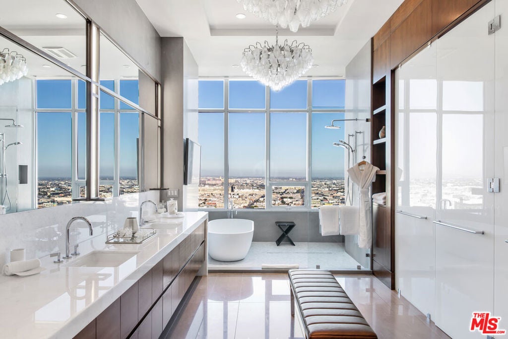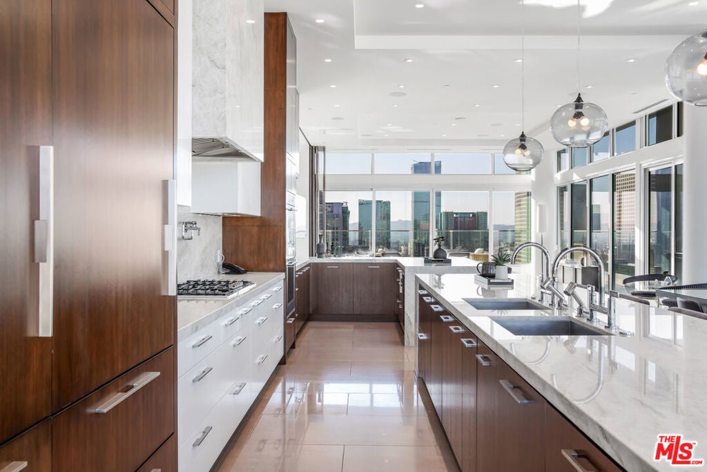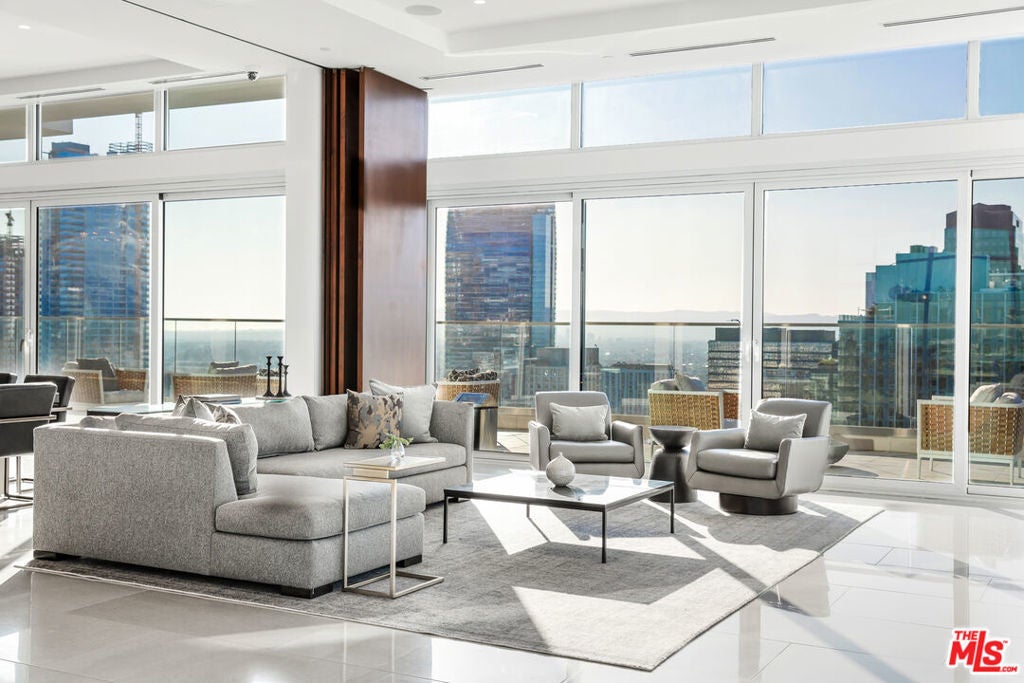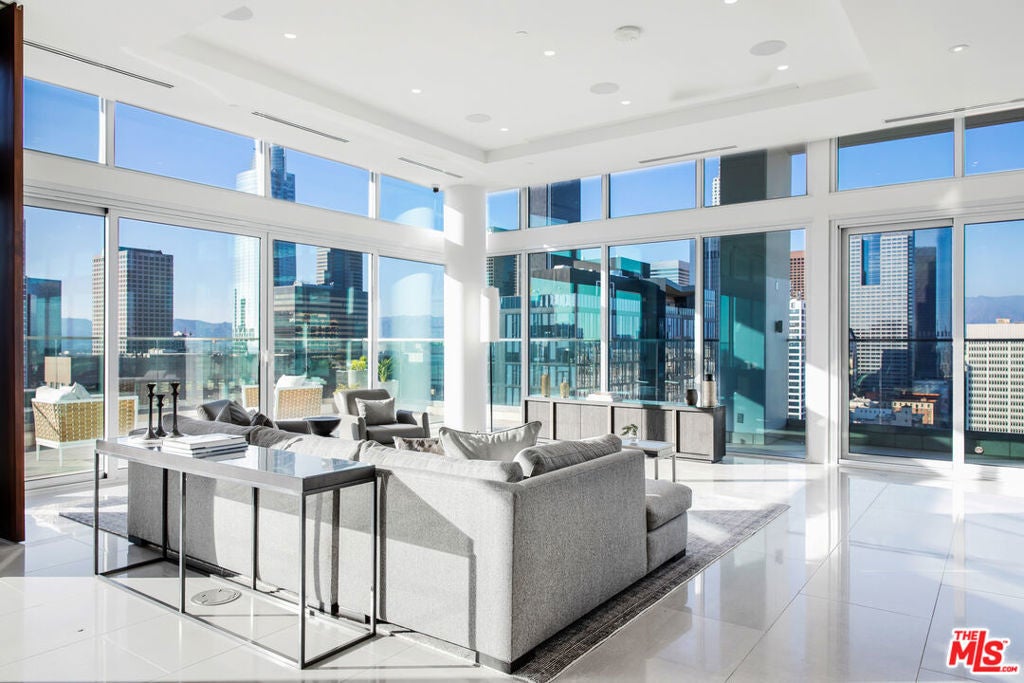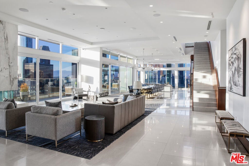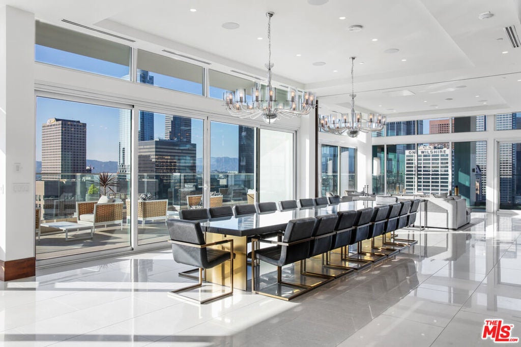 Luxury living at its Finest. Welcome to an unparalleled experience in this magnificent two-story penthouse nestled atop LEVEL's prestigious luxury tower in the heart of Downtown Los Angeles. Boasting 13-ft floor-to-ceiling windows, revel in breathtaking 360-degree views of the city skyline and beyond. Indulge in the epitome of opulence with this fully-furnished residence featuring two formal dining rooms, an expansive great room, a stylish lounge complete with a full bar, and not one, but four separate kitchens, each adorned with top-of-the-line Wolf and Sub-Zero appliances. Step outside and be enveloped by 8,000 sqft of extraordinary outdoor living space, perfect for entertaining guests or simply enjoying the panoramic vistas in absolute privacy. Entertain with ease as this home transcends luxury with its array of exceptional features. On Level 1, marvel at two wine rooms showcased behind 10-ft glass walls, while an automated media room beckons with seating for fifteen. Ascend to Level 2 and discover your own private oasis, complete with a lavish 50-ft rooftop pool, a serene sundeck, a luxurious twelve-person spa, a rejuvenating steam room, an expansive outdoor dining area for fourteen, state-of-the-art BBQs, a cozy fire pit, and a stylish lounge area. Luxury amenities abound with butler services, 24-hour concierge, valet and individual assigned parking, housekeeping services, and exclusive access to 37,000 sqft of residential building amenities. Don't miss this rare opportunity to reside in the pinnacle of luxury living in Los Angeles. Experience the ultimate in sophistication, comfort, and convenience in this extraordinary penthouse retreat.