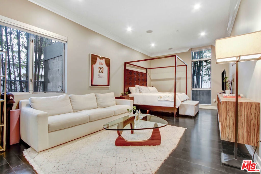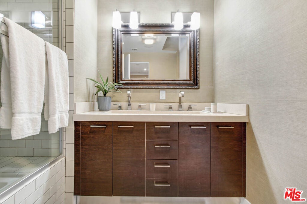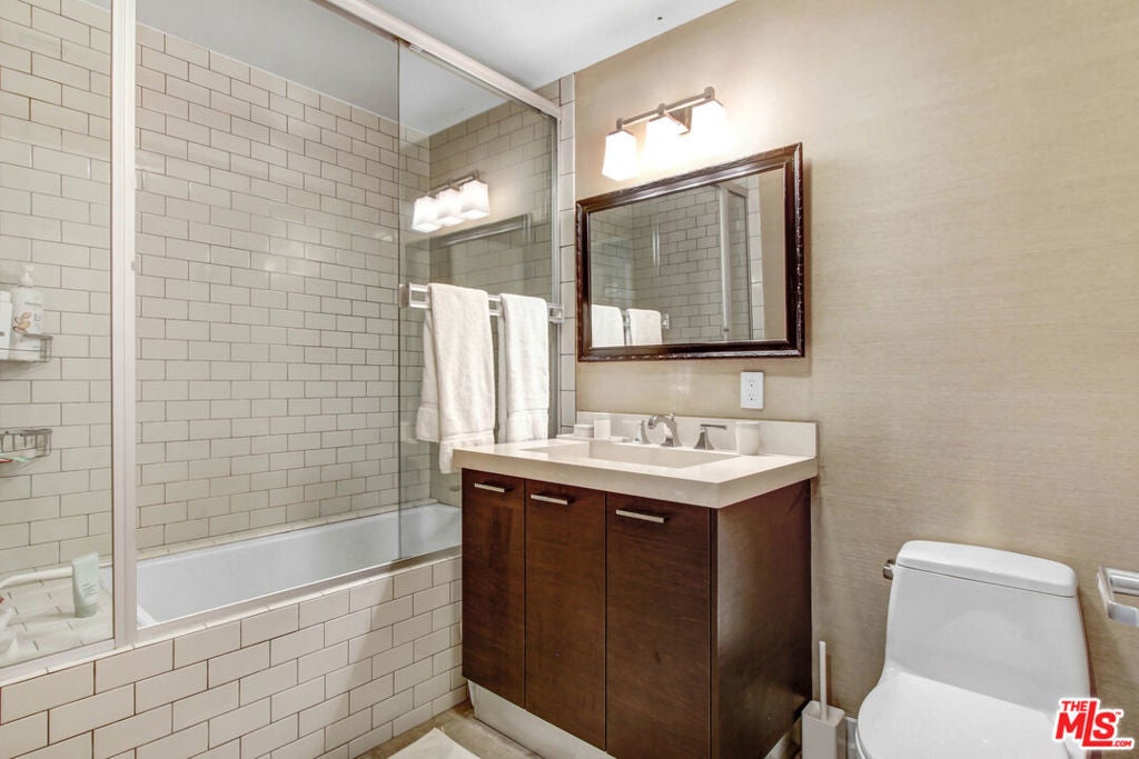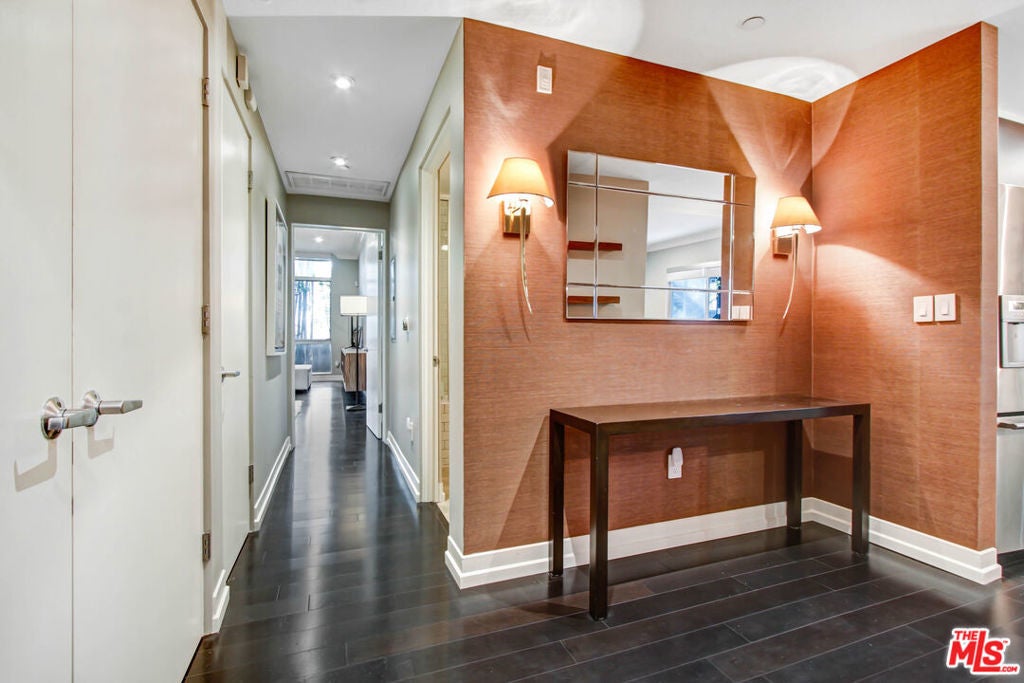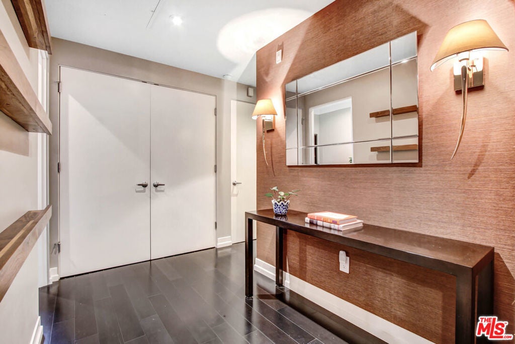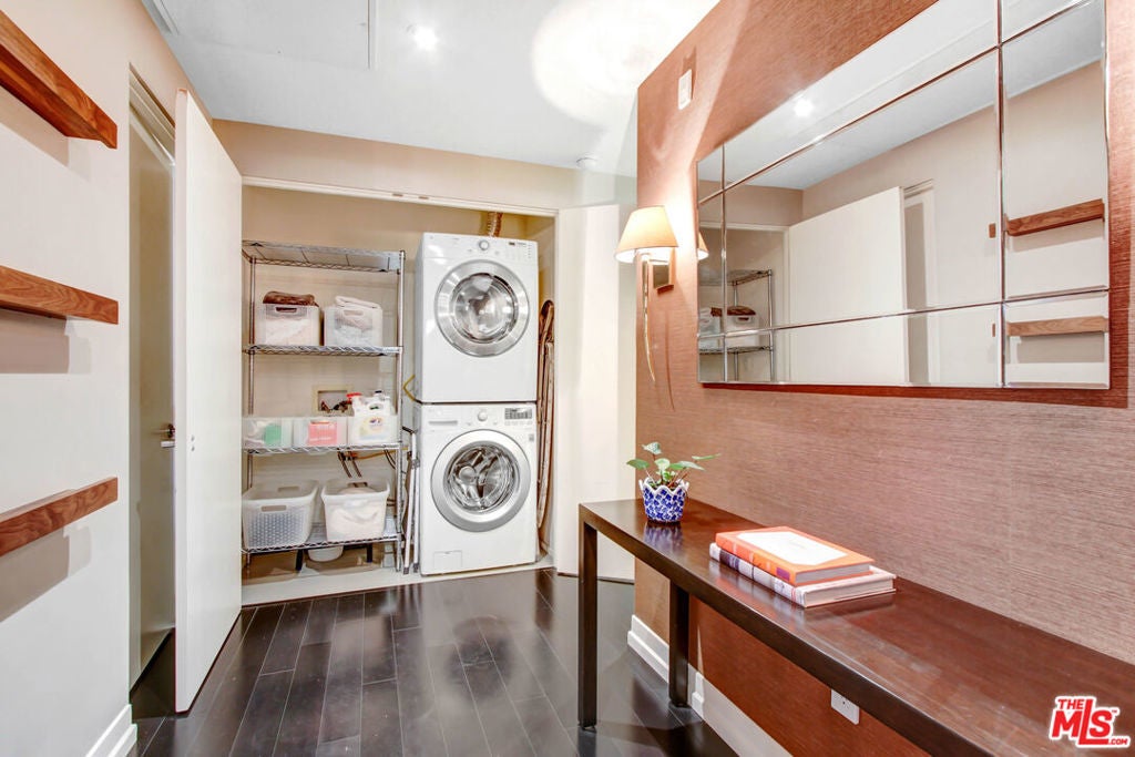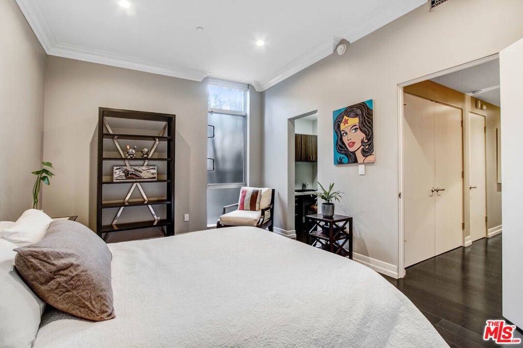 Location and style! This is a high design condominium in an architecturally significant property located adjacent to several shopping corridors. The property is just South of Santa Monica Boulevard and a few blocks North of Melrose, paces from coffee shops, boutiques, restaurants and other amenities. The unit has a large high-ceiling living room with an open modern kitchen and large sliding glass doors opening to a private patio. The setting, with large kitchen island, is ideal for gathering and entertaining friends. There are hardwood floors, granite counter tops, modern stainless steel appliances, imported Italian cabinetry and exquisite finishes throughout. The large primary bedroom features an en-suite bath and walk in closet. The second bath is in the central hallway and serves as the second bedroom bath and powder room. (the bedrooms are separated by lengthy hallway which affords privacy to the occupants of each) There is a spacious laundry closet just off the kitchen. The parking structure is large and secure, and the two parking spaces for this unit are side by side. ("Gardner 9", the name of the building, was designed by Lorcan Oherlihy and featured in Dwell Magazine)