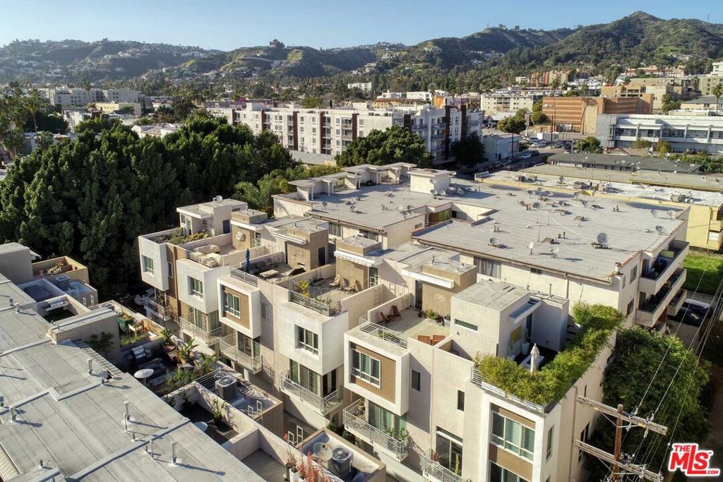 Great opportunity to acquire an exceptional architectural townhome in one of the most unique pocket neighborhoods along the World famous Sunset Strip. Enjoy a chic urban living experience in this rare end-unit bathed in natural light, solid construction and privacy. Featuring 2 beds plus an office with an open kitchen-dining-living room floor-plan and a roof deck you can relax at home on a lazy Sunday, meander to the local Farmer's market and entertain guests. A cook's dream kitchen with lots of counter space, good storage and high-end appliances set the stage for small or large gatherings. The primary bedroom is a comfortable resting place with large windows, walk-in closet and spacious bathroom with double vanity. Roof-top deck with views and room to soak up that beautiful California sunshine. Direct access 2 car garage, laundry inside unit, custom window treatments. No shared walls.