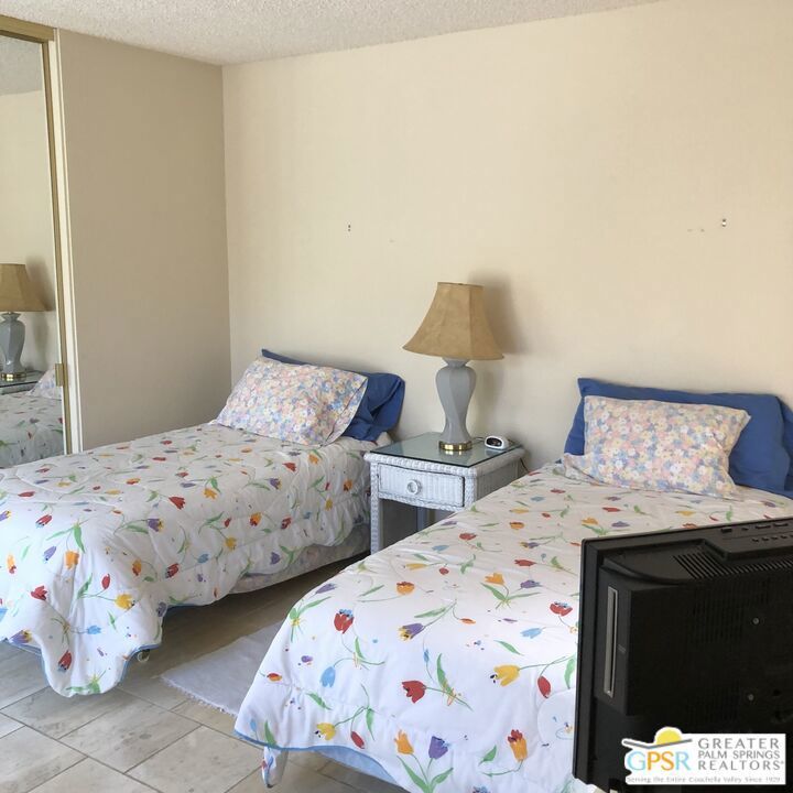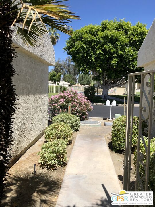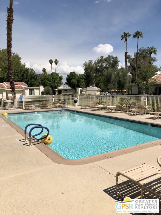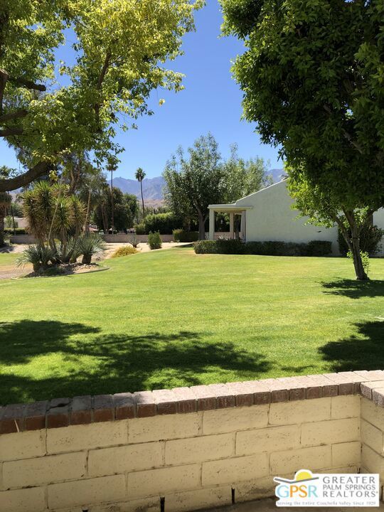 Enjoy the peace and quiet of this 2 bedroom 2 bath single level condo. Situated on the 8th faraway of Cathedral Canyon Golf Course with gorgeous views of the San Jacinto Mountains. Being sold furnished except dinning table and personal items. Great as a vacation rental property or as a long term rental. Full size washer and dry, two car garage. BBQ, two patios and is situated on a cul-de-sac. One of the community pools is directly across the street for your convenience. Cathedral Canyon Country Club includes 10 tennis courts, spas, multiple pools, clubhouse and the popular Bar and Grill "Jax" across Cathedral Canyon Dr. Gate is usually open. HOA payment covers (roofs, cable, internet, & trash).