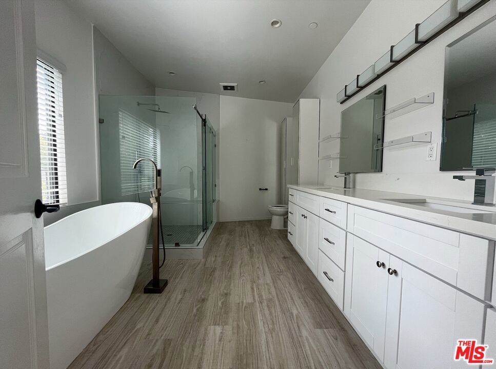 Newer construction luxury townhouse style apartment with rooftop terrace in the desirable West Hollywood location, just a few blocks south of the world famous Sunset Strip and short drive to Beverly Hills. This unit boasts large 3BR/3.5BA townhome feature designer finishes such as en suite bedrooms, primary bedroom with massive walk-in closet and primary bath with separate shower, soaking tub and double sinks, gourmet kitchen with Thermador appliances, 9' ceilings, outdoor patio space, dual zone HVAC, laundry room with extra storage space, 2 car parking with private entrance & recently installed EV charger, gated entry, and roof top deck with extraordinary views of the city. Close to all the shops and restaurants West Hollywood has to offer! Vacant and ready to move in!
