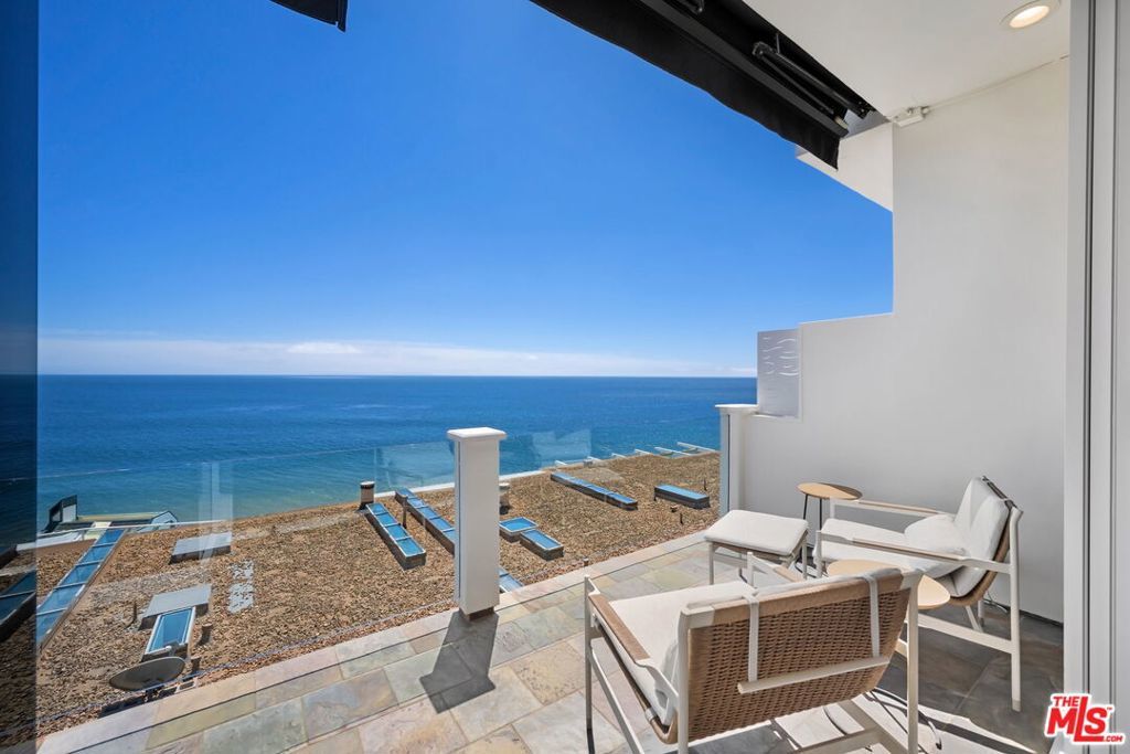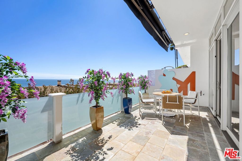 Beautiful bluff two-story Richard Neutra designed living space overlooking Escondido Beach. Enjoy panoramic ocean views from two of three balcony areas. Upstairs primary boasts a walk-in closet and covered balcony while the 2nd bedroom could be used as an additional office with its balcony. Enjoy the water and sun from this mid-century inspired condominium in the private and secluded Holiday House. With a private path to Geoffrey's and the beach, what else do you need? Offered furnished or unfurnished. Lease amount for summer/short term to be $20,000/Month.