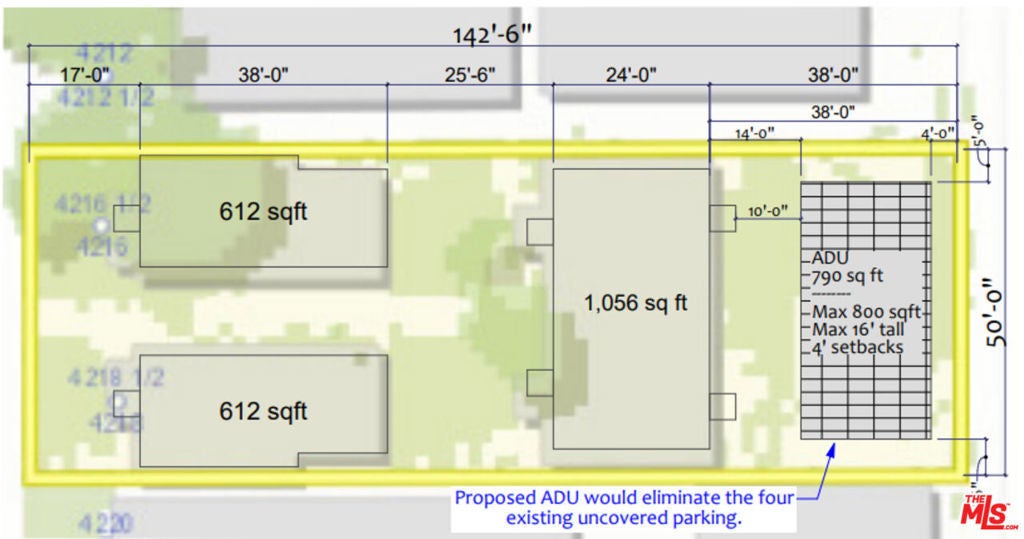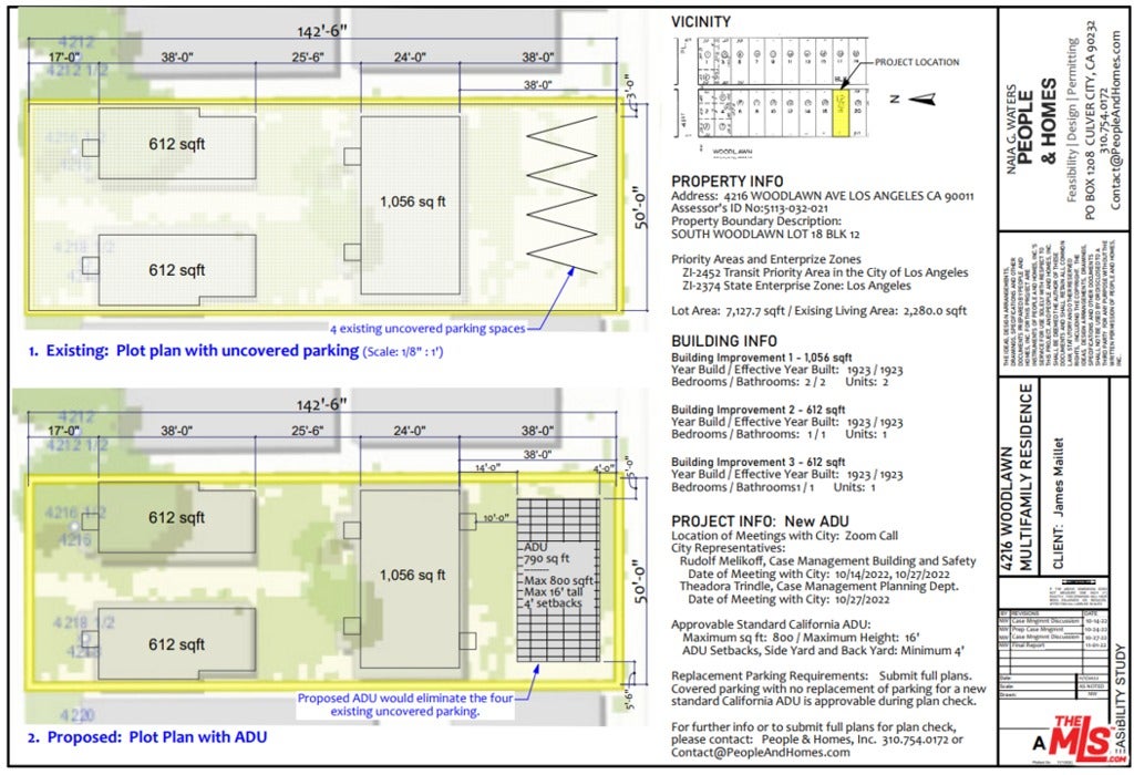 ONE UNIT DELIVERED VACANT. Assumable loan at 2.625% - 4 Units Fully rented! Exceptional income! Excellent Income! Professionally Managed! 2,280 sf on 7,128 sf of land. Build an ADU! Rear of parcel allows for an additional unit/ADU. Existing 4 Units have 1 Bedroom/ 1 bath each. The are 2 freestanding units at the front of the property. The 2 Units at the rear of the property share one wall. 3 of the units are updated with laminate flooring, new tile and cabinetry as well as quartz countertops. (Reported rents are rounded to the nearest dollar. ) Long term tenant in front left unit.
