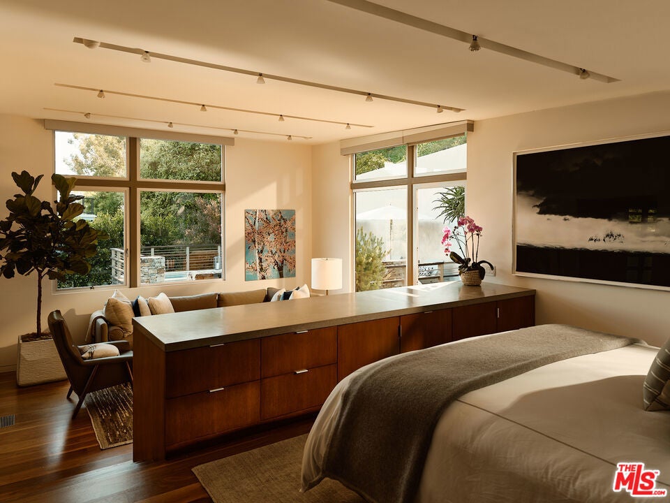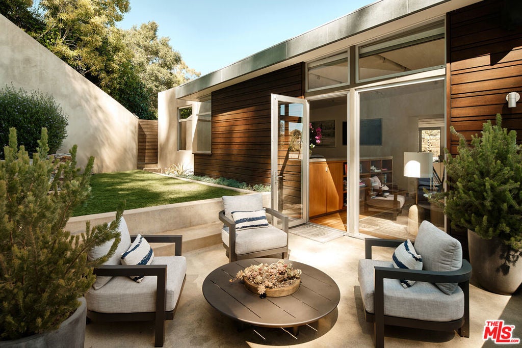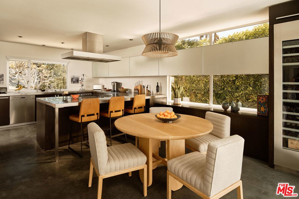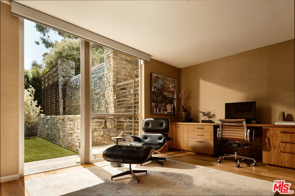 Nestled in the sought-after enclave of Rustic Canyon, this architectural gem was artfully crafted by acclaimed architect Michael Kovac. The home embodies completely custom, timeless design ensuring quality in every corner. Step inside to discover a formal yet relaxed living room effortlessly flowing to an additional open-concept living and dining space. Artistically framed floor-to-ceiling windows flood the rooms with natural light complimenting the warmth and richness of the hardwood accents while allowing the polished cement floors, and Boffi kitchen with Gaggenau appliances, to add a touch of modern sophistication. Ascend the exquisitely designed staircase to reveal a luxurious primary suite welcoming a sitting room, steam shower, office loft and private terrace. Envisioned for relaxation and entertaining, your outdoor oasis awaits featuring a marvelous infinity pool + spa, waterfall and picturesque treetop views. Four additional bedrooms, six bathrooms and a vast three-car garage complete the home. Don't miss this opportunity to call this Rustic Canyon gem home! * Home is 5,566 SF on public records