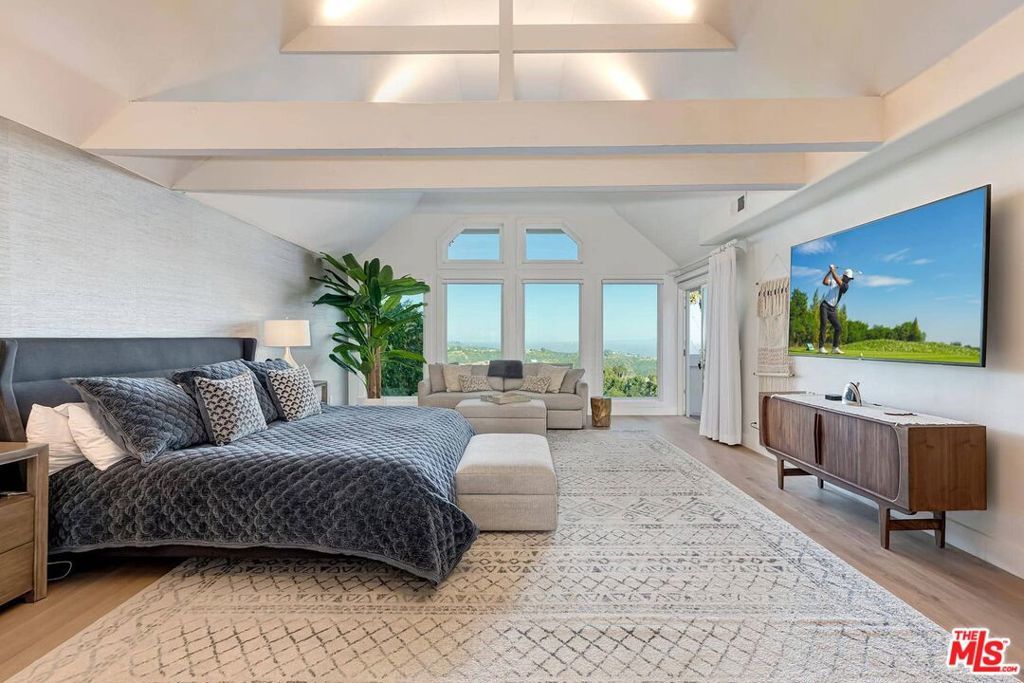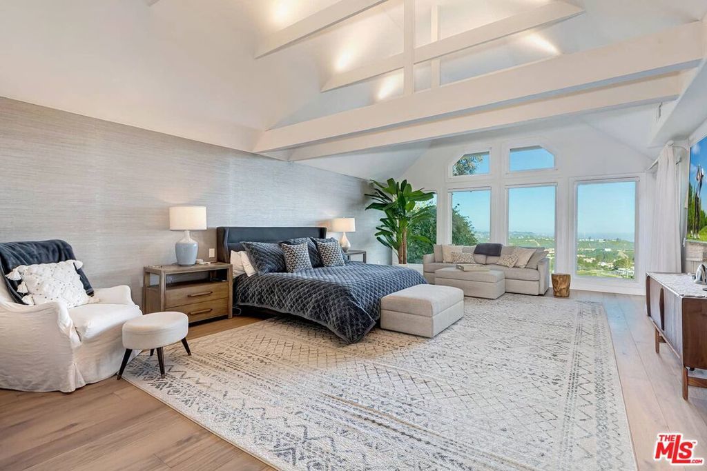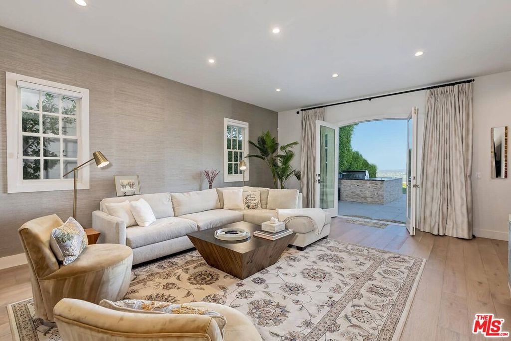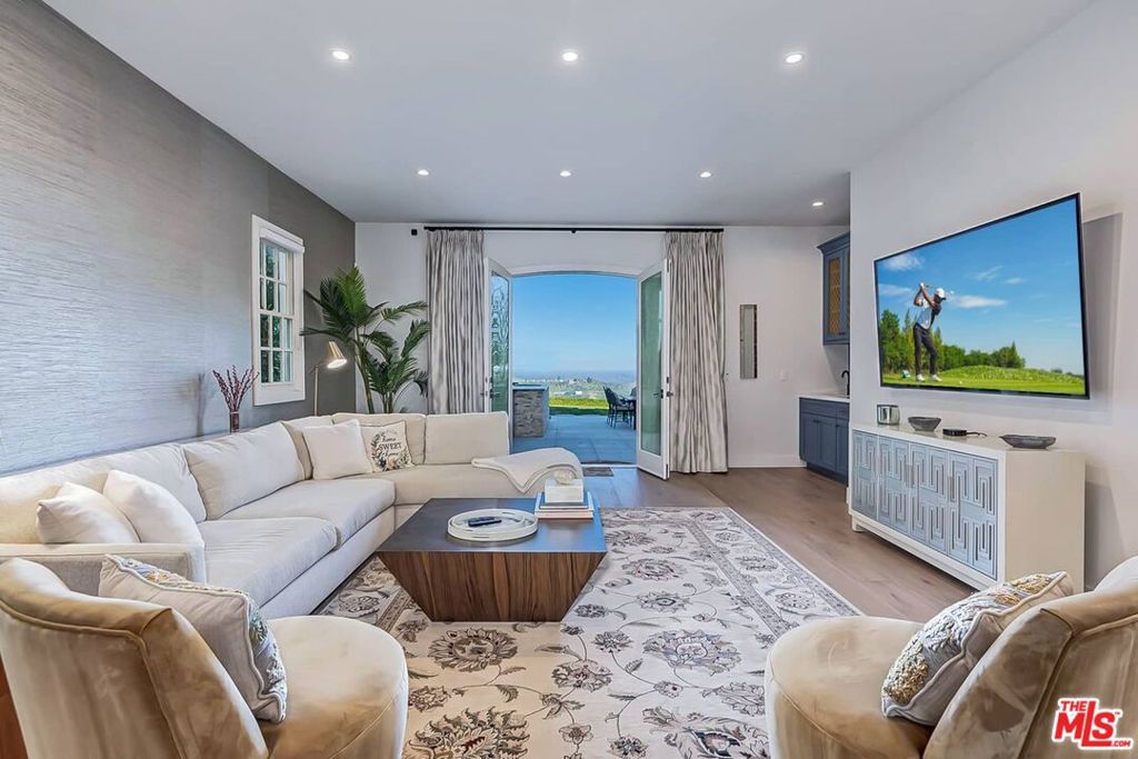 Stunning panoramic Views, like-new, pristine condition, and amazing value at $795 ppsf makes this a fabulous Westside value! Discover Mountaingate in Brentwood with 24HR on-site manned security patrol, blissful serenity, and one of the most breathtaking settings in LA! Sensational 180' wraparound views of glorious golf course fairways, majestic mountain ranges & sparkling city lights. This captivating 4 BR + Office, 5.50BA stately Cape Cod, with apprx. 5650sqft of luxury, is one of only 17 private detached homes beautifully sited along scenic Canyonback Rd, directly facing the Mountaingate Country Club. One of the choicest view lots with an incredible, big backyard sited on an expansive 7800sqft lot. Conveniently located in the ROSCOMARE school district, you can move right in to this extensively remodeled & redesigned home with showroom-quality decor, hardwood floors, and exquisite finishes throughout. Dramatic scale and volume with high ceilings, French doors, and stunning large windows. You'll enjoy endless afternoons of fun in the large, family-friendly backyard with total privacy, large grassy yard areas, spacious terraces with multiple seating areas, and an entertainer's BBQ bar that makes a perfect backdrop for parties! A grand, sun-filled formal entry leads to an impressive and inviting floorplan with the living, dining, and family rooms all seamlessly flowing together in perfect unison and opening directly to the backyard. The stunning, all-white chef's kitchen is a dream with professional-grade, full-sized subzero refrigerator/freezer, and full-sized wine refrigerator, oven/range, double sinks & 2 dishwashers, abundant counters and cabinet space, plus a fabulous walk-in pantry for storage of your finest china! A gracious circular stairwell filled with natural light brings you to a bright & open upstairs. The main bedroom is a remarkable retreat overlooking stunning views with two (2) separate full bathrooms, two (2) over-sized walk-in closets, spacious bedroom with sitting area, and a large adjacent room for an office or gym. There's two additional very large upstairs bedroom suites with private baths, plus a beautiful bedroom suite downstairs. A stunning guest powder room, direct-entry 3-car garage, large laundry room and abundant storage complete this rare offering. This neighborhood offers you the choice of the acclaimed Roscomare School or Kenter Cyn elementary school district. Mountaingate in Brentwood is known for its park-like ambiance and top-notch security. The Crown on Canyonback features extensive security measures with 24HR on-site manned security patrol, HOA alarm monitoring, camera surveillance, and an enhanced virtual gate system. Located on a wide, flat, well-lit street with easy pet-walking, the HOA dues include the convenience of weekly trash can services, roof coverage, exterior paint maintenance, common area landscaping, and resort-like amenities with lighted tennis courts, beautiful pool, spa, lush grounds, and glorious hiking trails that embrace you with the majestic Santa Monica Mountains. Enjoy the luxury of on-site security and a serene lifestyle with easy access to the Westside's finest dining and shopping, UCLA, USC, The Getty Center, LA's famous beaches, and all the great amenities of the sunny California life! Optional Memberships to the Mountaingate Country Club for Dining, Golf, Tennis and Social memberships available, (contact club for details). Easy to show.