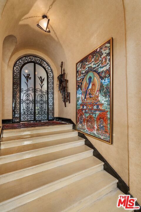 Introducing "The Cedars" a monument to Old Hollywood glamour and artistic splendor, meticulously restored to its original magnificence by the renowned fashion designer Sue Wong. This palatial estate, conceived in the roaring 1920s by visionary French director Maurice Tourneur, reflects an era of opulent detail and grandeur, inspired by the Duke of Alba's villa in Spain. Nestled on the historic hills of Los Feliz, The Cedars stands as a testament to Hollywood's golden age, boasting a commanding view of Los Angeles, from the city to the ocean & includes a gorgeous detached guest house. The estate is named after the once-abundant cedar trees that adorned the landscape, adding to its storied and mystical ambiance.As you step through the historical threshold, you are transported back in time to a period when Hollywood was as much about the art of storytelling as it was about the celebrities it celebrated. The home's dazzling array of kaleidoscopic opulence and intricate period details serves as an artistic sensory overload and each room tells a story, each corner holds a whisper of the past.The Cedars has been a sanctuary for Hollywood royalty and musical legends, hosting an array of illustrious names including Norma Talmadge, Howard Hughes, Marilyn Monroe, Jimi Hendrix, and Johnny Depp, to name a few. The walls of this iconic estate are steeped in the creative energies of these legends, from the iconic "Purple Haze" composed by Hendrix within its walls, to the gatherings of stars like Bob Dylan and The Rolling Stones.Sue Wong, the current custodian of The Cedars, undertook a painstaking three-year restoration, ensuring that no detail was overlooked. Collaborating with a team of European artisans and craftspeople, Wong led the revival of the estate's ornate gilded bas-relief ceilings, frescoed archways, and period ironwork. Her commitment extended to a global search for antiques that resonate with the estate's majestic architecture, bringing together elements from Baroque, Empire, French Art Deco, Moroccan, and Andalusian styles.Today, The Cedars is not just a home, but a living, breathing piece of art and each of the 26 rooms is meticulously designed to reflect the elegance and grand style of its origins. It stands as a stunning homage to the glamour and creative spirit of early twentieth-century Hollywood, offering an unparalleled opportunity to own a piece of history and artistry.This estate is a rare jewel in Los Angeles, perfect for those who appreciate the beauty of history, the allure of Hollywood, and the art of exquisite restoration. Experience the magic and legacy of The Cedars, where every room tells a story, and every view beckons a tale of yesteryear.