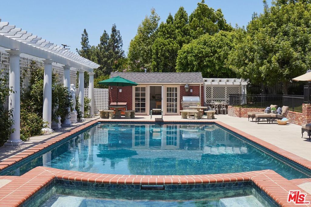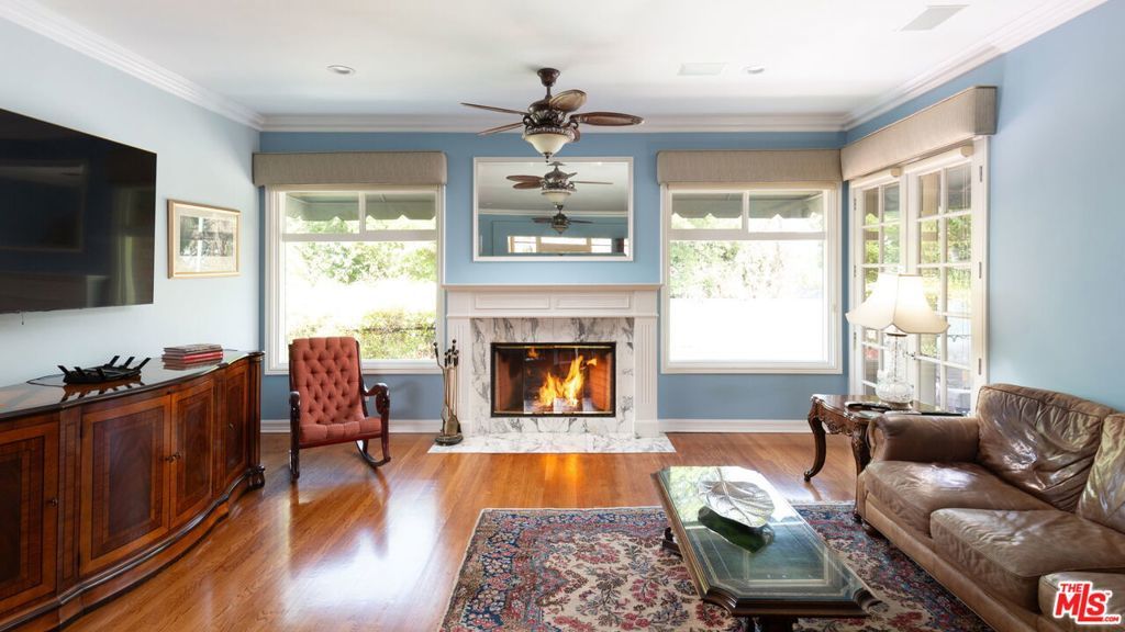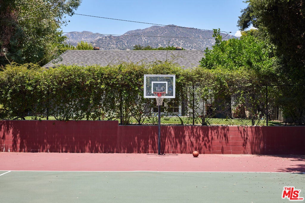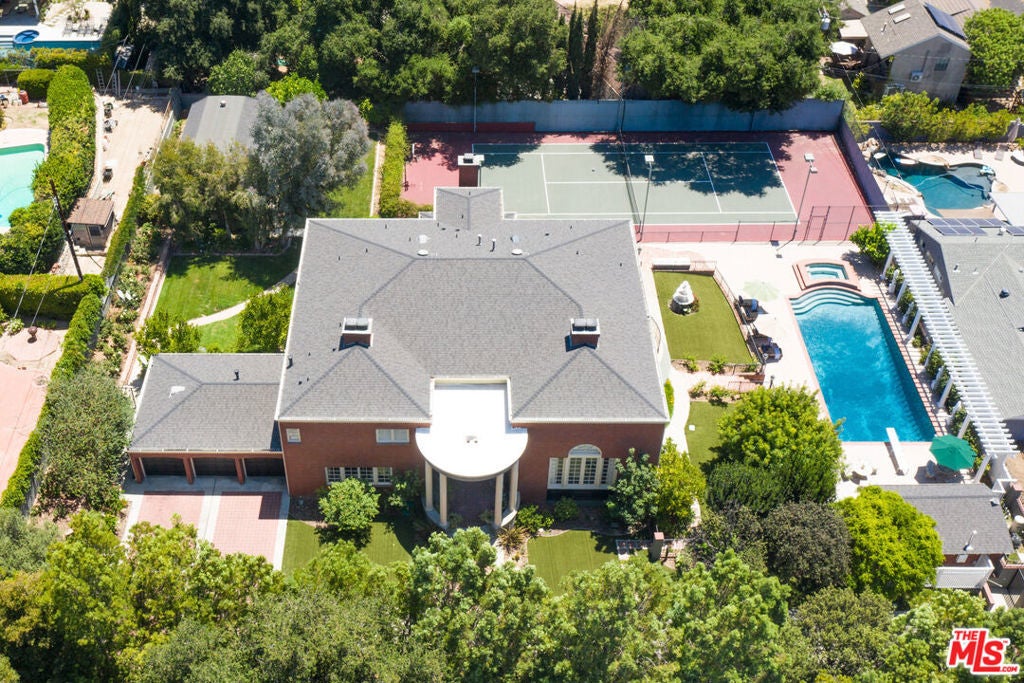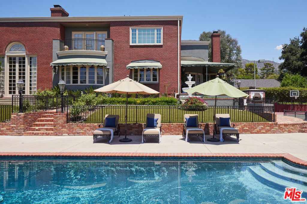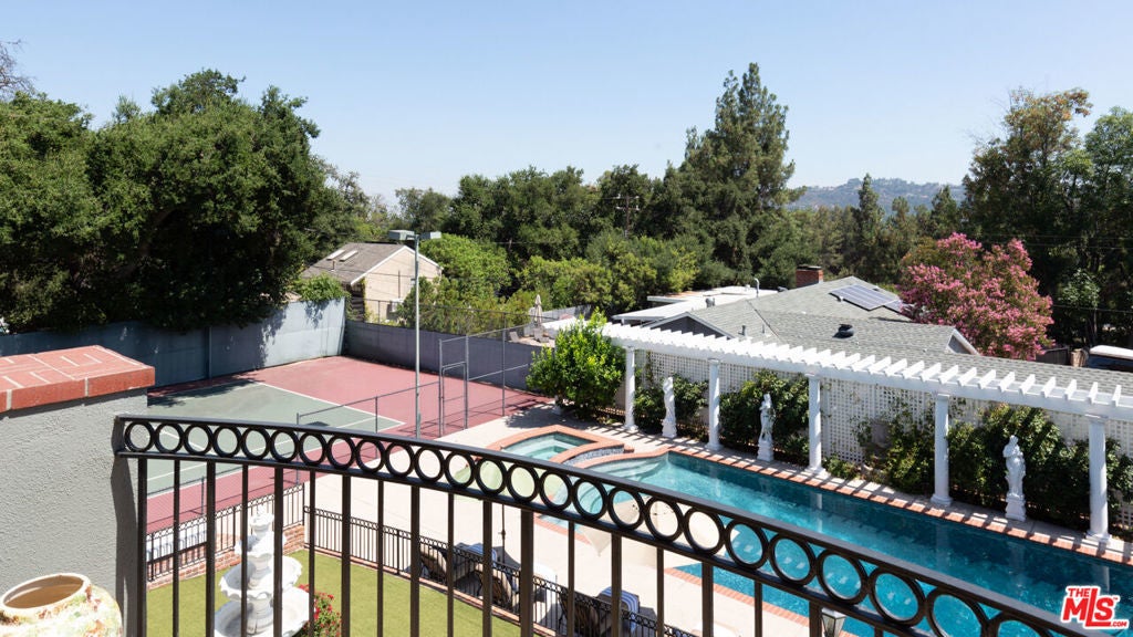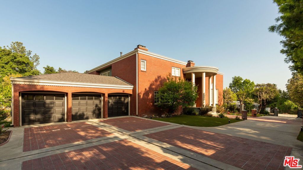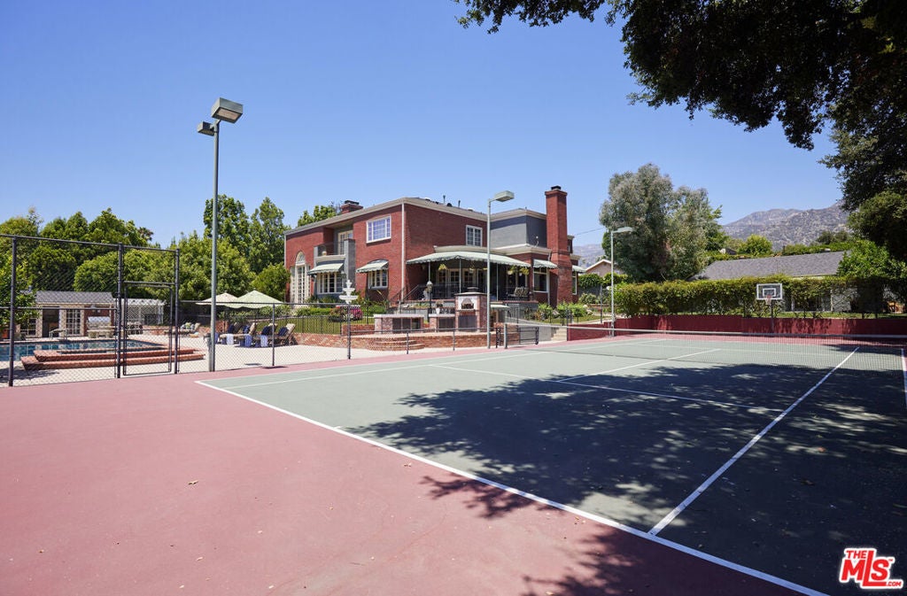 Welcome to this exceptional La Canada family compound with a real tennis court, competition sized pool, pool house, and large guest house on a rare flat lot custom built by the current owners in 1991 for their large family and friends to enjoy. Soon after passing through the front security gate, you drive up the long private driveway to the prominent front entrance and walk through the leaded glass surrounded double doors into the 24' tall remarkable foyer. You immediately feel the formality and coziness of this spacious mansion. To the right of the grand foyer are the living room and dining room each with an elegant marble fireplace. To the immediate left is the distinguished, private office overlooking the carpark. The family room and wet bar are just beyond the grand foyer. The kitchen is to the right of the family room and overlooking the tennis court and pool. Step down the spiral staircase from the kitchen to find the maid's quarters--or if you prefer the gym that opens onto the tennis court. A bedroom suite is also on the main level. Four more bedrooms can be found up the sweeping staircase. The master suite is the entire south wing with a balcony overlooking the pool. The master bath has a sauna and a multi head shower. Every bedroom throughout the house has a view and is a suite. Off the kitchen and family room is a traditional covered sitting patio and just a few steps more is an outdoor brick pizza oven. The 805 SF guest house can easily be used as a gym, theater, music studio, or man cave. The 250 SF pool house has a kitchen and 2 refrigerators for plenty of cool drinks. The compound is securely fenced and well lit with water fountains and fruit trees throughout. Come see this extraordinary family compound designed and maintained with great care and grace.