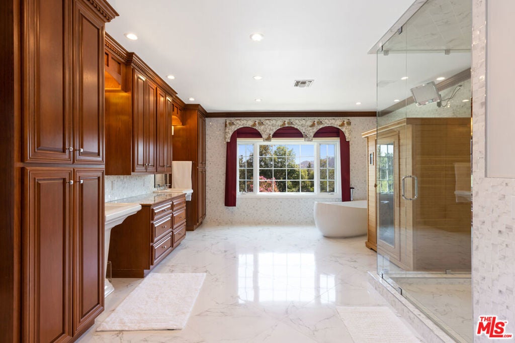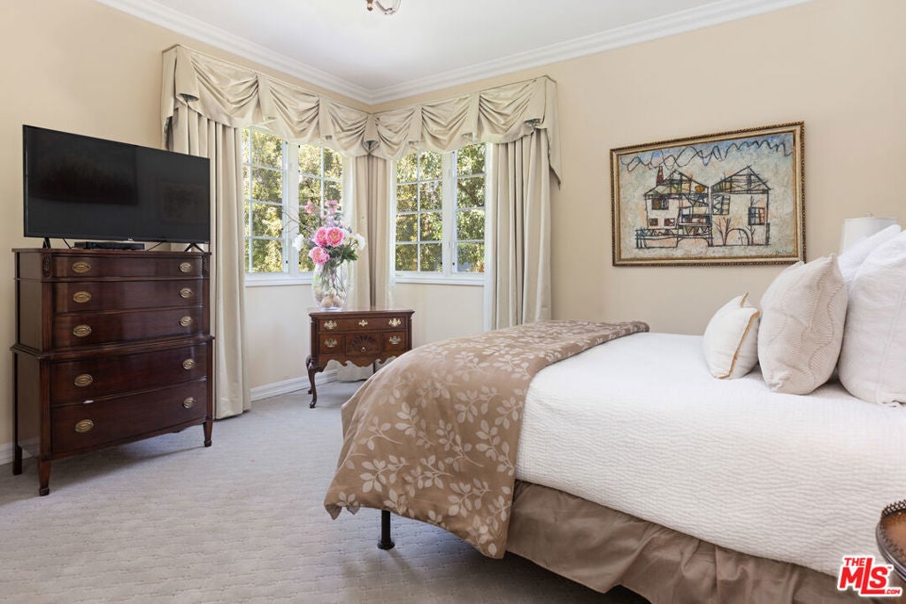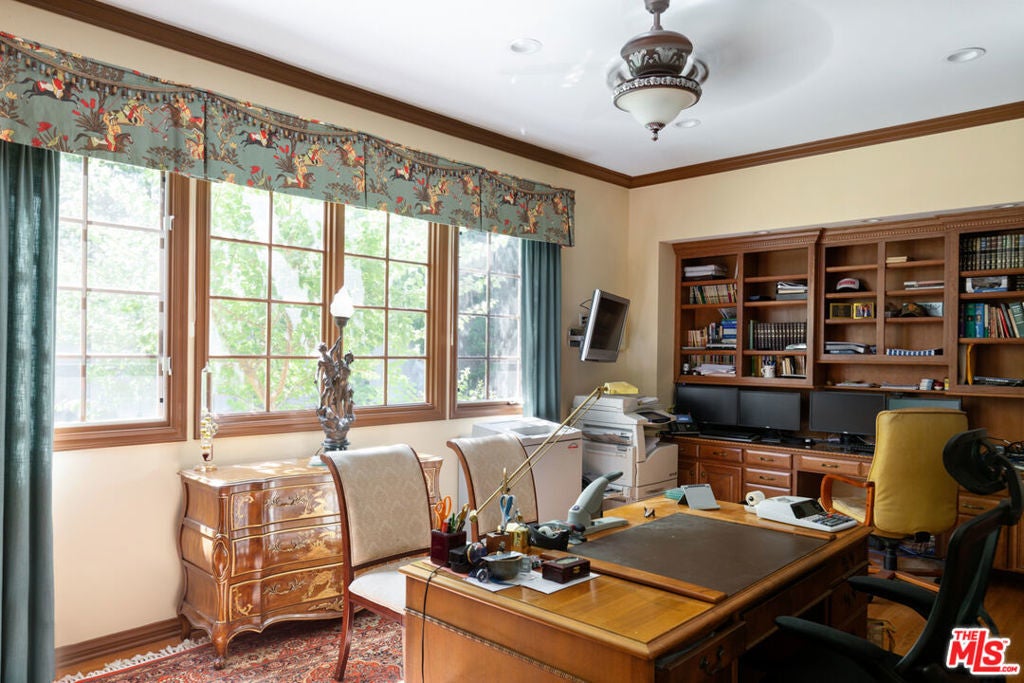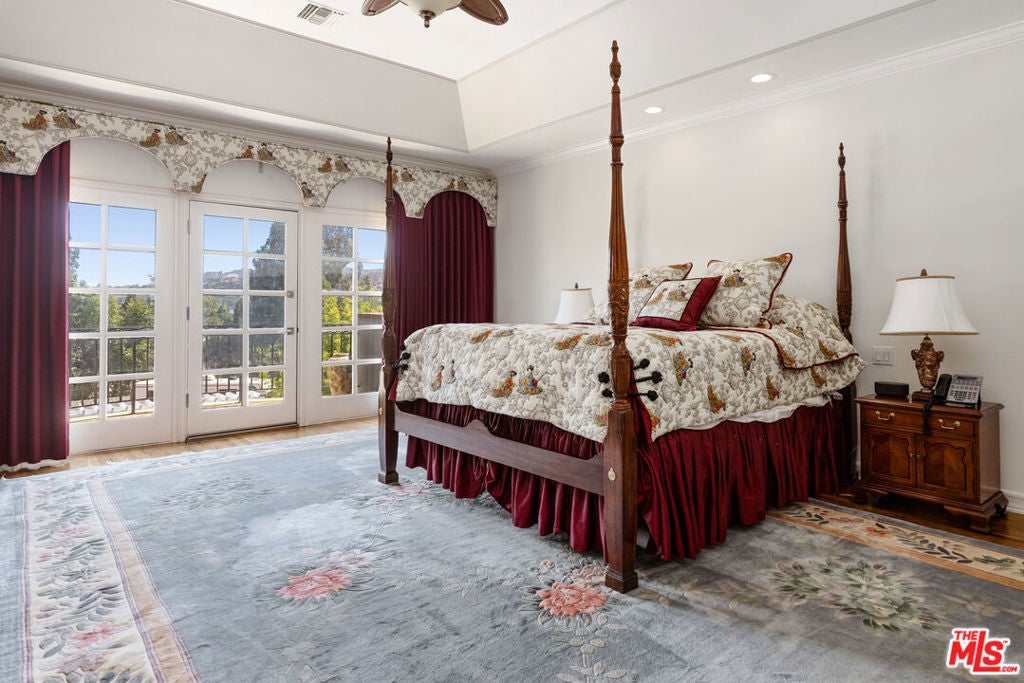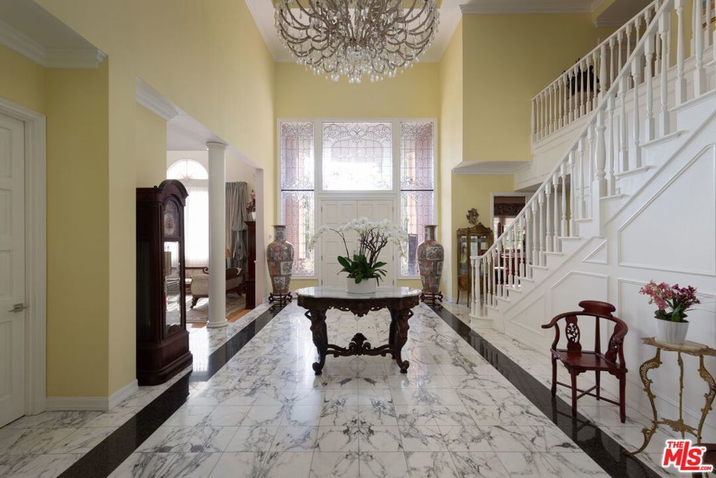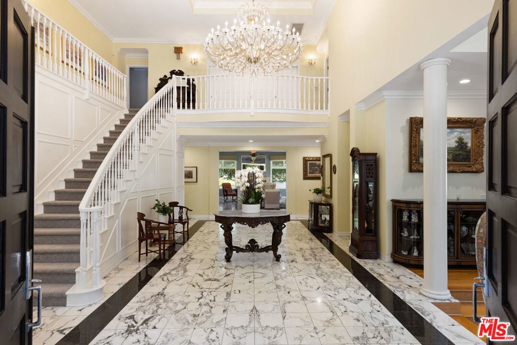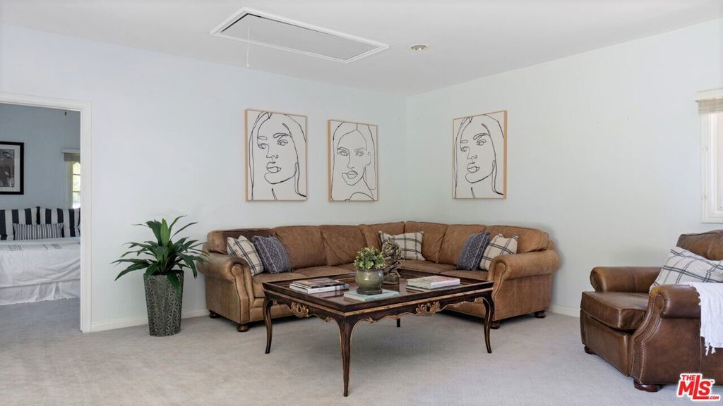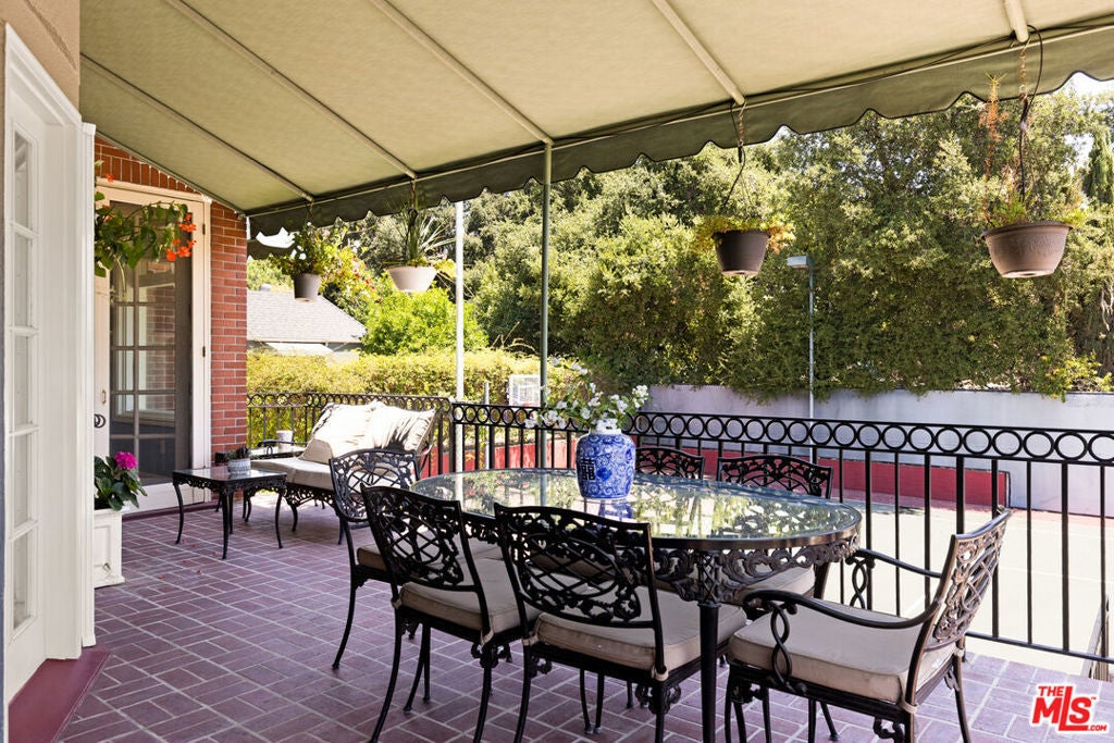 Welcome to this exceptional La Canada family compound with a real tennis court, competition sized pool, pool house, and large guest house on a rare flat lot custom built by the current owners in 1991 for their large family and friends to enjoy. Soon after passing through the front security gate, you drive up the long private driveway to the prominent front entrance and walk through the leaded glass surrounded double doors into the 24' tall remarkable foyer. You immediately feel the formality and coziness of this spacious mansion. To the right of the grand foyer are the living room and dining room each with an elegant marble fireplace. To the immediate left is the distinguished, private office overlooking the carpark. The family room and wet bar are just beyond the grand foyer. The kitchen is to the right of the family room and overlooking the tennis court and pool. Step down the spiral staircase from the kitchen to find the maid's quarters--or if you prefer the gym that opens onto the tennis court. A bedroom suite is also on the main level. Four more bedrooms can be found up the sweeping staircase. The master suite is the entire south wing with a balcony overlooking the pool. The master bath has a sauna and a multi head shower. Every bedroom throughout the house has a view and is a suite. Off the kitchen and family room is a traditional covered sitting patio and just a few steps more is an outdoor brick pizza oven. The 805 SF guest house can easily be used as a gym, theater, music studio, or man cave. The 250 SF pool house has a kitchen and 2 refrigerators for plenty of cool drinks. The compound is securely fenced and well lit with water fountains and fruit trees throughout. Come see this extraordinary family compound designed and maintained with great care and grace.