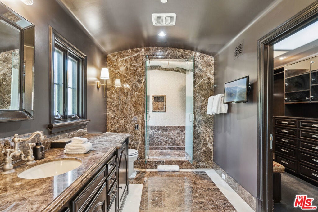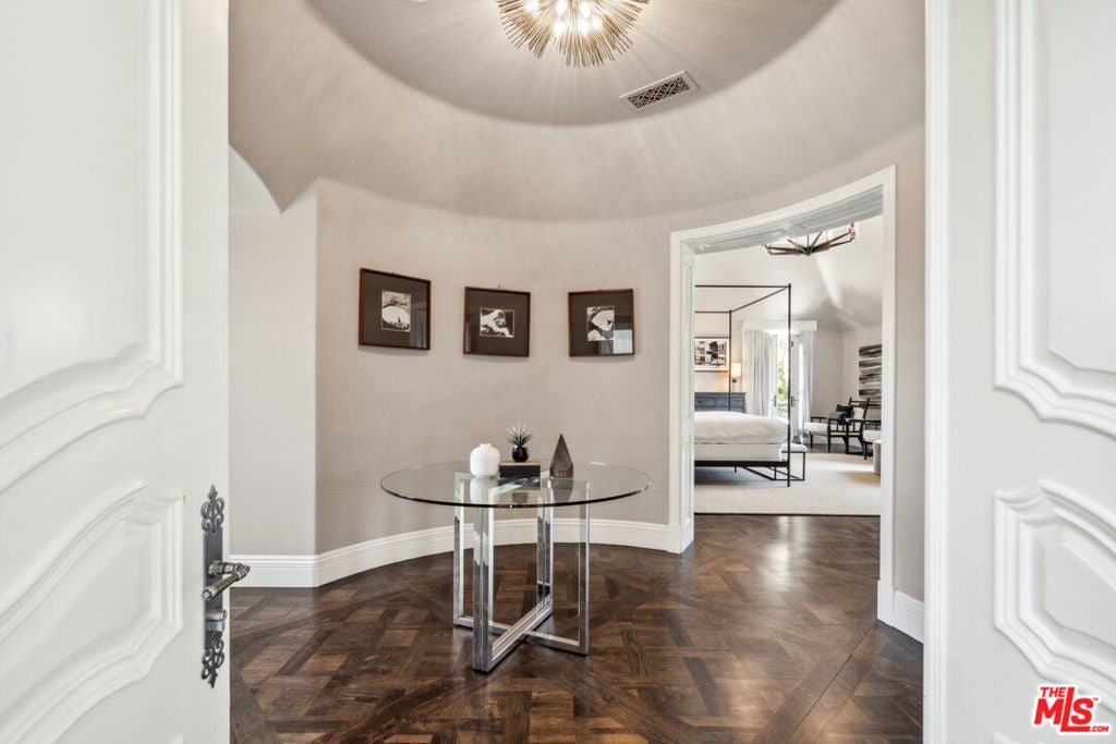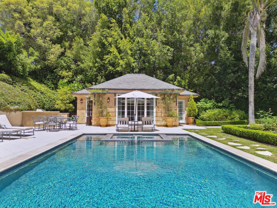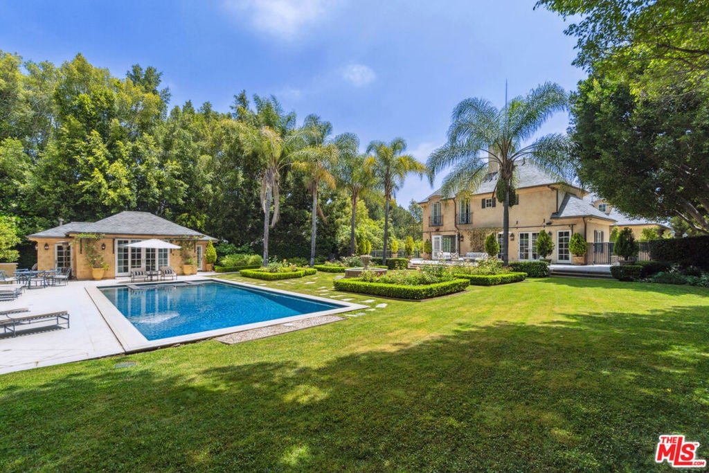 Resting on perhaps one of Beverly Hills' most valued streets and on a beautiful flat lot behind tall privacy gates, this French Chateau modern mansion is irresistible. Fully renovated and upgraded only 5 yrs ago, the residence is a pinnacle of luxury and lifestyle, offering a feeling of living in the French countryside, but yet 6 minutes away from the best the city of Beverly Hills has to offer for shopping, restaurants and world famous hotels. Security abounds with separate entrances for guests, owners and staff/ security personnel. There is also a charming separate Guest House sitting poolside which can be for guests or a convenient backdrop for pool party entertaining. Sunny & bright interiors look over manicured grounds and the large pool & rose gardens. Movie nights in your own Hollywood Screening Room, adjacent to the Poker Room & Bar. There is also a Wine Room and indoor/outdoor office for work at home comfort in fresh air. The fenced and large doggie play park has to be seen and is one-of-a-kind. This prestigious house has been home to world recognized celebrities and public figures who are discerning and discreet. Pre-qualified clients only for showing appointments.