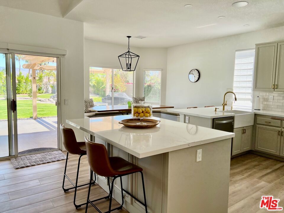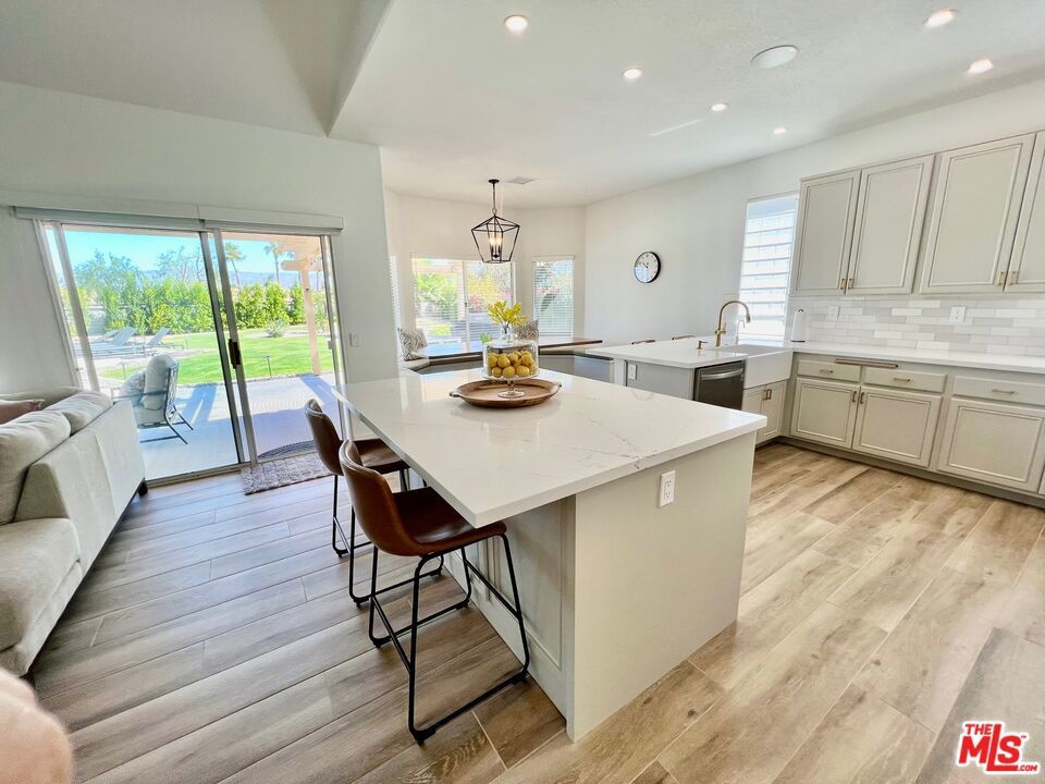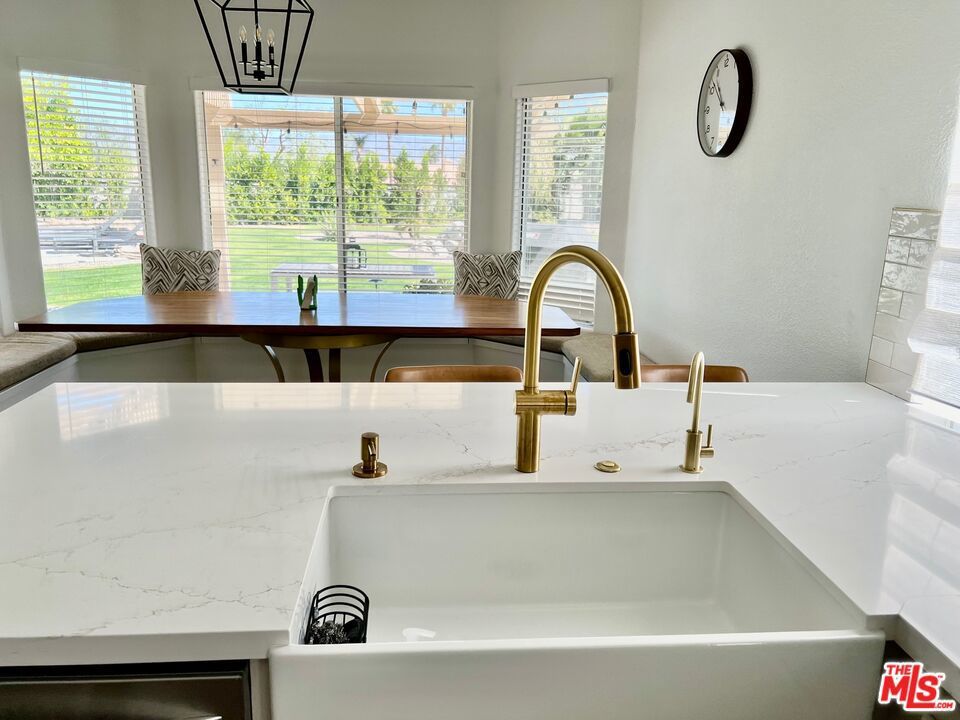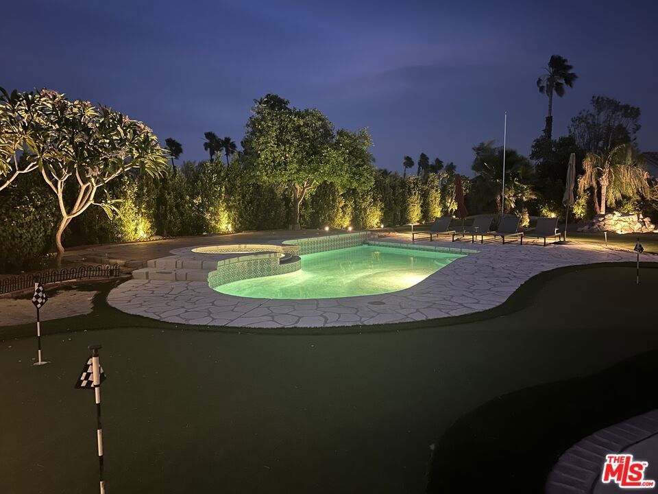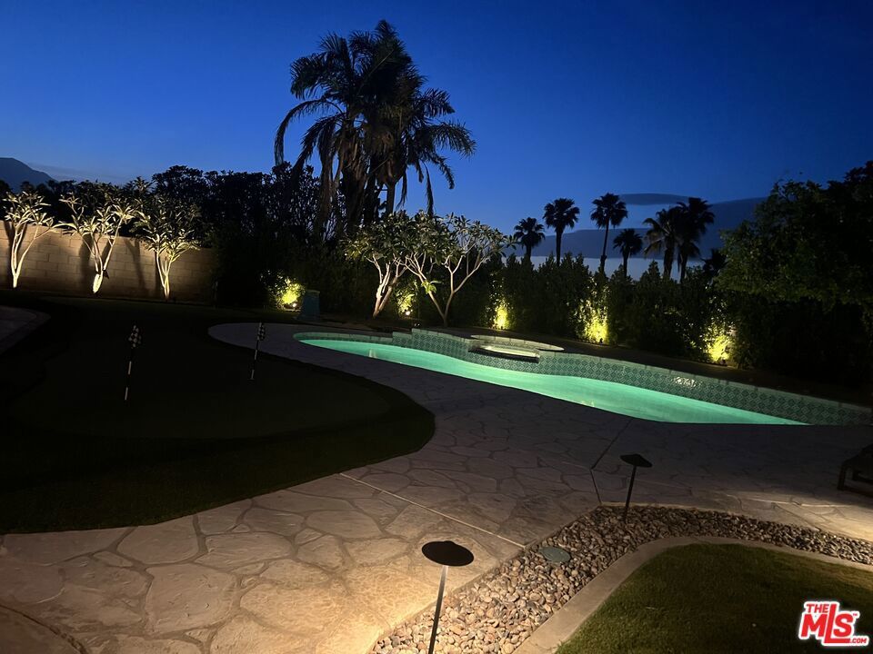 For Lease, minimum 6 months to a year at a time. A great home with more than a quarter of an acre in the city limits. Fully furnished 3 bedrooms plus a den/office which can also be used as a guest room with a trundle bed; triple car garage, huge lot, pool and spa. Large Oasis style backyard with a large putting green. Unique opportunity to move into a home that looks and feels brand new in an established neighborhood. New floor tiles throughout which look like wood but are ceramic, keep it cooler during the summer. New kitchen and bathrooms with quartz countertops with the latest in stainless steel appliances. Wet bar, security system, custom window treatments, new tankless water heater, formal dining room and a kitchen with a custom-made table booth which seats 10 people. Master bedroom suite with master bathroom, separate deep tub and shower. 2 more bedrooms with a guest bathroom with double vanity. Centrally located about 20 minutes to the yearly Coachella Music Festival, 20 minutes to Palm Springs and close to Palm Desert. Easy access to nearby 10 freeway. Deposits vary depending on the duration of the lease.