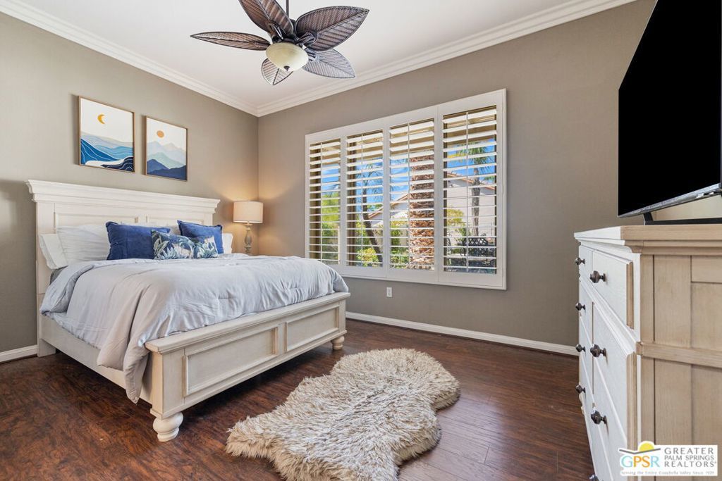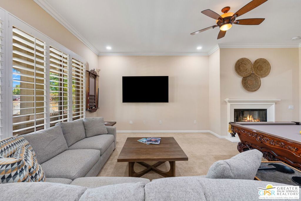 *** Monthly Rates: $5,200 per month from November to February. Availability: Only from November 2026 through February 2027. *** Welcome to your dream retreat at Sun City Shadow Hills, where comfort, community, and the best of desert living come together! This west-facing San Rafael model home with a super spool is ready for you to enjoy. This is an active 55+ community where at least one person leasing the home needs to be 55 years or older. Step into a perfect blend of indoor and outdoor living in this beautifully appointed home. Enter through a large foyer to discover an open floor plan with a wall of windows, filling the space with natural light and offering stunning views of the desert landscape. The Great Room features a cozy fireplace, crown molding, and an overhead fan, creating a welcoming and spacious ambiance. The kitchen is equipped with all-new appliances, plenty of counter space, and a walk-in pantry, perfect for all your culinary needs. Enjoy meals in the dining area with a slider to the backyard. This home offers versatility with a den that can be used as an office, formal dining room, or even a sleeping area, thanks to its double doors. The master bedroom, located on one side of the house, has its own slider to the backyard, dual vanities, a soaking tub, a shower, and a spacious walk-in closet. The other two bedrooms share a Jack and Jill bathroom, and plantation shutters and overhead fans are throughout the home for added comfort. A powder room is available for guests. The garage is a full three-car garage with ample storage cabinets and a new water heater, and the newer A/C ensures you stay cool. The backyard is a true oasis, featuring an oversized patio, palm trees, a mountain view, Alumawood awnings, solar shade, and a large spool with brand-new equipment perfect for enjoying the warm desert evenings. Sun City Shadow Hills is a premier 55+ active adult community offering an unparalleled lifestyle filled with endless amenities and activities. Tenants will have access to all community amenities, including two championship golf courses, state-of-the-art fitness centers, swimming pools, tennis and pickleball courts, and a wide variety of clubs and activities. Please note that playing golf will require an additional fee. From creative arts and crafts to lively social events and fitness classes, you'll find endless ways to stay active and engaged. Embrace the vibrant and active lifestyle that Sun City Shadow Hills offers, with its beautiful surroundings, friendly community, and numerous amenities. Don't miss this opportunity to make this your perfect seasonal retreat in the heart of the Coachella Valley.