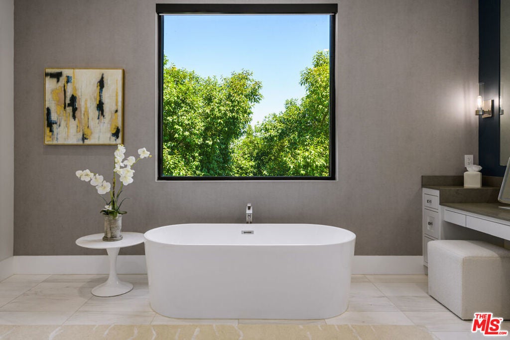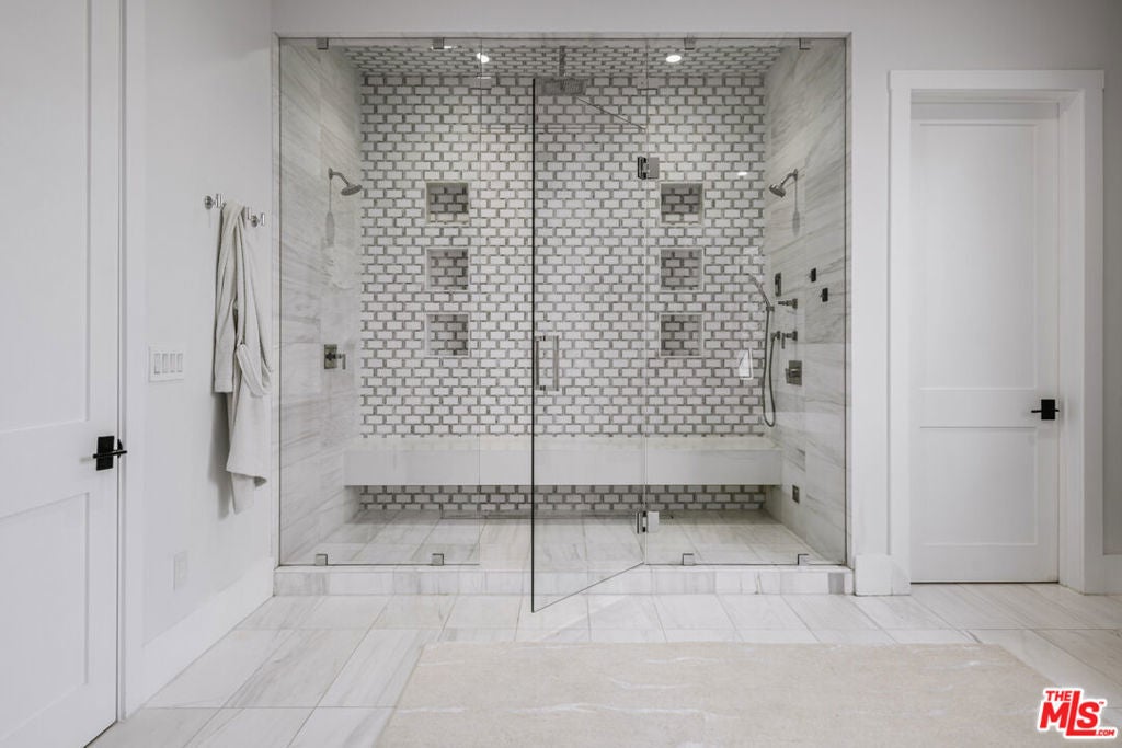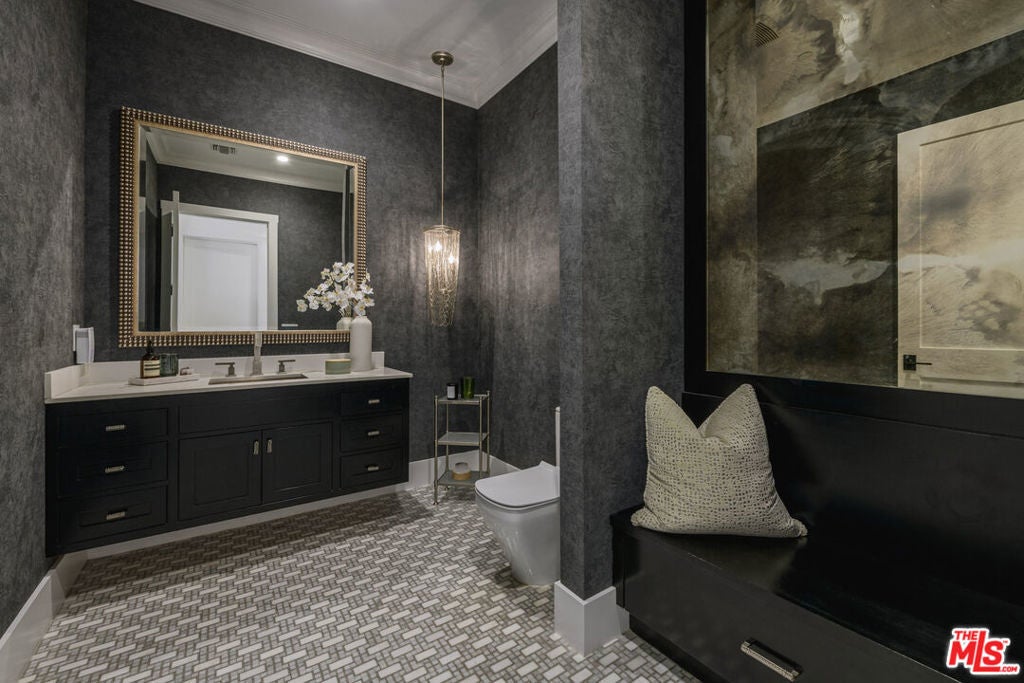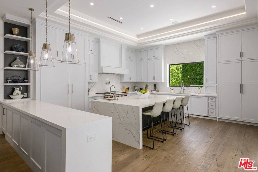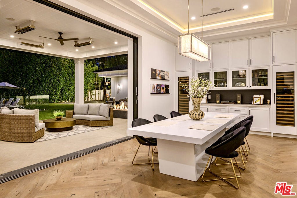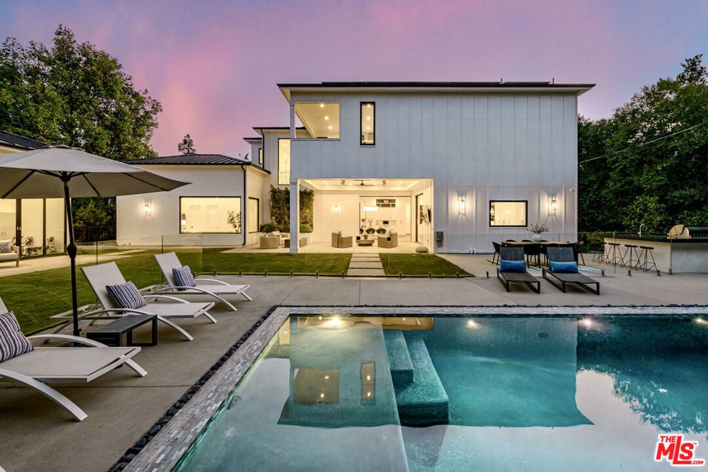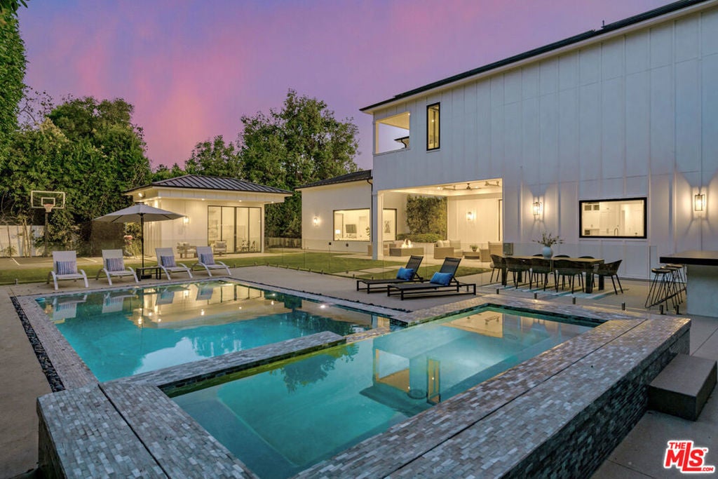 This stunning, multi-level residence in the prestigious Encino Amestoy Estates exudes elegance, privacy, and abundant light on every floor. The main level transitions effortlessly from the chef's kitchen to the dining and sitting areas, culminating in a timeless living space. High ceilings and French oak hardwood floors elevate the home's opulent ambiance. Entertain guests on a large patio featuring Fleetwood doors and integrated outdoor heating. Bask by the pool on sunny days or convene around the fire pit in the evening. The verdant landscape, adorned with over 20-foot ficus trees, ensures superior privacy. Boasting 6 bedrooms and 9 bathrooms, this secluded haven is an entertainer's paradise. Key features encompass a pool house with a full bath, a 10-person jacuzzi with a waterfall, a sports court, a BBQ station, and an exquisite 1,800 sq. ft. subterranean level that includes a guest bedroom with en suite, a gym, a dry sauna, a 1/2 bath, an office, a workspace, and an 8-seat home theater equipped with a Sony VPL 4K projector and a full theatre sound package by Martin Logan. The property also offers a 3-car garage with additional storage, a garage workbench, EV charging, solar heating and cooling, a walk-in pantry, a bonus second-story family room, two Sub-Zero wine refrigerators, Sub-Zero and Wolf appliances, three gas fireplaces, custom cabinetry, and a primary bath with a dual shower/steam system. Come appreciate the space and comfort this magnificent home offers.