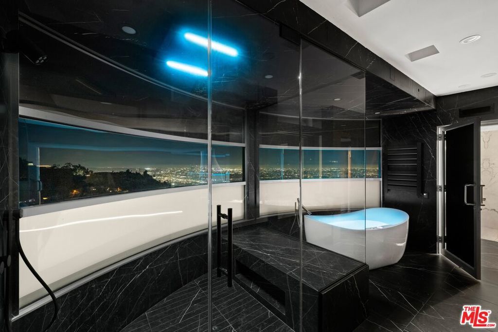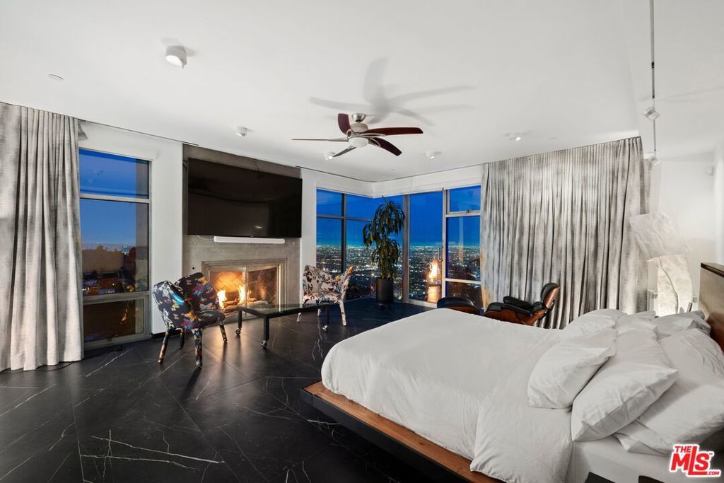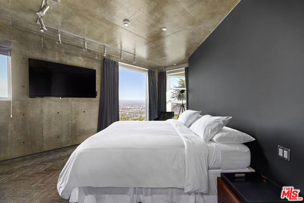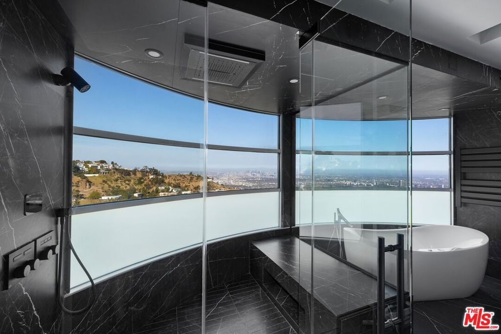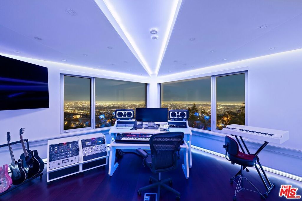 *** Skycastle has been reduced for a summer rental at $300,000 from June 1st-August 31st, 2025. Extended lease options available upon request.*** Welcome to Skycastle, a breathtaking architectural masterpiece designed by David Lawrence Gray, AIA, nestled in the Hollywood Hills. Previously enjoyed by celebrities, this stunning 12,000 sq ft home sits atop a privately gated half-acre promontory, offering 270-degree views from downtown to the Pacific Ocean. The elegant open floor plan features a spacious living area that flows into a gourmet kitchen designed by the Porsche Design Group, equipped with top-of-the-line stainless steel appliances (4 Miele Ovens, Miele Cook Top, Sub-Zero Fridge, Custom Southbend commercial 80,000 BTU broiler, and more). The property includes 7 bedrooms, with 6 private suites and a detached guest house. The lavish master suite boasts panoramic views, a private balcony, a palatial walk-in closet, a kitchenette with wet bar & Sub-Zero refridgrator-freezer, and a spa-like bathroom with a digital temperature controlled soaking tub and LED rainfall steam shower. Additional highlights include a large industry specked screening theatre room with full bar, fully equipped professional gym, 6 car motor court, and an infinity pool with a 12-person spa. Outdoor spaces feature a landscaped patio perfect for gatherings or tranquil evenings. Floor-to-ceiling windows and the 60' grand entry flood the space with natural light. Situated in a prestigious neighborhood, this exquisite property uniquely offers both unrivaled privacy and views, but with access to the vibrant lifestyle of Los Angeles. Additional A/V features: Crestron Home System, Concert quality main house audio system, large high-end flat screens throughout, Detached State-of-the-Art recording studio with panoramic views (available on request). Don't miss the opportunity to experience the very best of LA living in this extraordinary home!