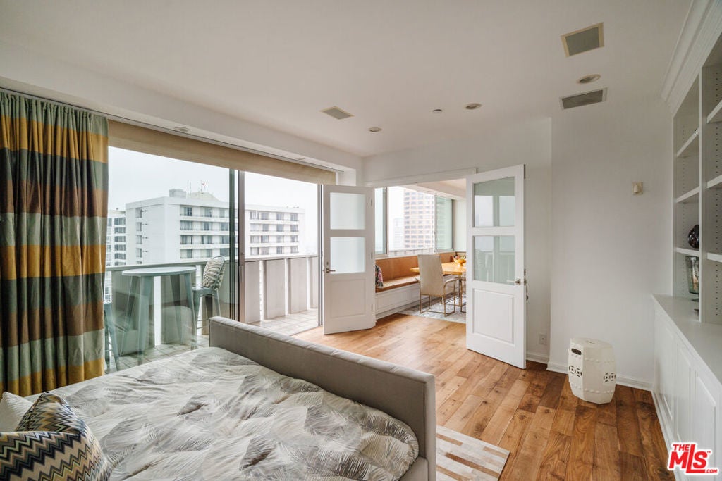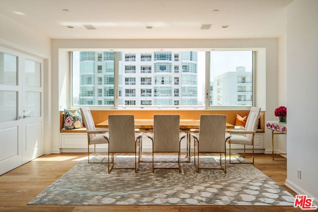 Introducing the finest residence set within the prestigious Wilshire Terrace enclave. Experience opulent high-rise living within all 2,100+ SqFt of this designer-done home showcasing unparalleled panoramic views from the mountains and golf course to the ocean and city skyline. Guests are welcomed into this crown jewel unit by an abundance of natural light, courtesy of the two expansive terraces, and pristine hardwood floors carried throughout the thoughtfully curated floor plan. Meticulously crafted built-ins line the walls of the paneled library accompanied by a cozy fireplace with sight lines to the dining room and den, ideal for entertaining. Exuding an ambiance of refined sophistication, the formal dining room expertly captures breathtaking jetliner views. The chef's kitchen boasts gourmet appliances, stainless steel countertops and a considerable island in addition to the breakfast nook. The palatial primary suite offers lavish walk-in closets and a luxurious ensuite. The Wilshire Terrace spoils its residents with renowned amenities including valet services, a large pool and spa, well-equipped gym, hair salon, dedicated on-site manager, and a dog park in one of the most highly coveted locations.
