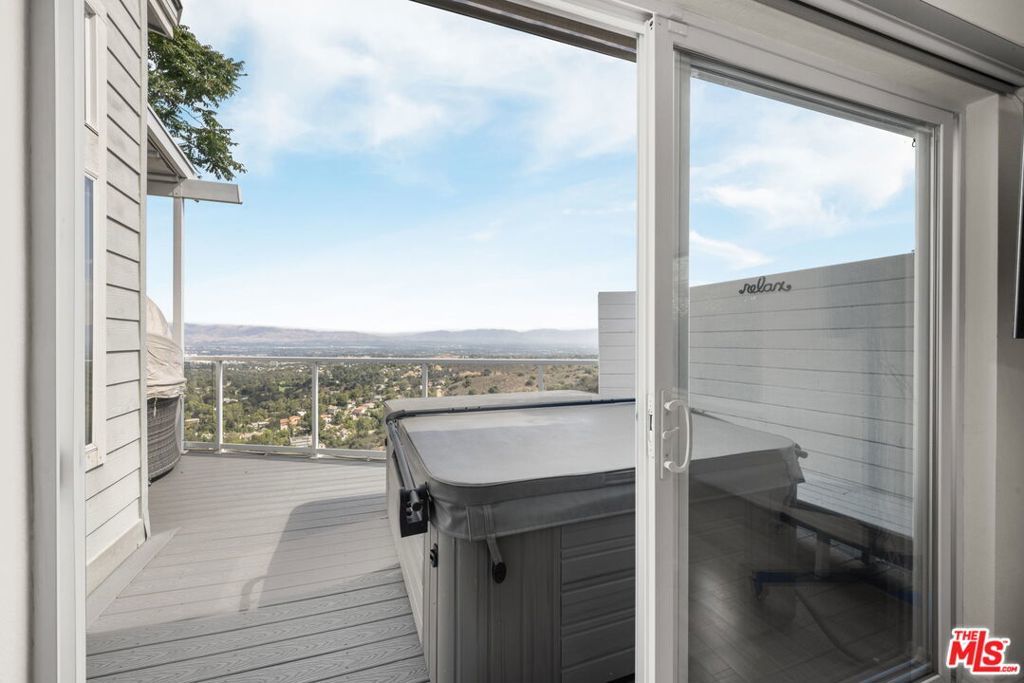 Experience unique, one-of-a-kind views hard to find in LA. This Top O' Topanga home offers breathtaking, unobstructed vistas that no amount of money can buy. It feels like living in a resort 365 days a year. Although it feels like you're surrounded by nature with hiking trails everywhere, you're still just ten minutes from the 101 freeway, ten minutes from Calabasas and Woodland Hills, and twenty-five minutes from Malibu. Even though it feels like you're in a secluded getaway, you're still close to everything LA has to offer, including shopping and grocery stores just 8 minutes away, and Topanga Westfield and The Commons Calabasas with plenary of restaurants bars and entertainment just 12 minutes away. The home itself is bright and open, with a healing feeling of lightness and joy due to the layout of the rooms. It offers privacy and feels like three separate suites, featuring three bedrooms, three bathrooms, a primary bedroom with a spacious walk-in closet, a private spa, and a unique, modern gas fireplace in the sitting room. Additional features include an electric awning, an installed electric heater on the veranda, electric blind, a front patio, a water filter, a spacious garage, and front and back patios with a gas line and a hot and cold outdoor water line, making it easy to enjoy outdoor living all year round. The house is located within the gated community of Top O' Topanga, a hidden gem that offers both seclusion and community convenience. This community is ideal for people from all walks of life and boasts amenities such as a large pool, spa, gym, library, ping pong, pool table, kitchen, dog park, playground for kids, laundry facilities, car wash, picnic area, viewing area, and a dog facility. AS IS sale.