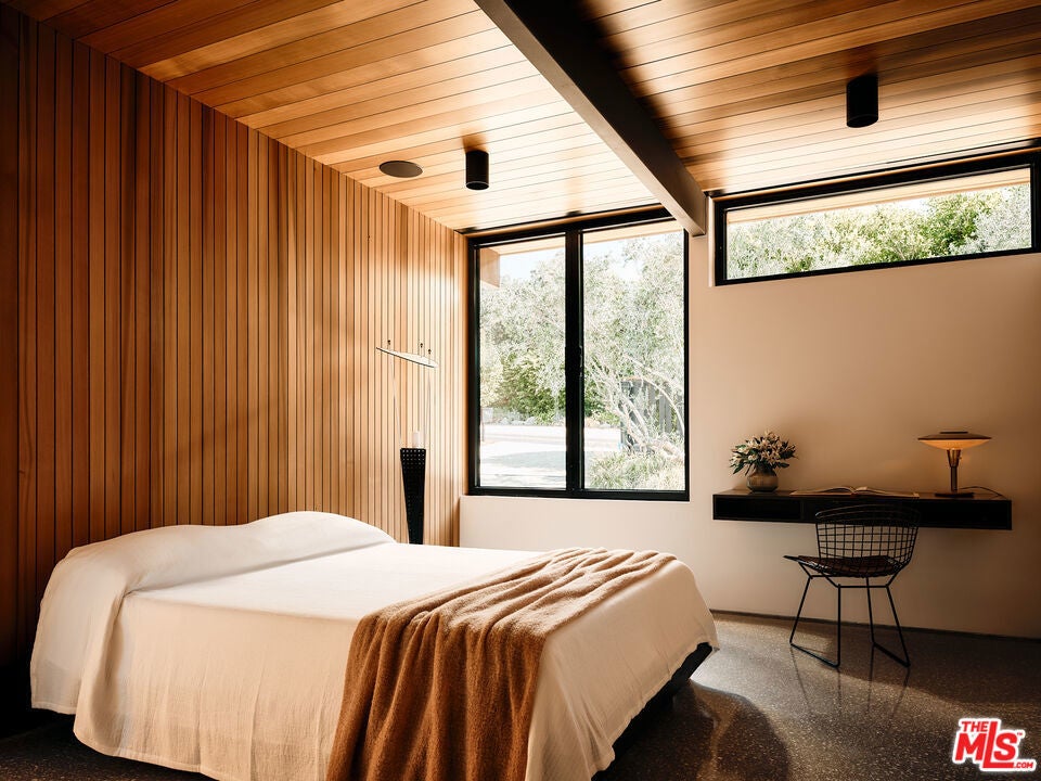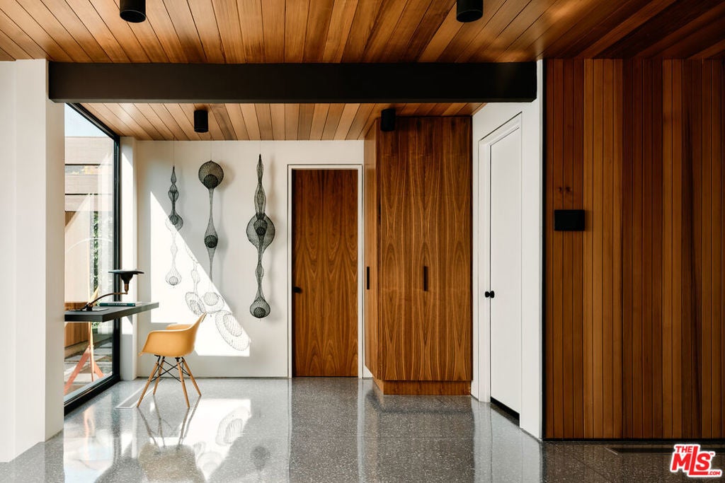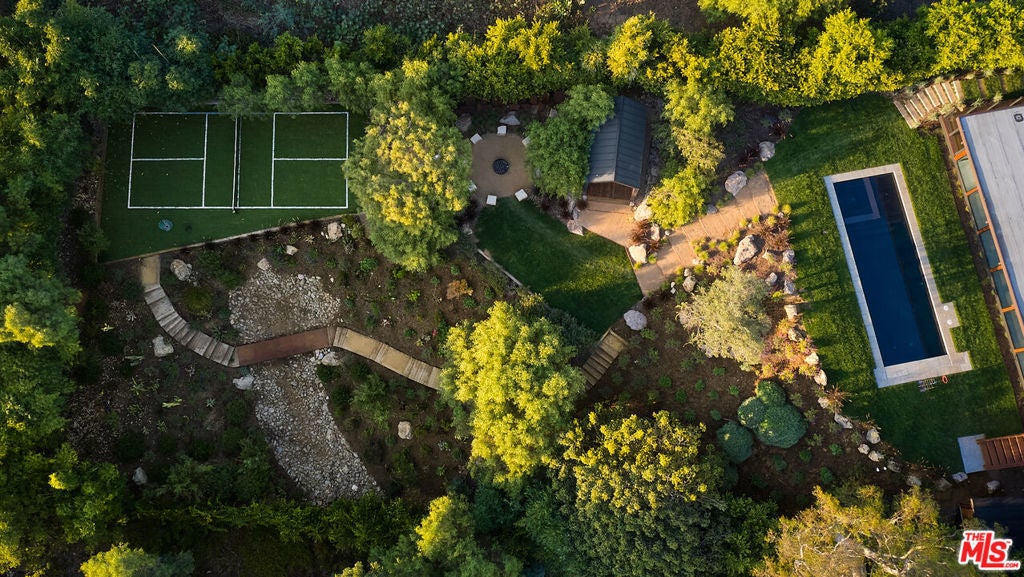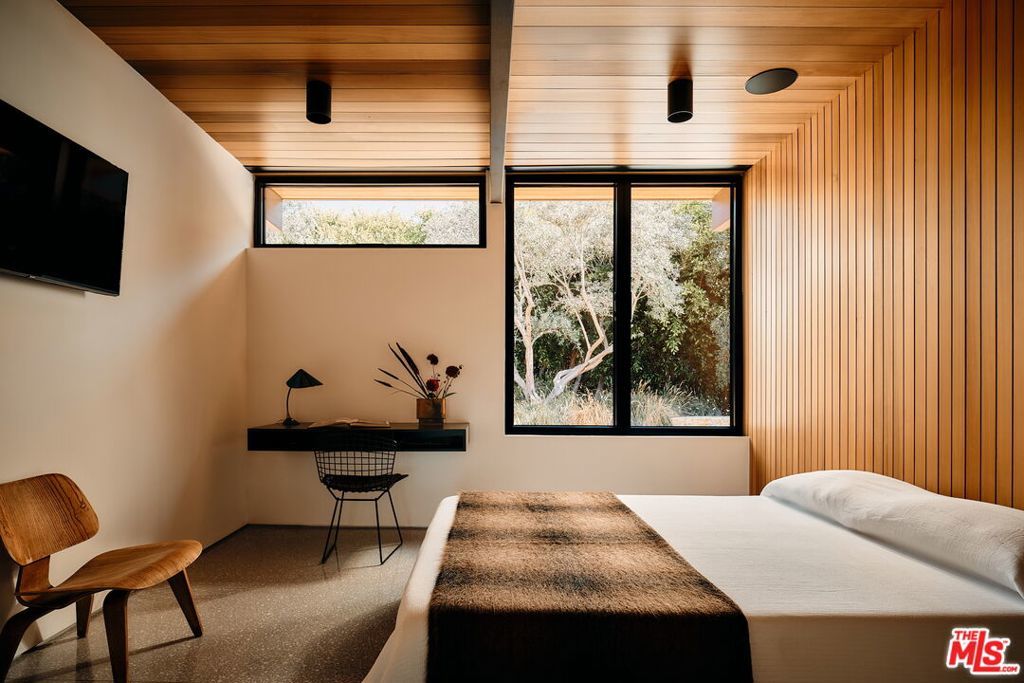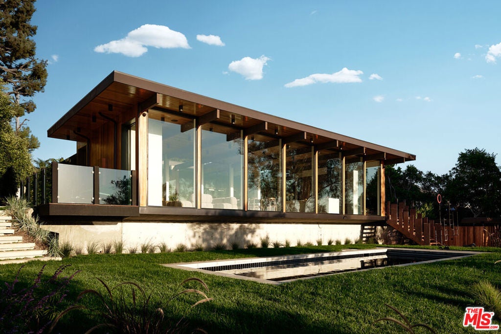 Introducing The Glass House by John Klopf, AIA, the midcentury modern masterwork of Malibu Park. Thoughtfully conceived within the natural landform on over half an acre, this newly constructed single-level residence is beautifully elevated above Zuma, offering blue-hued views of the Pacific Ocean and the earth-toned coastal mountains. An artfully composed blend of floor-to-ceiling glass, warm woods, and handsome, hand-poured terrazzo creates a paradisal, livable art piece. Beyond the saltwater pool and manicured yard, an outdoor sanctuary of impeccably curated landscaping unfolds, with a meandering pathway leading to a fire pit, sculpture garden, and pickleball court. Completing the estate is a secondary A-frame structure, offering versatile space for an office or gym. The Glass House provides a singular living experience, where every element is masterfully designed to inspire and elevate.